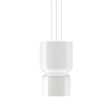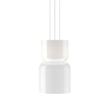 Radiant pure-white forms animate the highly versatile Up-Down version in Pablo Designs' LED lighting system Totem. Exquisite blown opal glass shades in 4 sizes of descending order (A,B,C,D) yield 16 doubled-up pendant variations designed around the modular platform. Each shade houses its own light engine that results in a warm and dimmable ambient glow via the softly diffusing glass structure—creating the option for personalized lighting solutions unique to any given space.