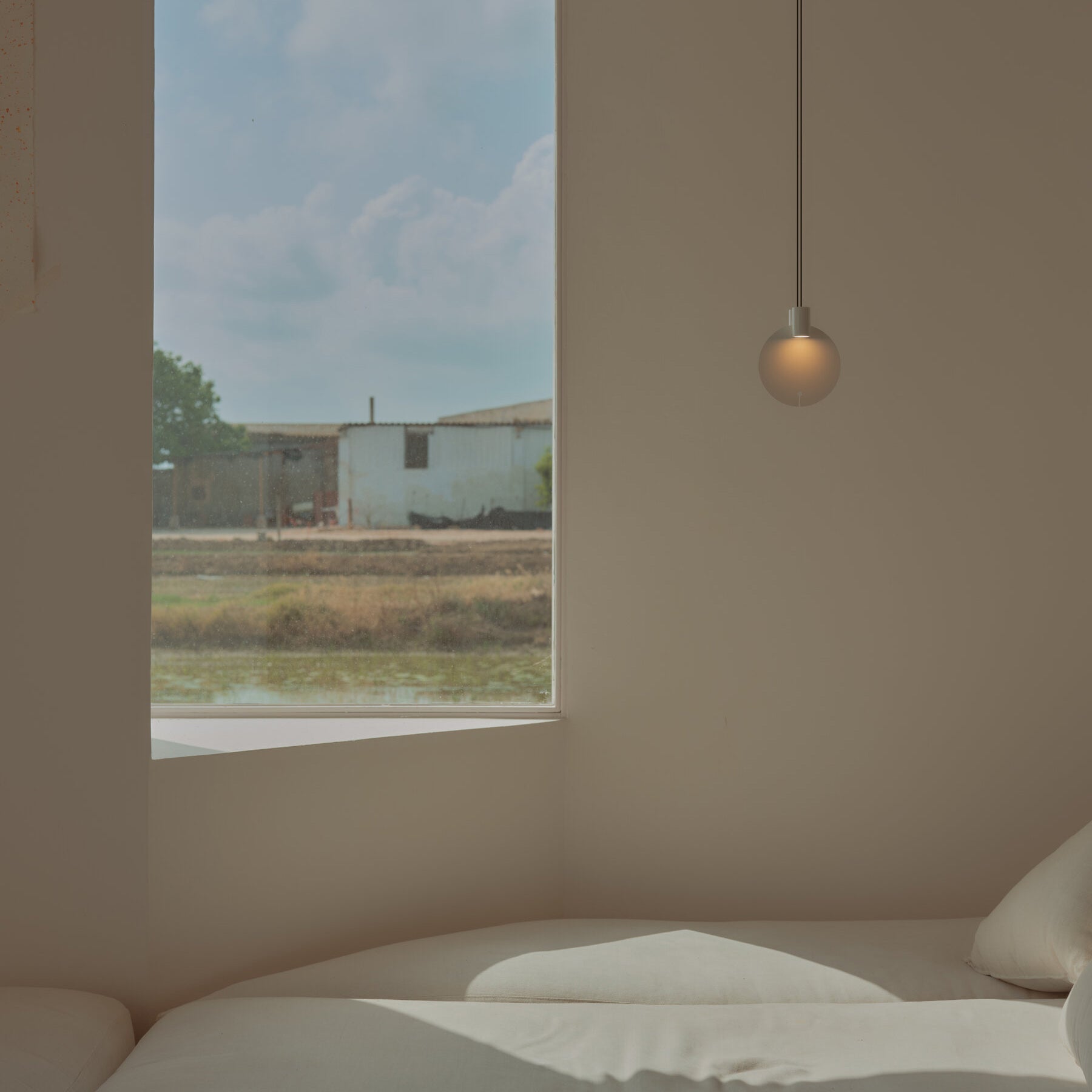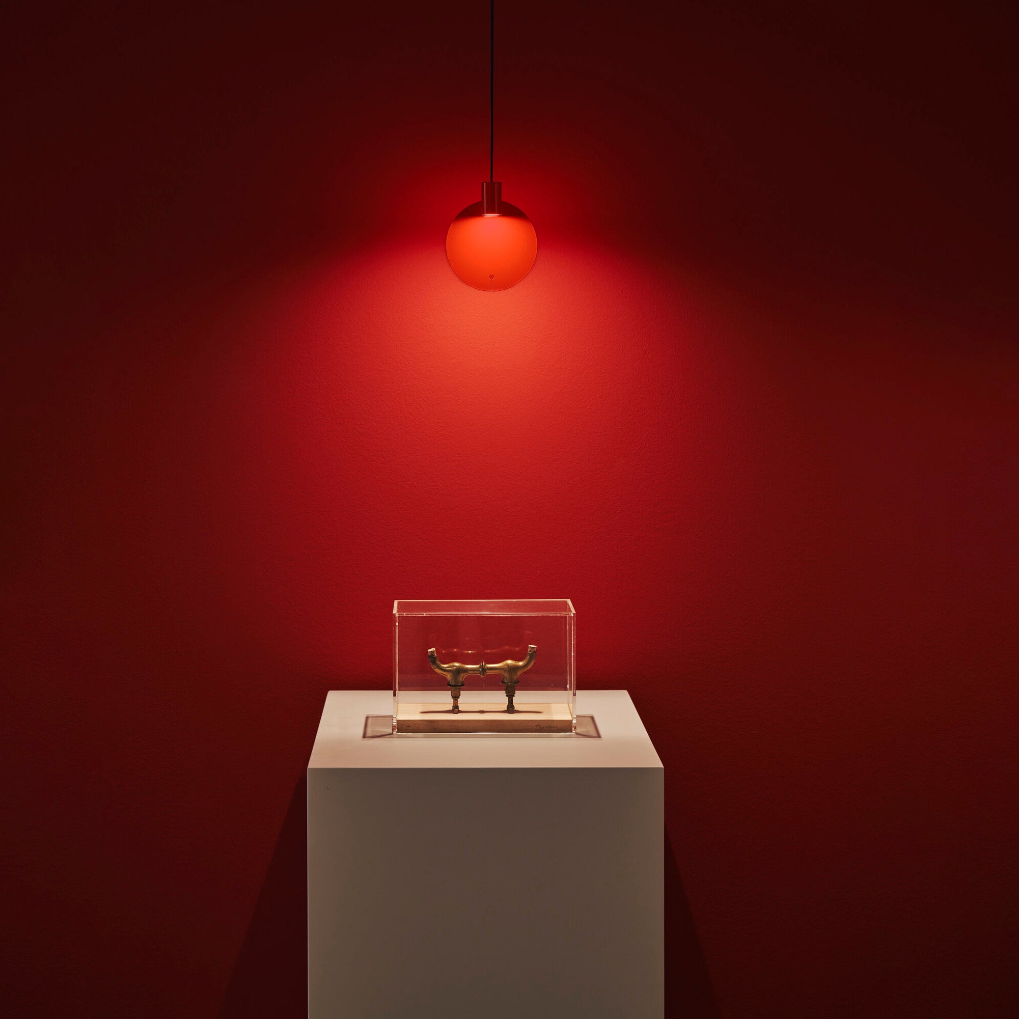 As its name elegantly implies, Bijous takes form as a precious object that offers high-quality illumination through its alluringly warm reflections. The pendant’s twin spotlights on either side of the lacquered vertical plate produce a sense of volume when alit that enriches any space, maintaining a sculptural presence even when turned off.