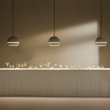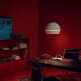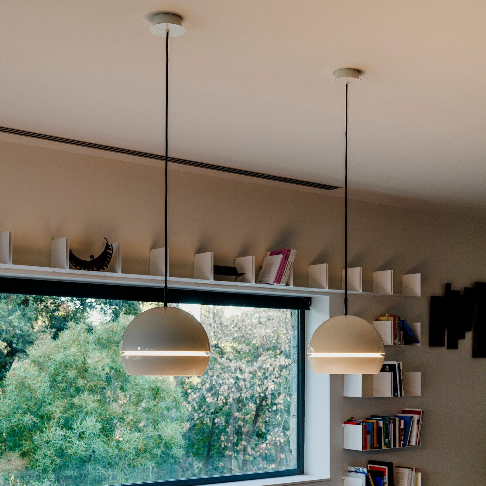 Barcelona's André Ricard took the design cue for his 1970 pendant from famed Argentinian artist Lucio Fontana, who rocked the art world by slashing his neat oil paintings. Similarly, the namesake light takes form as a futuristic half-spare bisected by an unmistakable slit that subtly illuminates the periphery. The glossy white metallic shade has a matte-finish interior that houses an efficient built-in LED light plate and translucent acrylic diffuser to lend a soft and glare-free atmospheric glow.