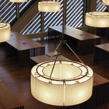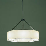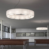 Spanish design pioneer Miguel Milá's broad ring pendant with double-sided shades alludes to medieval fixtures and produces illumination from multiple LED light sources. Sexta's circular form is divided into either 6 or 12 sections depending on the chosen size, with a chrome-plated structure to match the round ceiling canopy. The translucent white PVC lampshade, with or without an optional opal acrylic diffuser, serves to soften and modulate the overall glow.