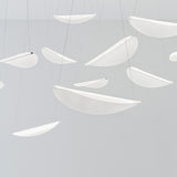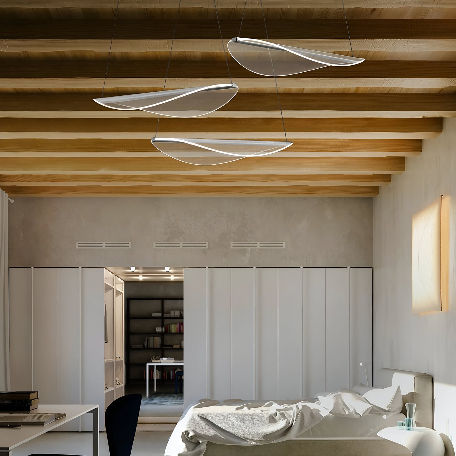 The Diphy Chandelier is inspired by the structure of a leaf and its transparent, petal-shaped diffusers feature intricate micro-incisions created using OptiLight™ technology. This innovation produces a captivating effect: when the light is off, the diffusers appear nearly invisible, and when illuminated, they emit a soft, even glow with a shimmering quality. The chandelier is supported by a slim central frame, offering a lightweight appearance while ensuring stability. Recognized with awards like the 2017 Red Dot Design Award, the Diphy showcases a seamless blend of artistry and innovation, serving as both a light source and a centerpiece for any space.