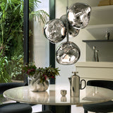 Tom Dixon sees the light — again! — by refitting his delightfully amorphous chandelier with an LED module. In a captivating smaller model with 4 orbs protruding from steel tubes or the awesome larger version with 7 extensions, Melt lends its gleam in mirror-finish copper, gold, chrome or smoke finishes. LED technology brings longer life expectancy, energy efficiency and improved performance including dimmability and light control, in a fully serviceable module with replacement components and individual drivers available if needed.