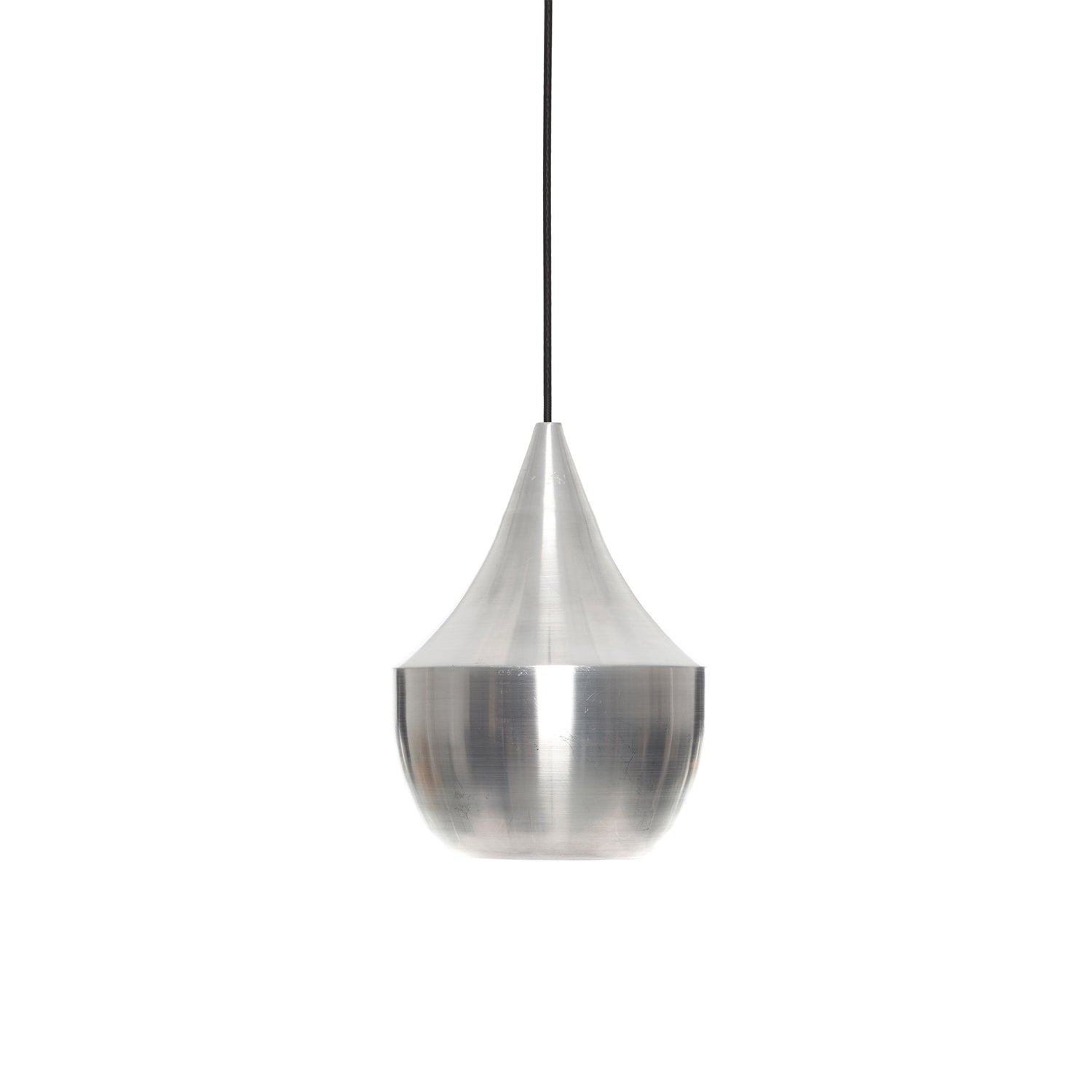 The Unbeaten Fat Pendant from Tom Dixon builds on the iconic Beat series with a distinctive silhouette, crafted from hand-spun and brushed aluminum. Designed and made in Moradabad, India, it reflects traditional metalworking techniques while incorporating modern lighting technology. The integrated LED module provides efficient illumination with a warm 3000K color temperature and a brightness of 800 lumens.
