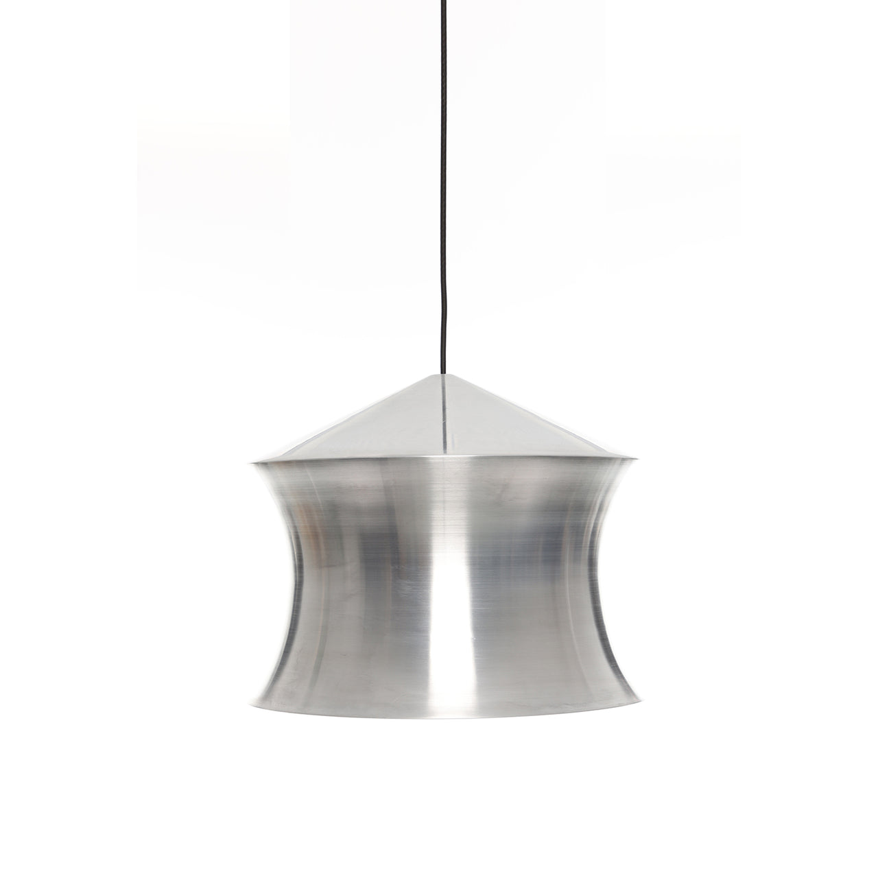 The Unbeaten Waist Pendant from Tom Dixon builds on the iconic BEAT series with a distinctive waist-like silhouette, crafted from hand-spun and brushed aluminum. Designed and made in Moradabad, India, it reflects traditional metalworking techniques while incorporating modern lighting technology. The integrated LED module provides efficient illumination with a warm 3000K color temperature and a brightness of 800 lumens.
