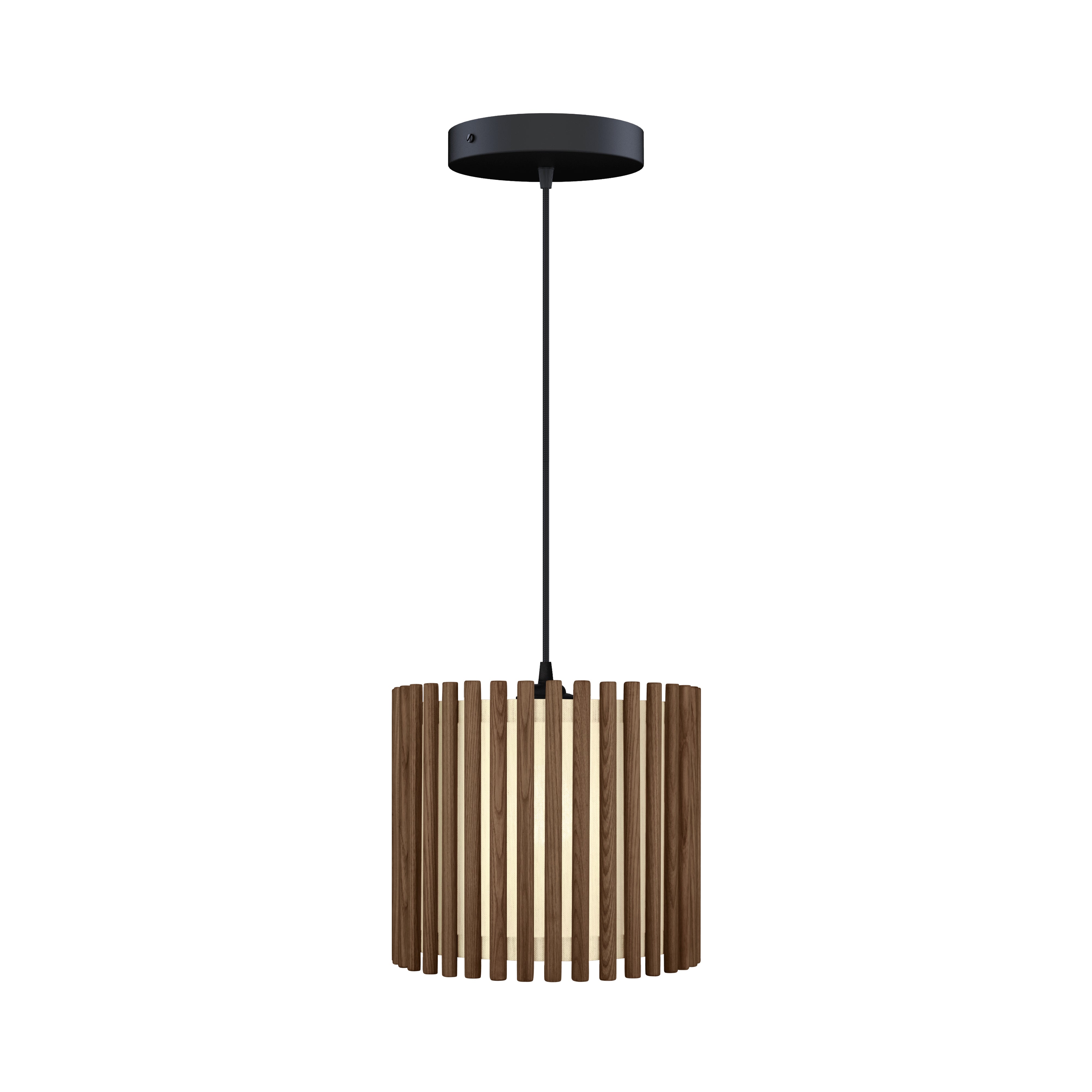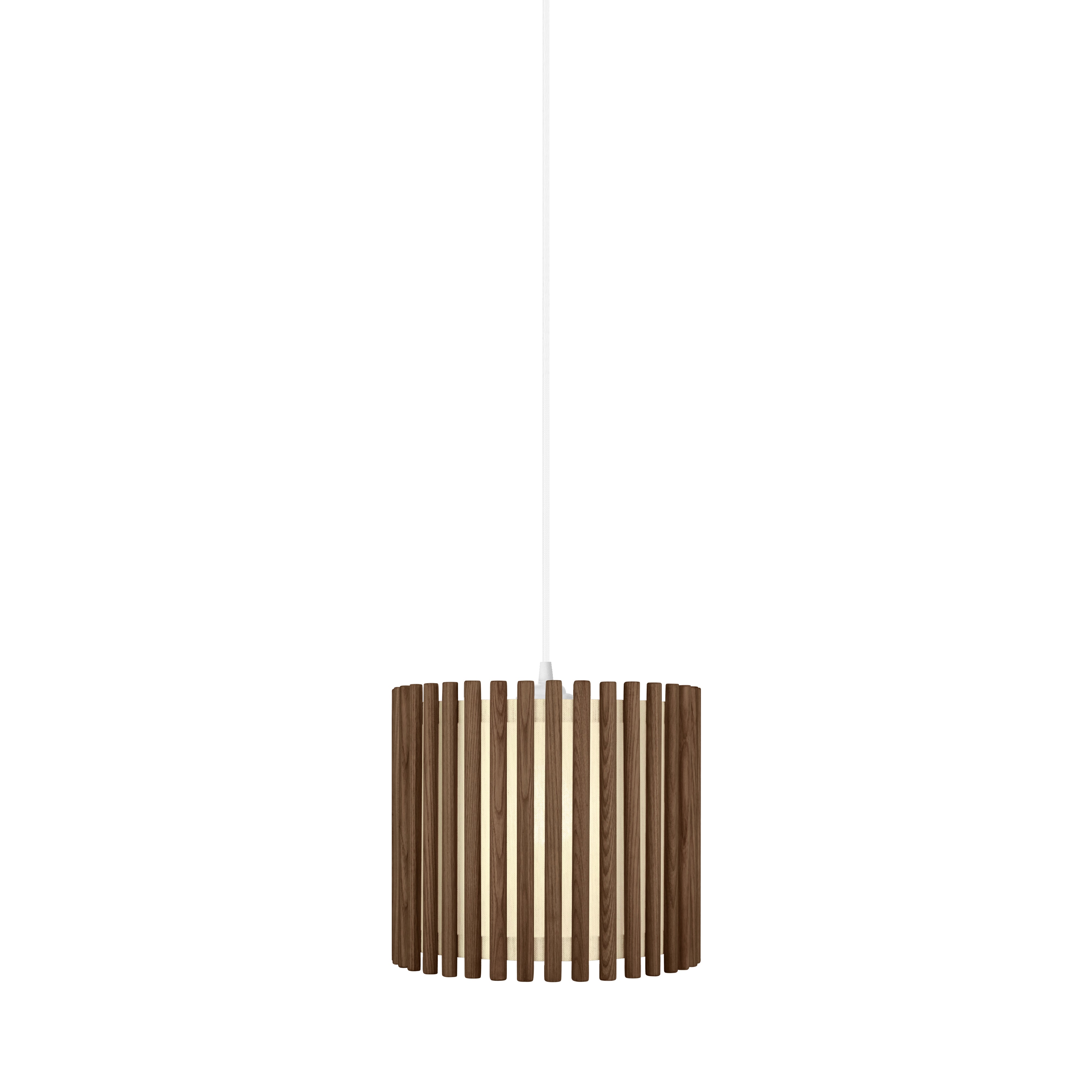 The Komorebi Round Pendant Lamp combines natural materials to create a comforting ambiance. Crafted from wooden lamellas and textiles, this pendant is available in mini, medium, and large sizes, with finishes in oak or dark oak. The Komorebi collection draws inspiration from the Japanese concept of sunlight filtering through trees, aiming to bring a sense of tranquility to your space.