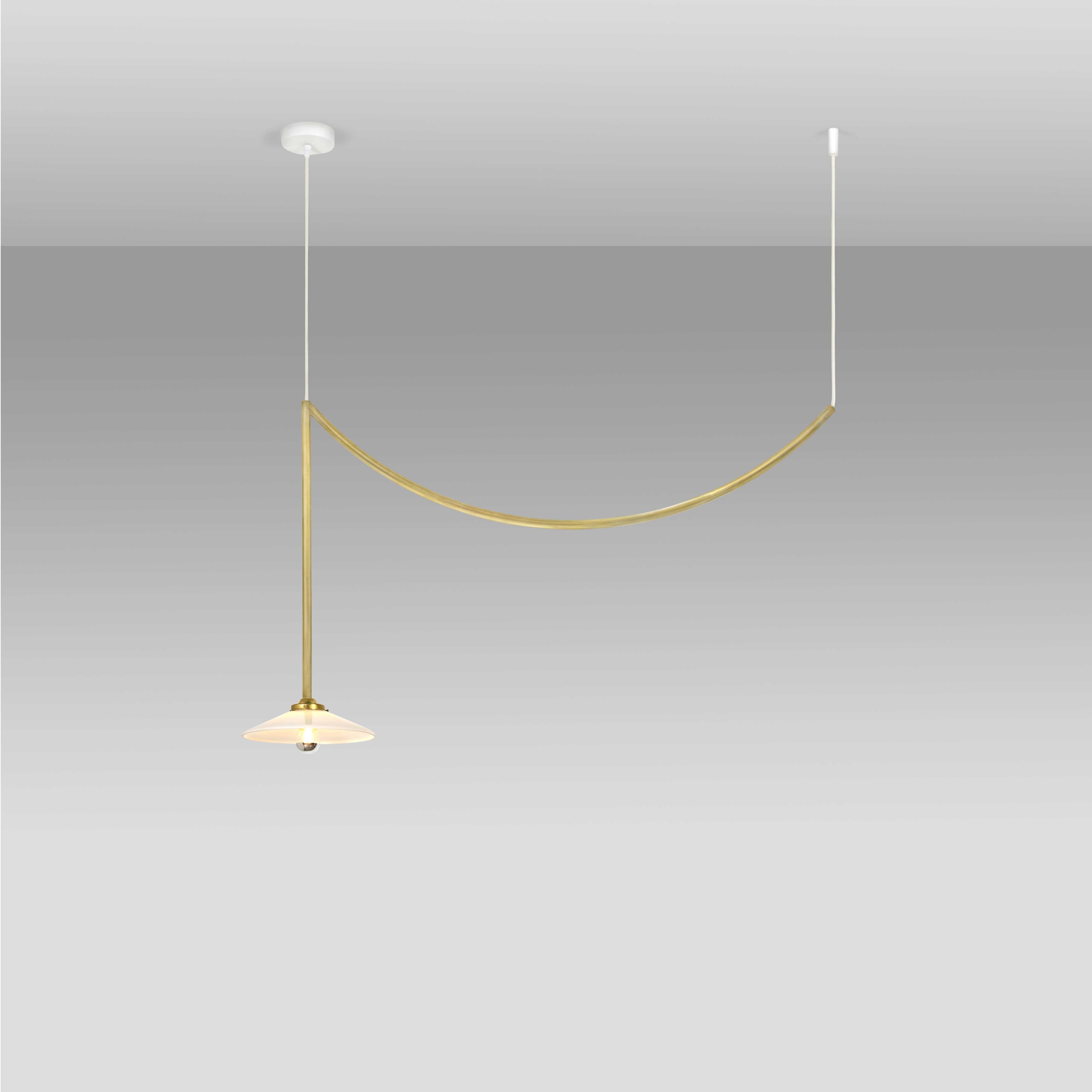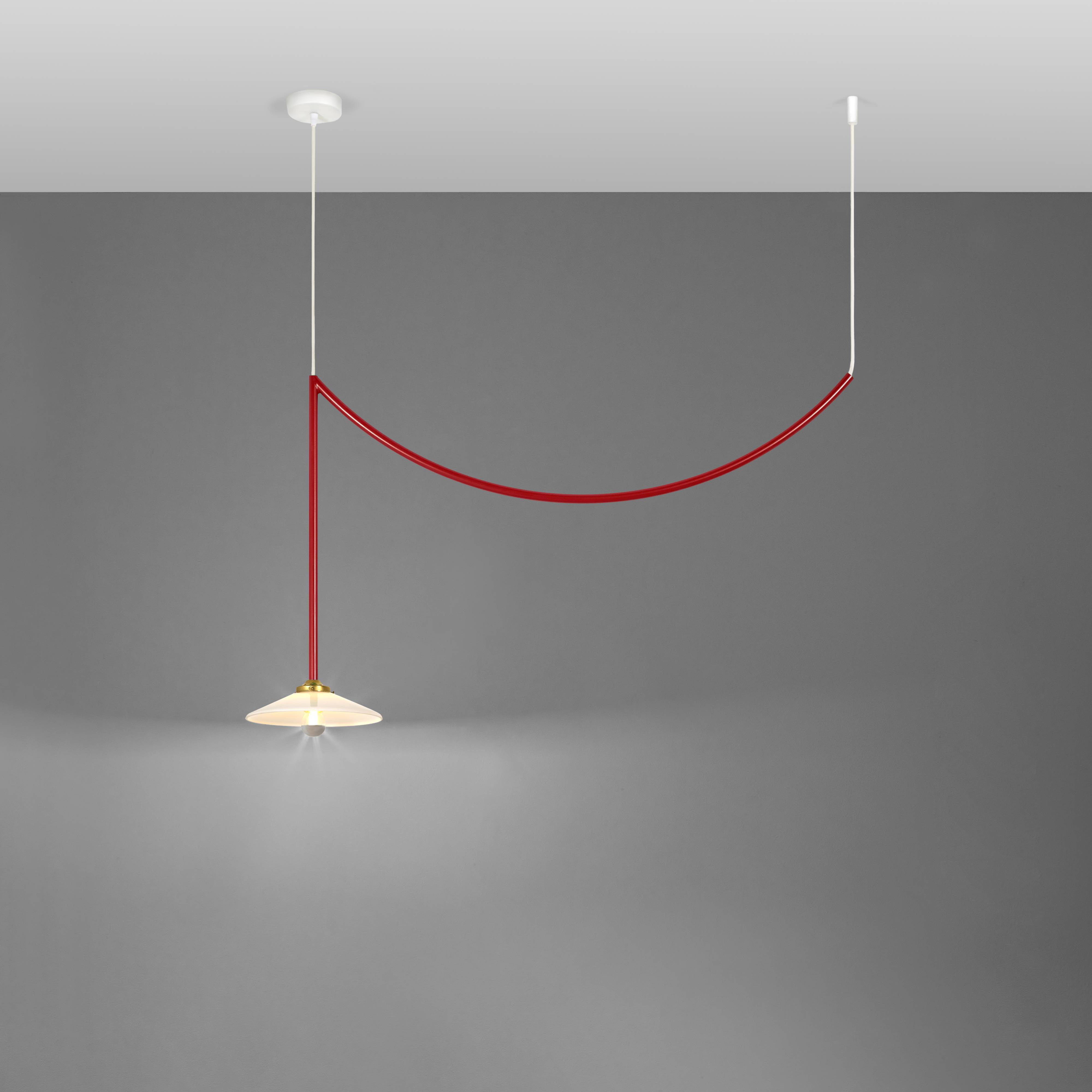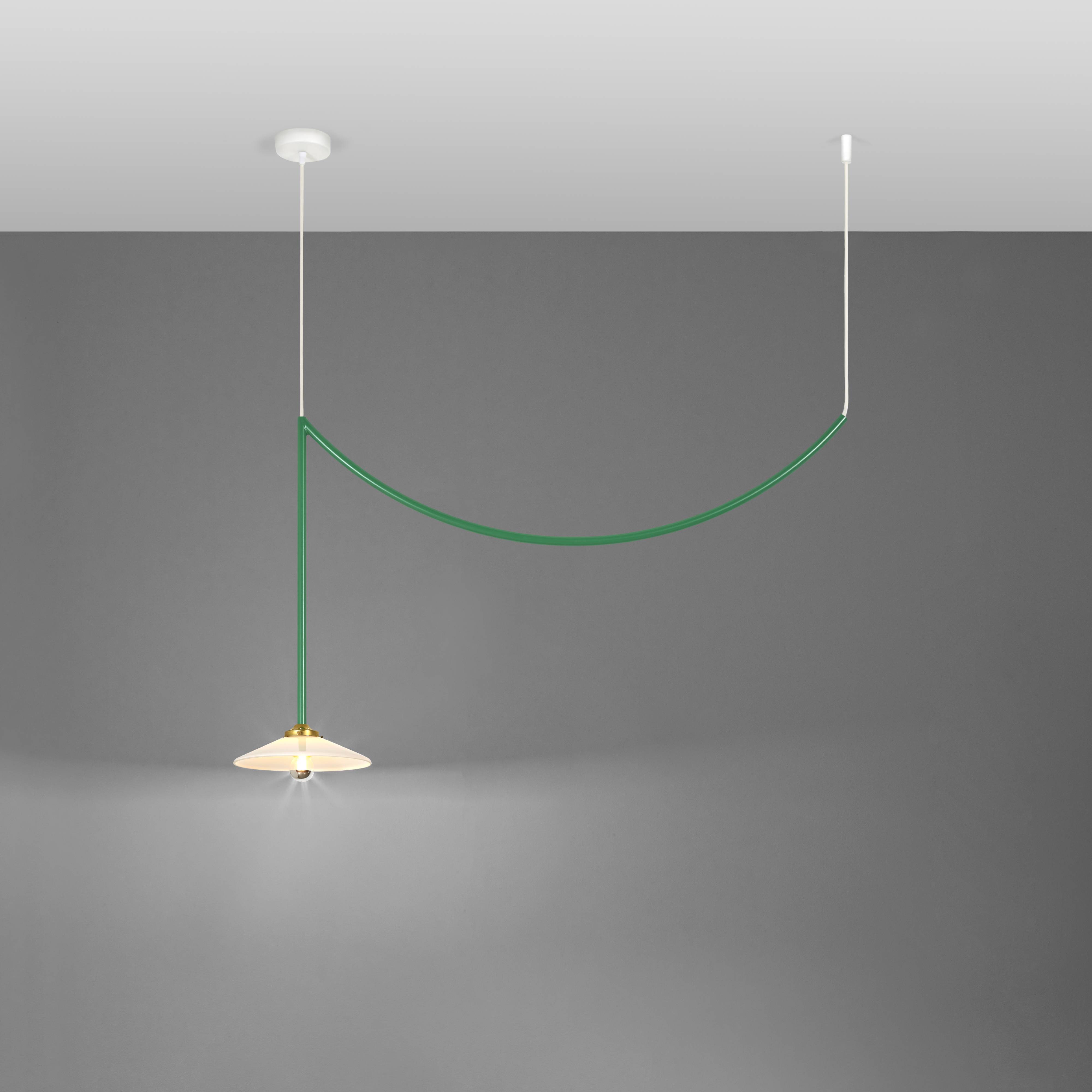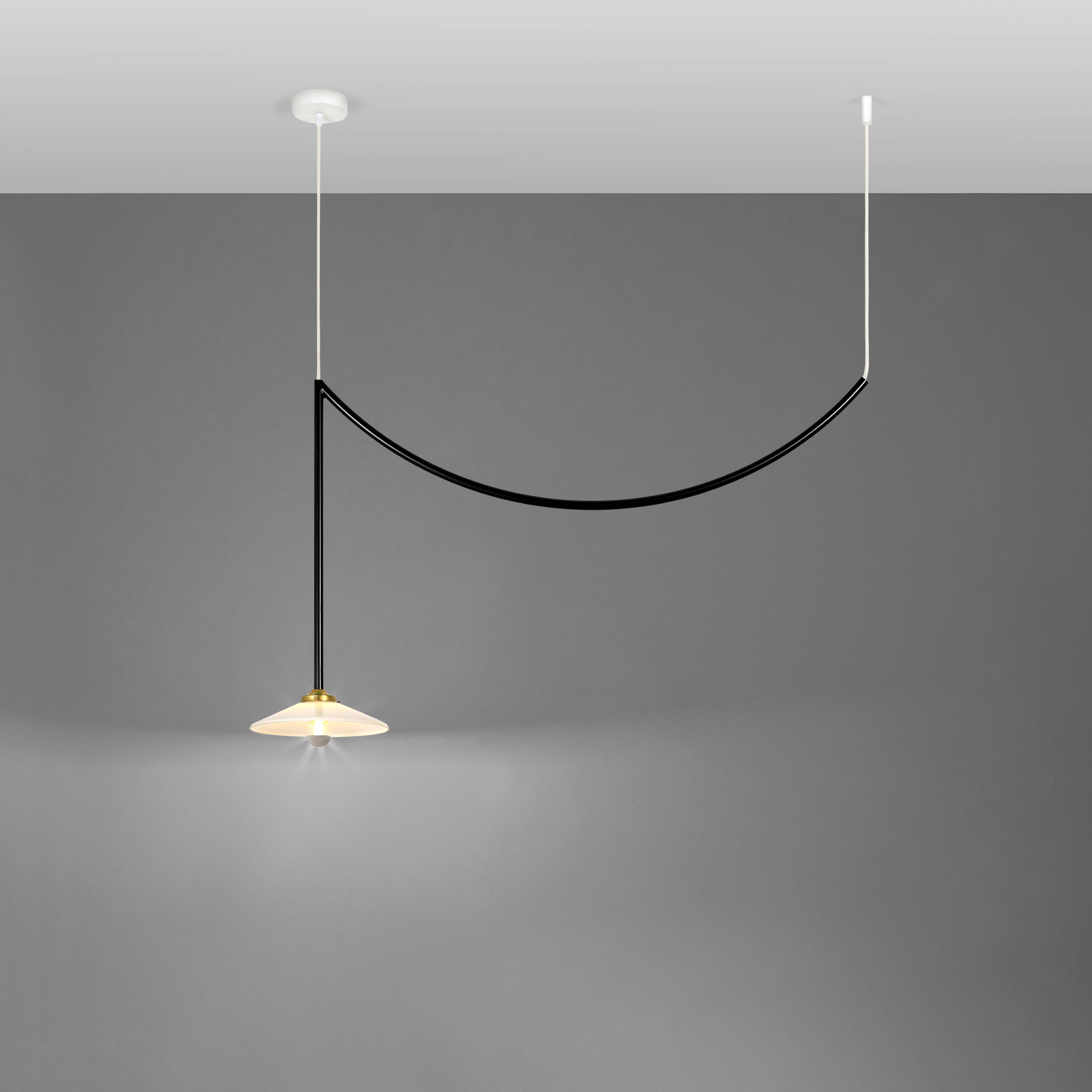 Designers Muller Van Severen’s smaller Lamp n°5 from its antithetical garland series repeats the trompé l’oie styling in solid steel. The duo sees the attention-getting swag as a means of appreciating the characteristics of its surrounding room setting. Conceived to honor the 5th anniversary of Valerie Objects, the ceiling fixture coms in golden bras or a range of bold hues.