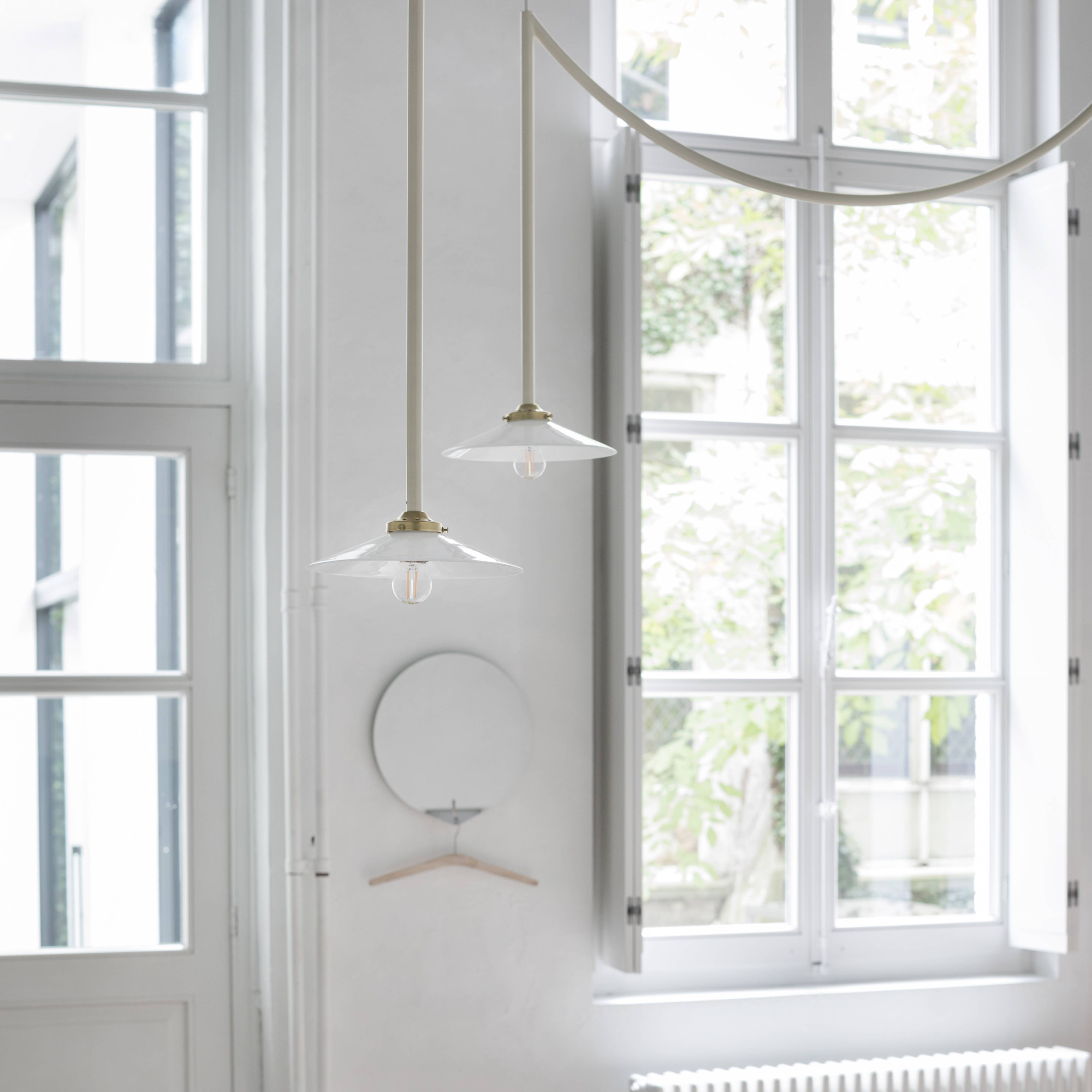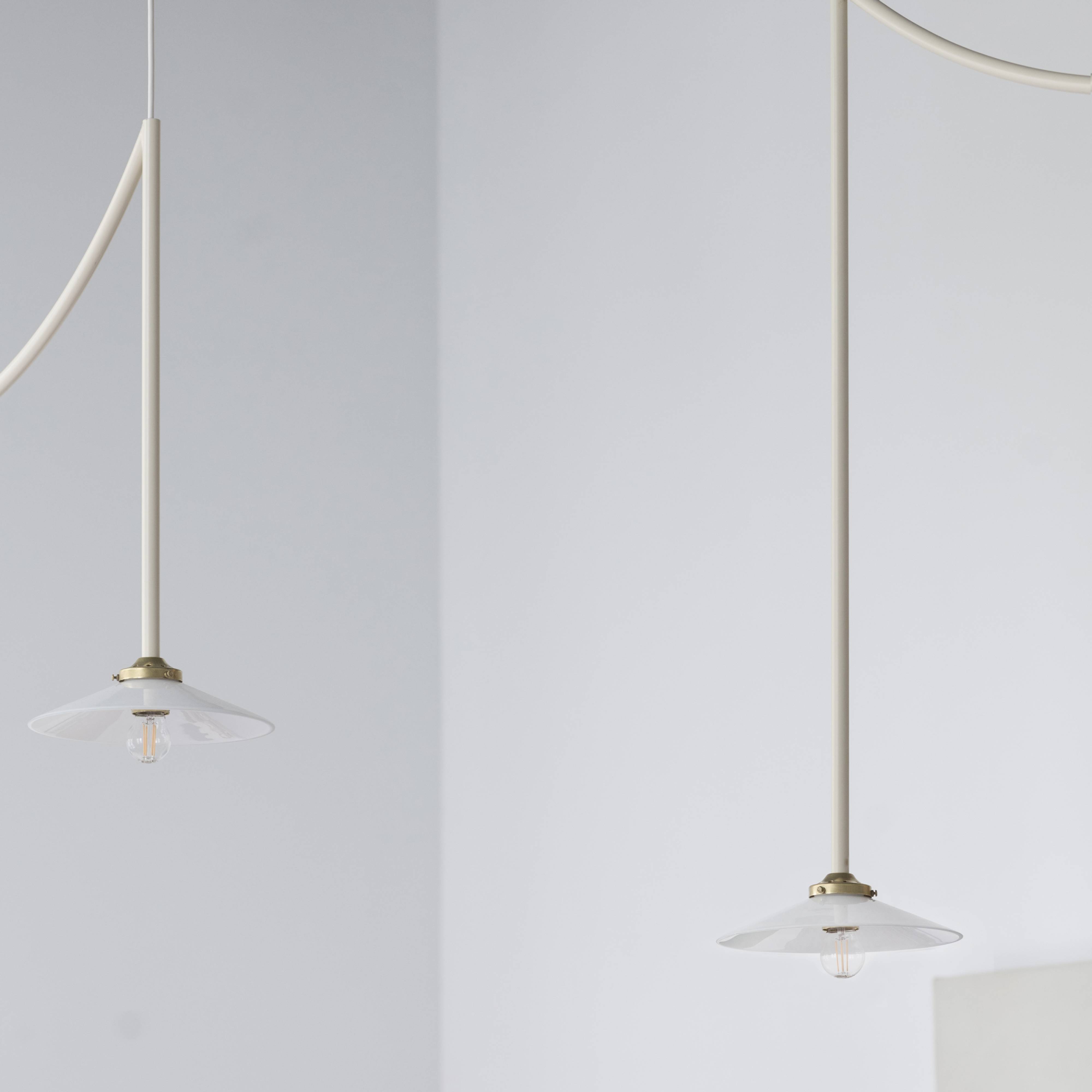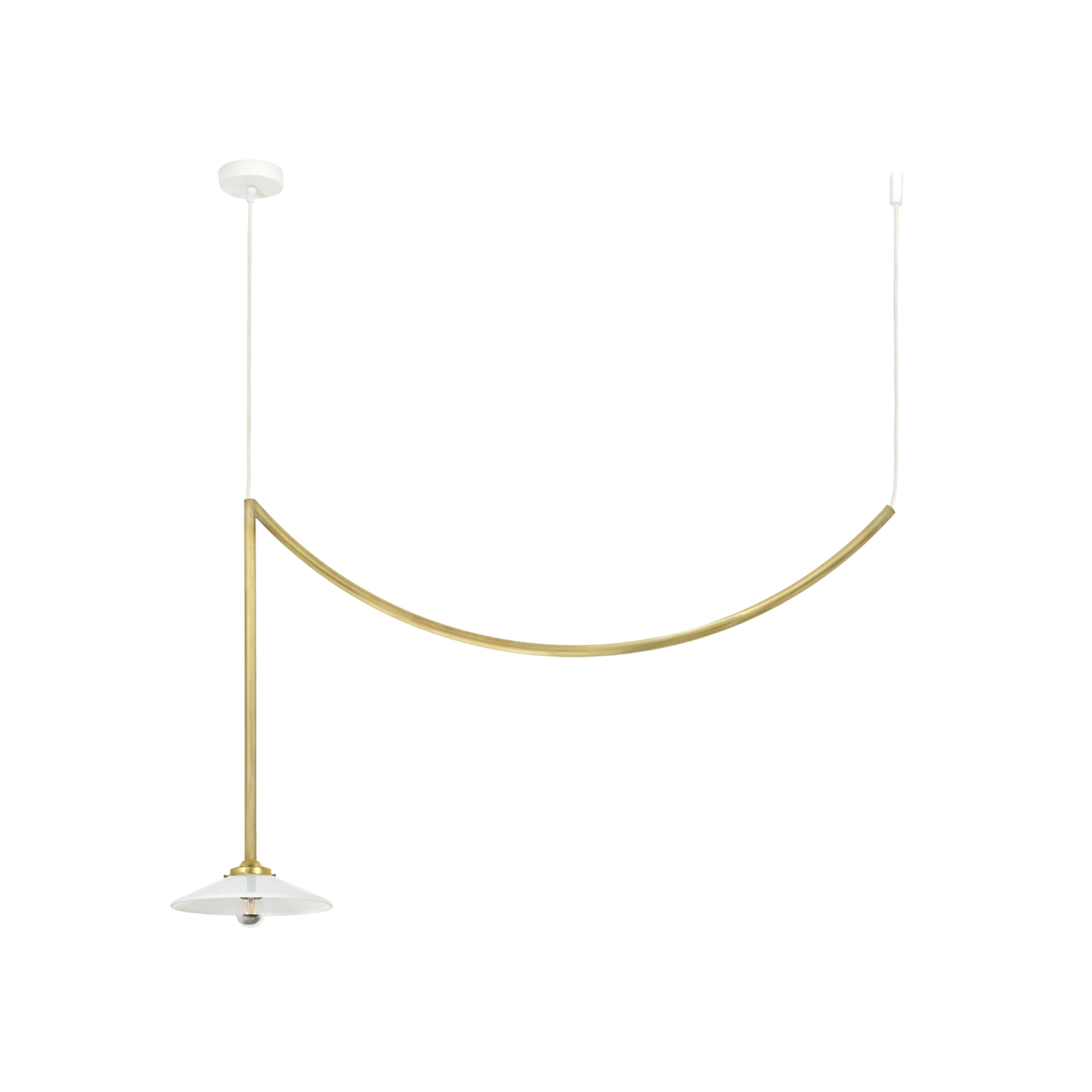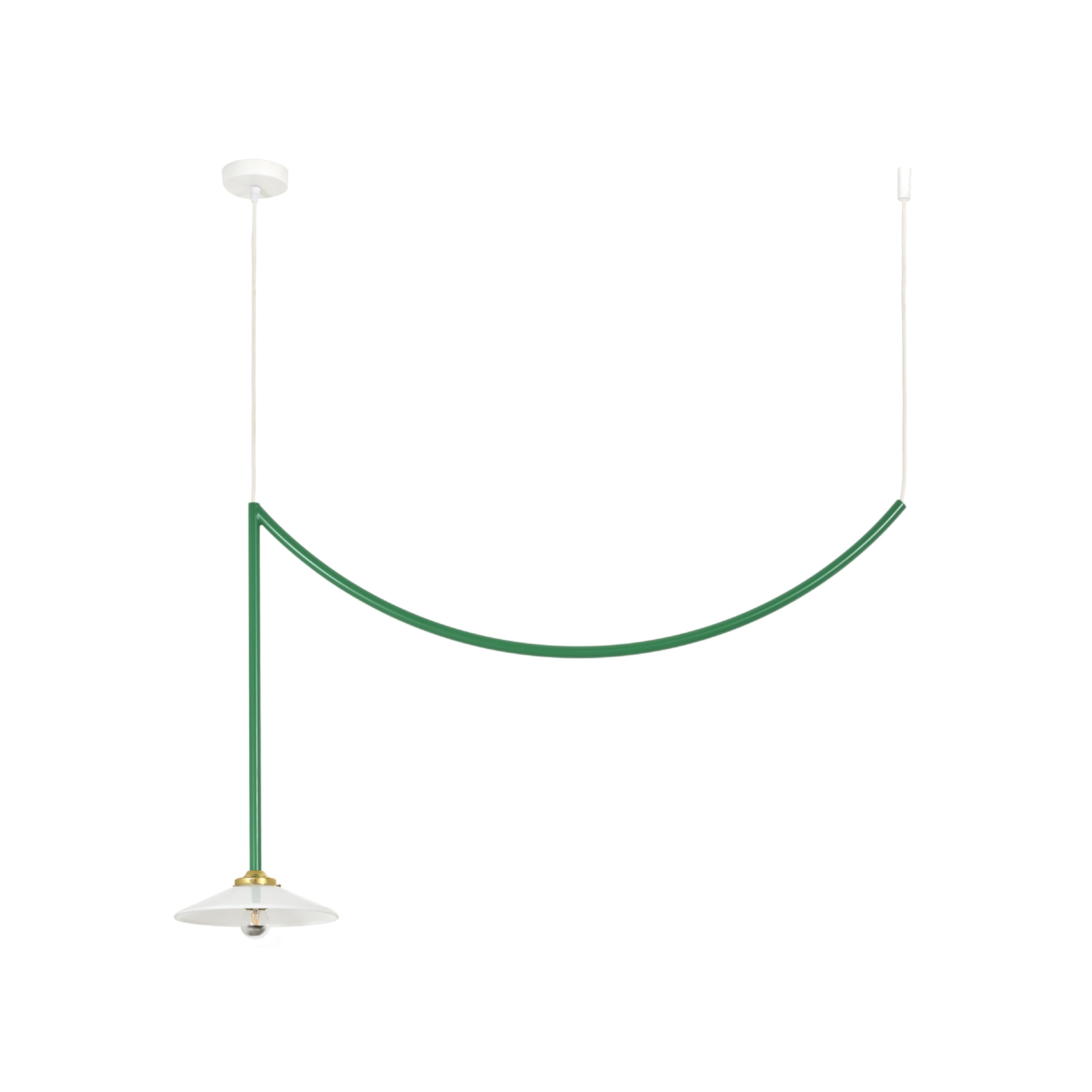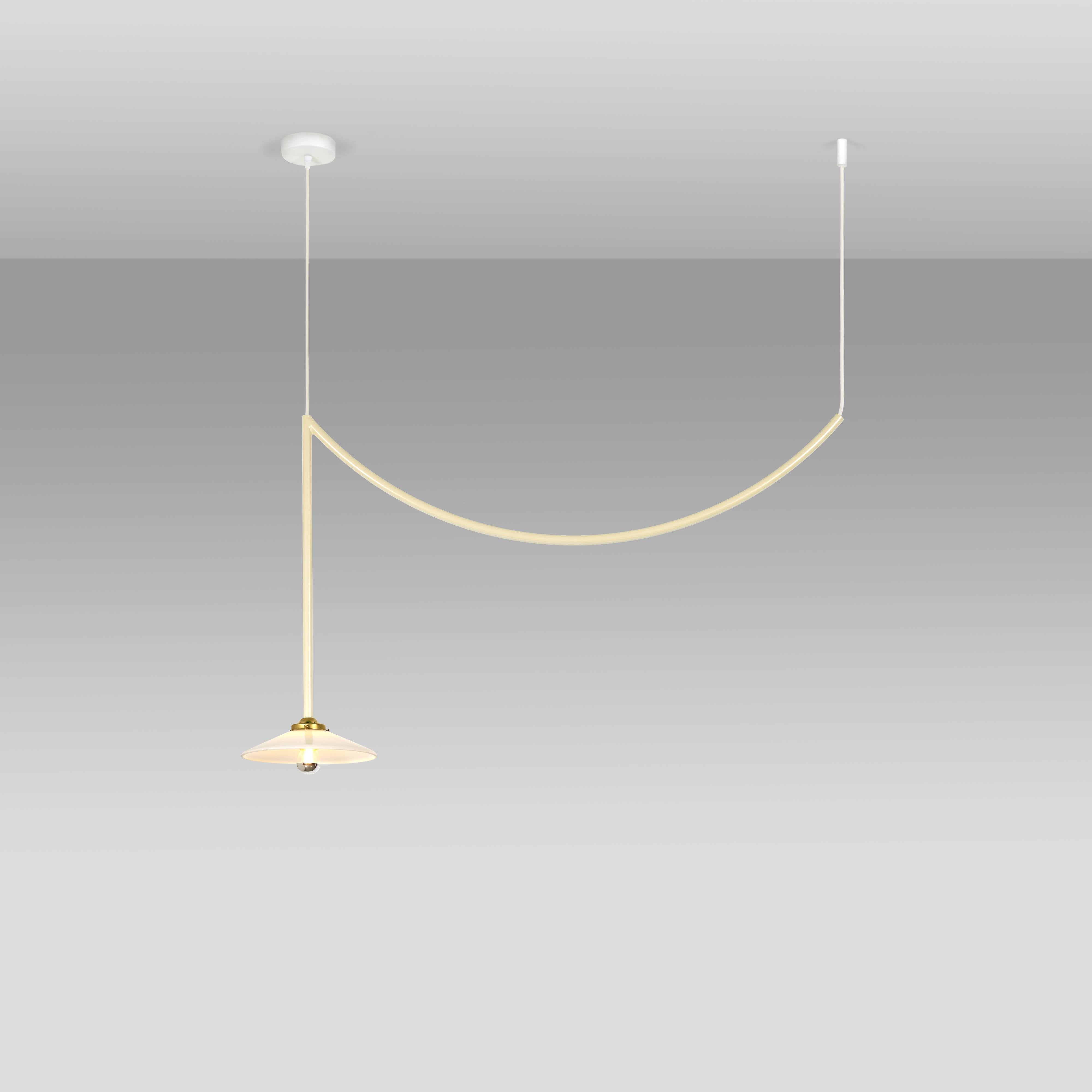 Designers Muller Van Severen’s smaller Lamp n°5 from its antithetical garland series repeats the trompé l’oie styling in solid steel. The duo sees the attention-getting swag as a means of appreciating the characteristics of its surrounding room setting. Conceived to honor the 5th anniversary of Valerie Objects, the ceiling fixture coms in golden bras or a range of bold hues.