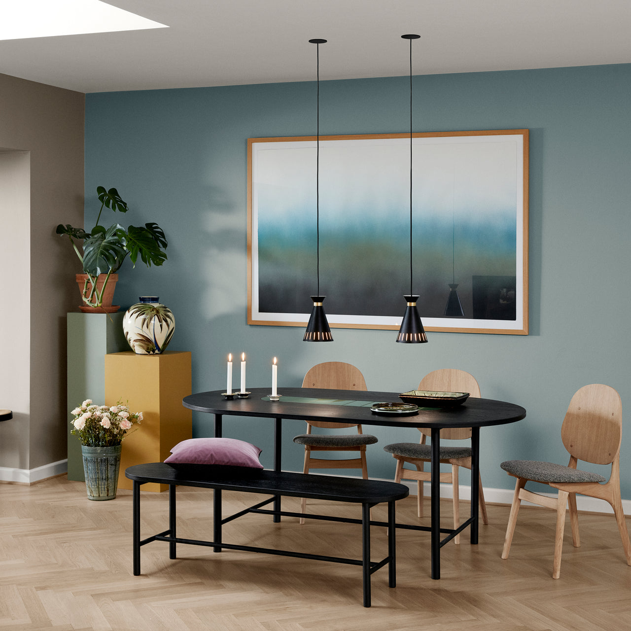 Designed by Charlotte Høncke, Be My Guest features a wooden tabletop with subtle, recessed tile elements. Its soft, rounded edges foster an inviting atmosphere, making it ideal for social gatherings where there’s always room for one more person. Inspired by traditional Scandinavian tiled tables, a light metal frame emphasizes the tabletop as the main focus. Available in 2 sizes.