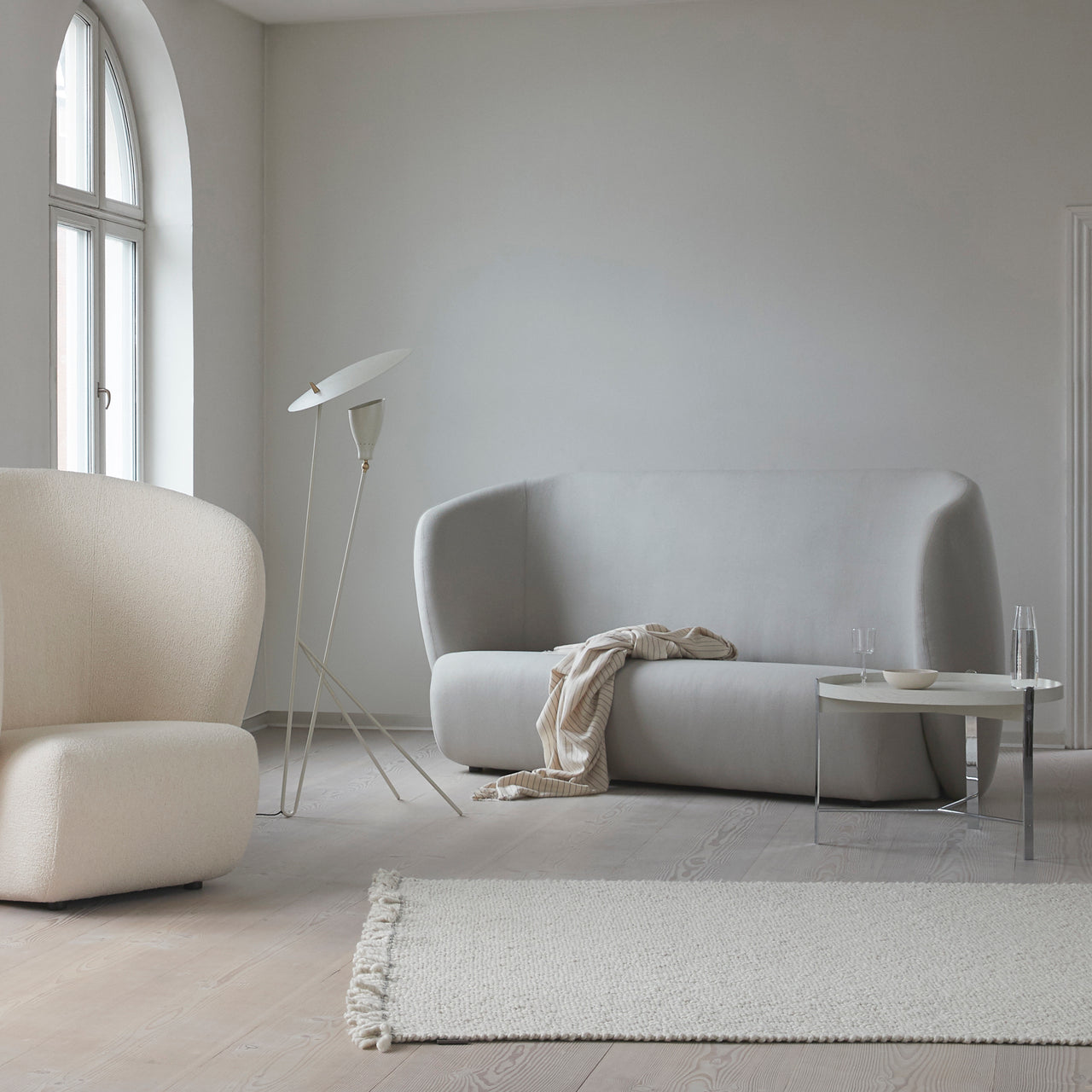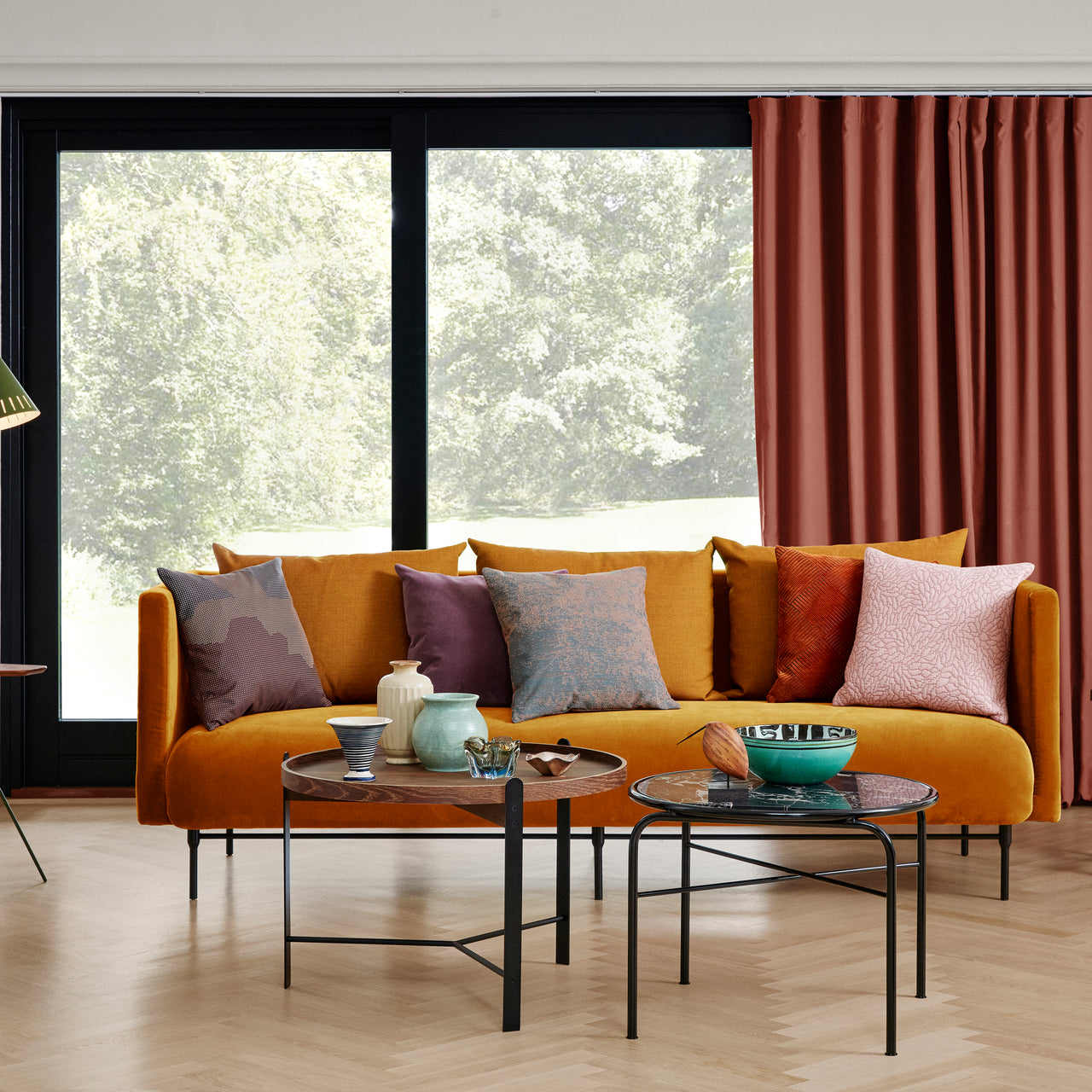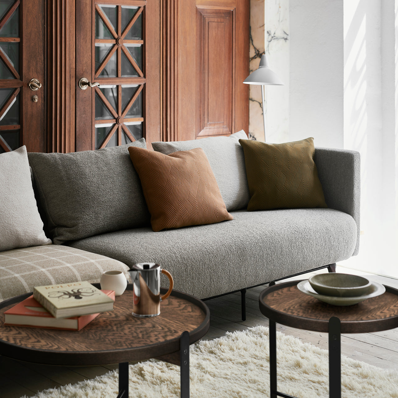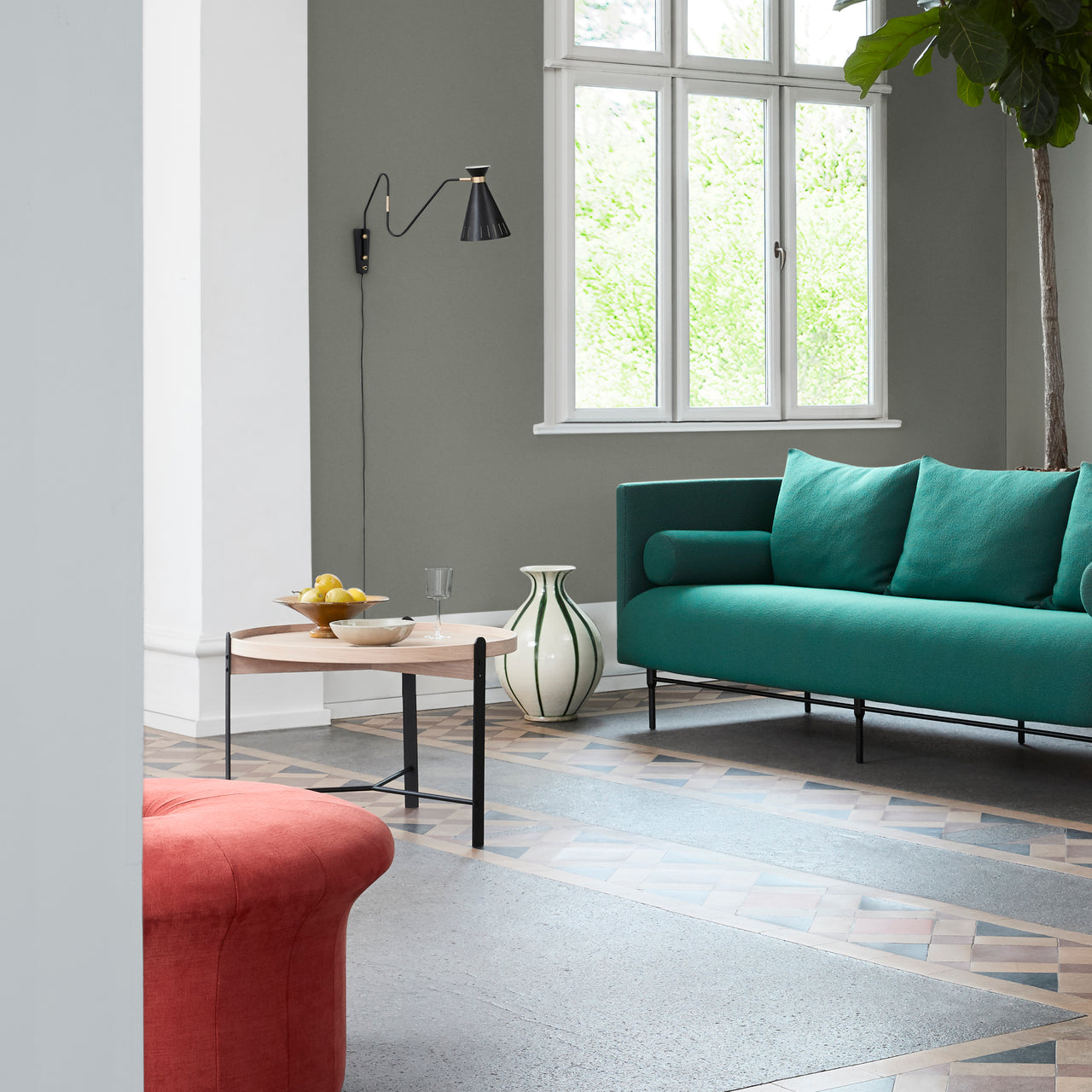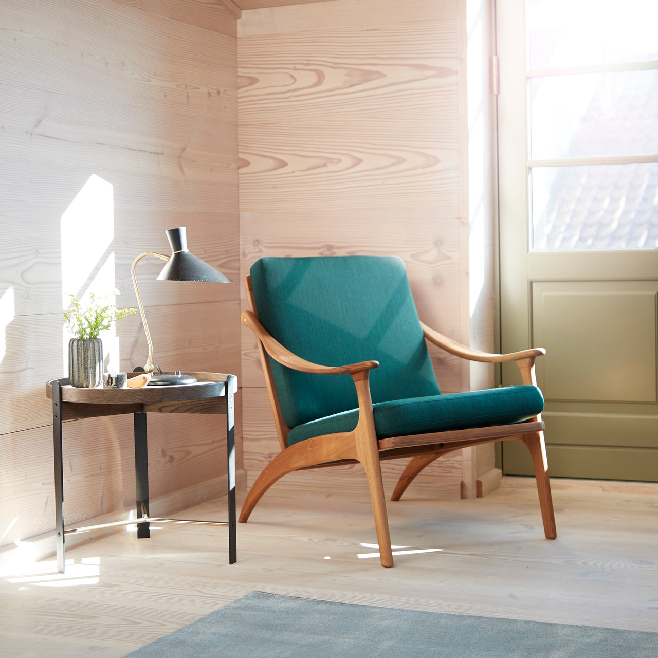 Charlotte Høncke brings a stylish twist to Scandi style with Compose, a round occasional table devised in a unique combination of warm woodgrain and sleek metal. In its 2 sizes—the smaller also doubling as a side or bedside table—Warm Nordic offers several intriguing oak surface options, with the 3-legged frame in complementary chrome, brass or lacquer finishes.
