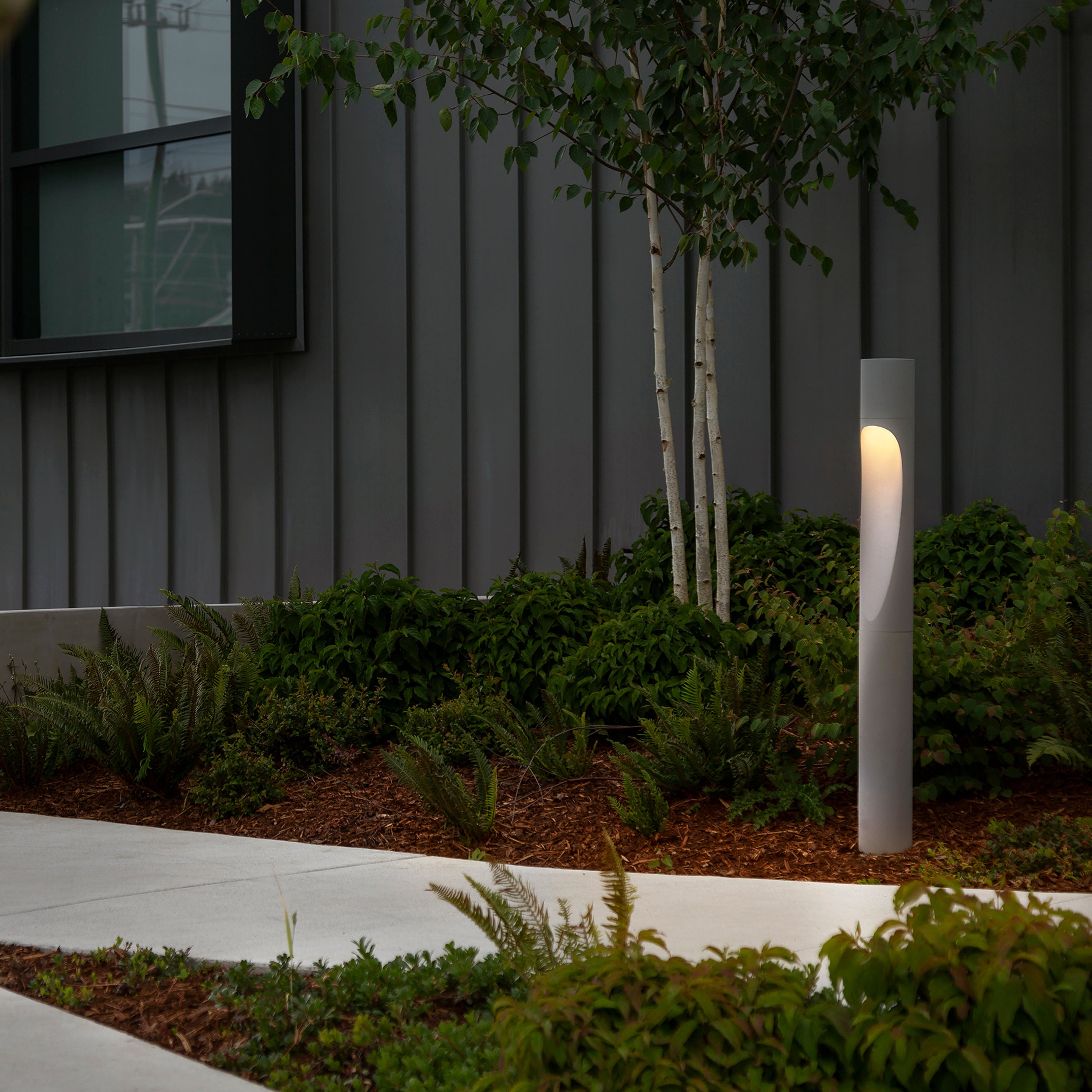Like its big brother, the downscaled Flint Garden Bollard elegantly complements gardens, parks and other outdoor living spaces. Multiple units can be operated by a single power supply, and the light truly stands out in repetitive installations—its flexible and minimalist design just as beautifully suitable in a natural setting as it is in an urban garden environment.