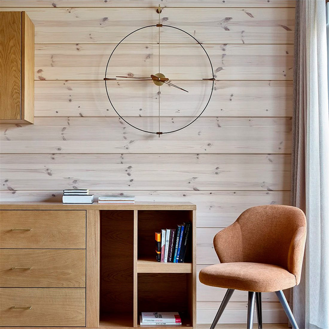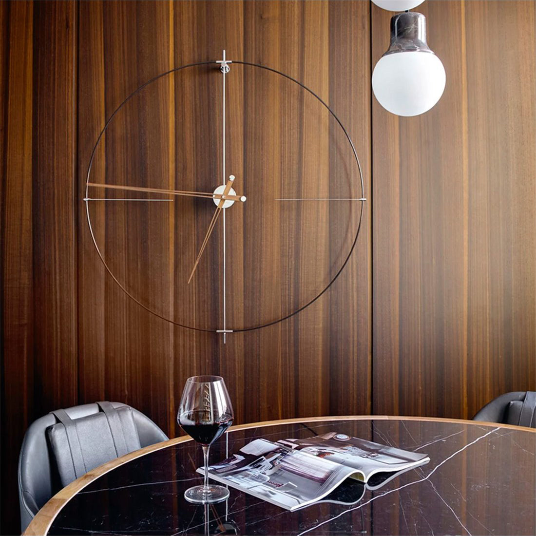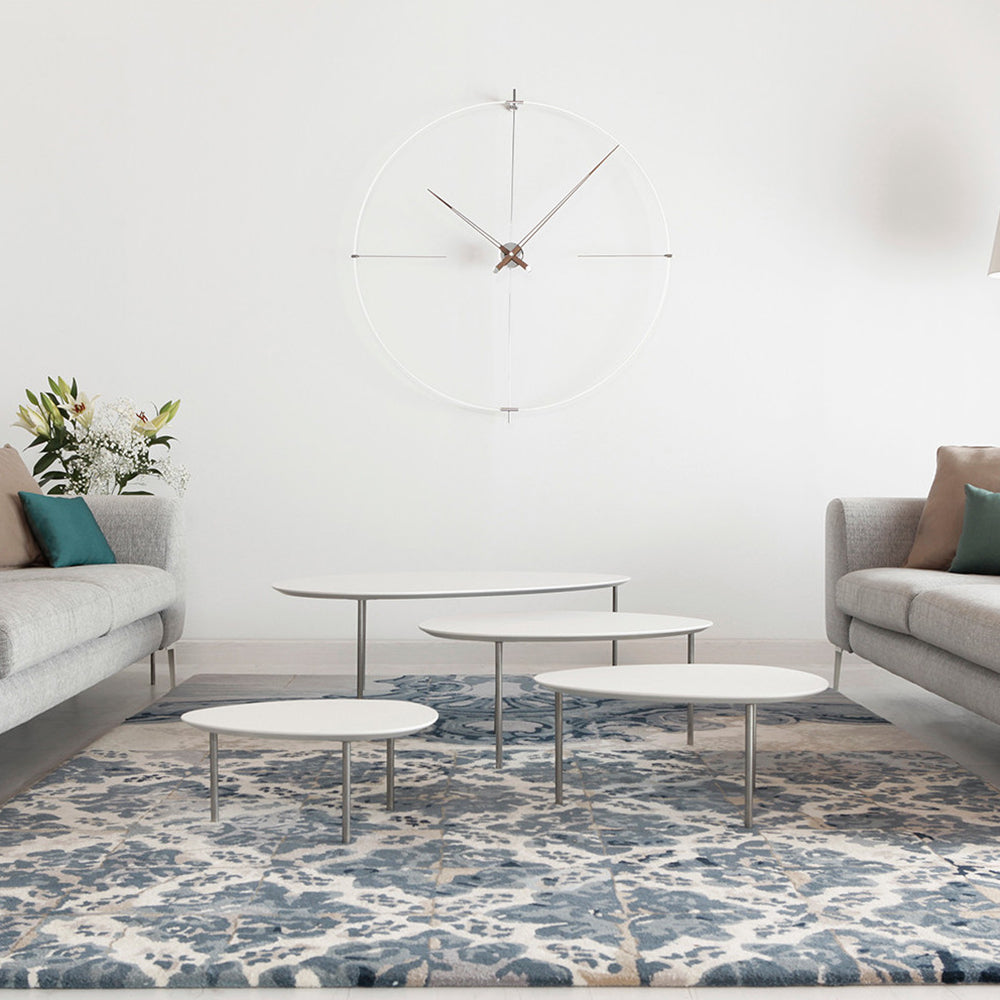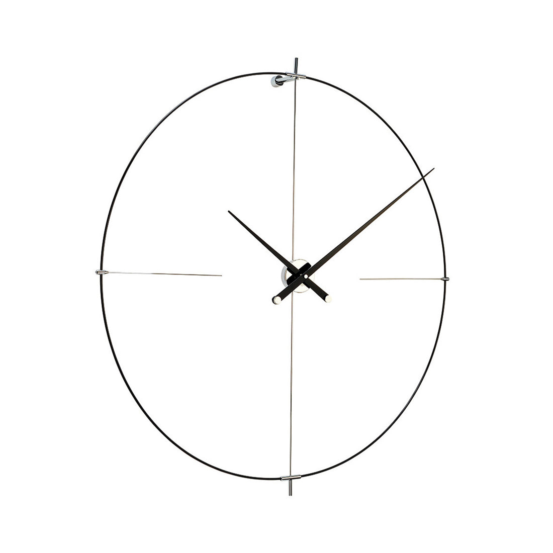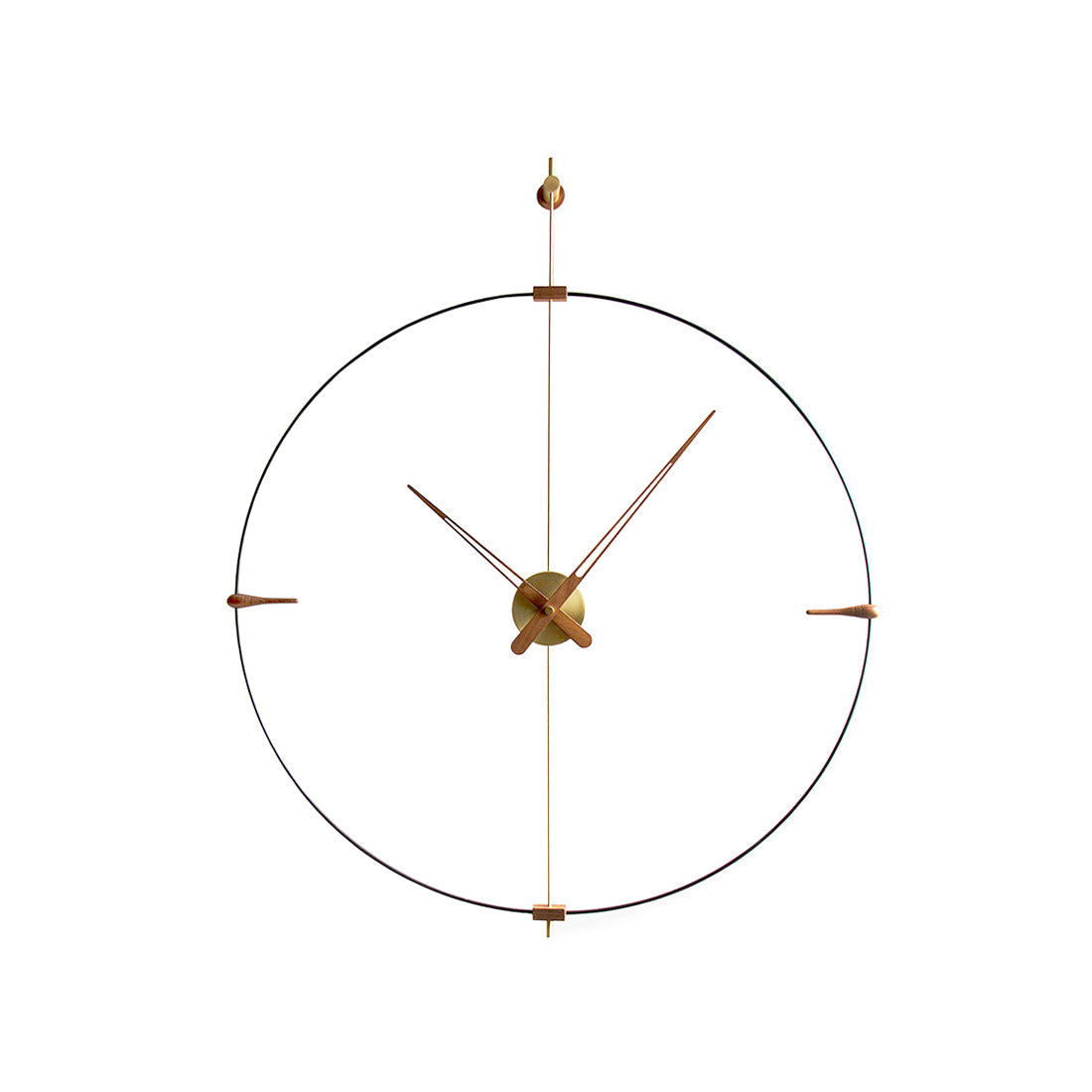 Bilbao's suspended ring enhances a minimalist vibe via Nomon’s crisp styling in a choice of black or white with needle hands to match or contrast — or choose an accent of gorgeous genuine walnut. Available in regular and mini versions, the handcrafted wall clock's metal support and center box come in complementary chrome or brass finishes. Battery-powered and made in Spain with a precision German quartz works, the statement clock is easily installed to elevate any space.