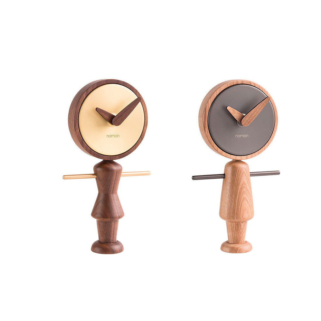 Completing Nomon’s amusing stick figure “couple,” Nena is handcrafted in either solid oak or walnut with a choice of brass or graphite accents. Adding a luxurious and useful touch to a desk or sideboard, the table clock incorporates a precision German UTS mechanism.