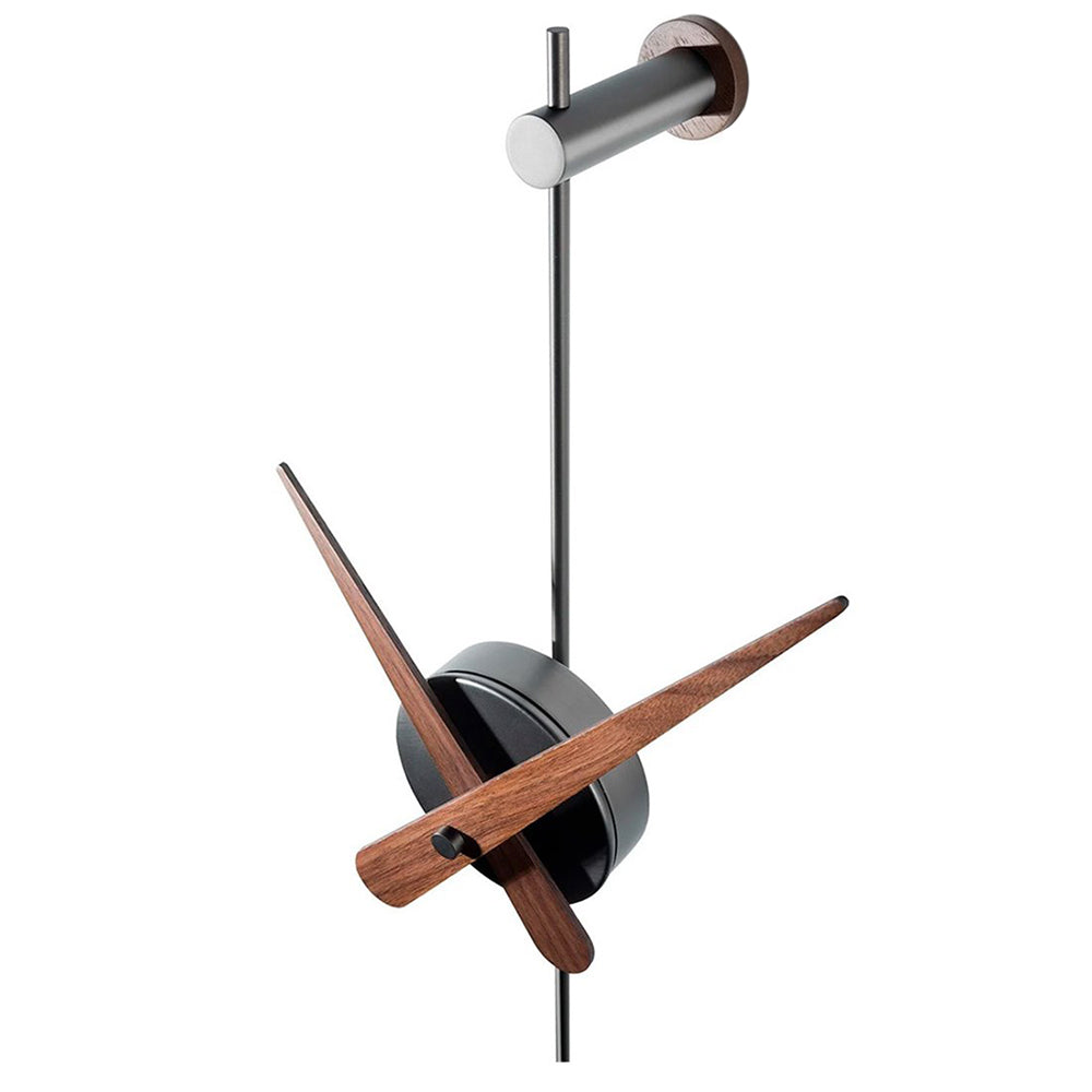 A design-worthy successor to the classic pendulum clock, Punto Y Coma provides a minimalist update with its sleek wall-mounted design. Featuring a central box in a choice of brass finishes — in chromed, polished or graphite variations — the slim needle hands and elongated pendulum lend an intriguing contrast in natural walnut or polished steel. Powered by precision German UTS works, the focal-point timepiece is easily installed and battery-powered without electrical connections.