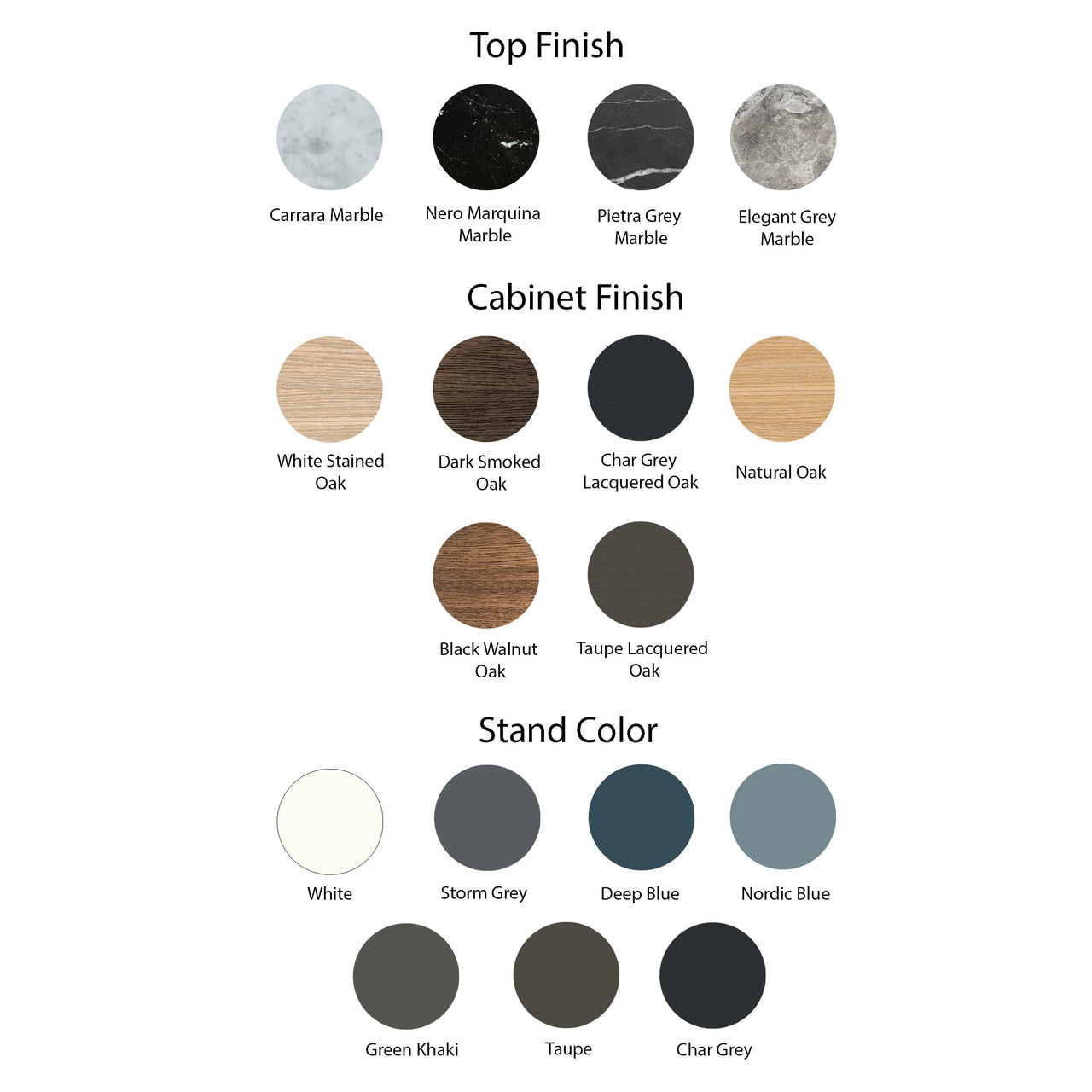 Each with its own inherently unique pattern, a gorgeous swath of Carrara or Carnico marble tops this version of Asplund's larger Luc 200 with its quartet of concealing front doors for ample storage. Fashioned in a choice of stained or lacquered oak, the sideboard from designers Mats Broberg and Johan Ridderstråle hews to their characteristically minimalist style. Seemingly floating on its slim metal legs, the base is available in complementary powder-coated colors.