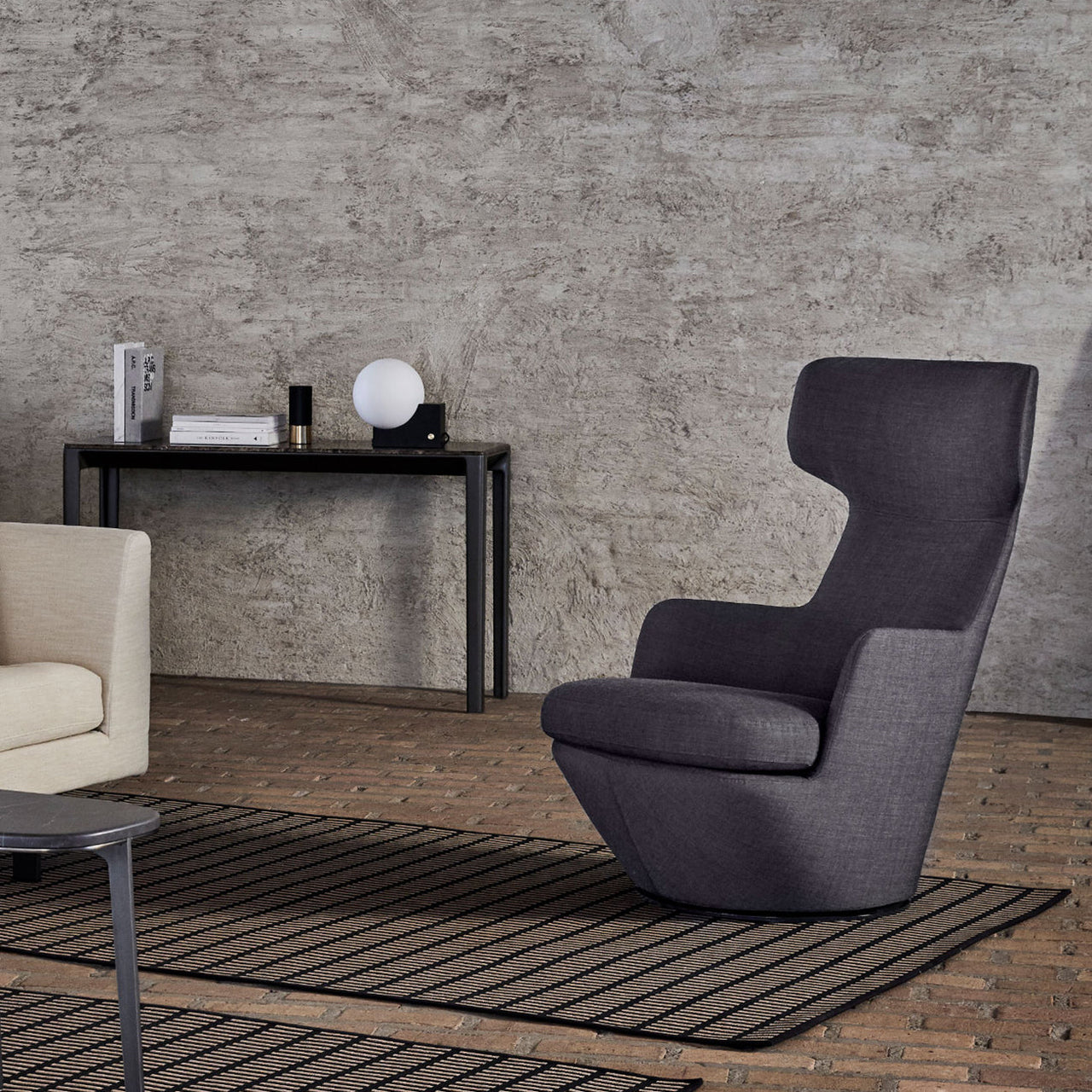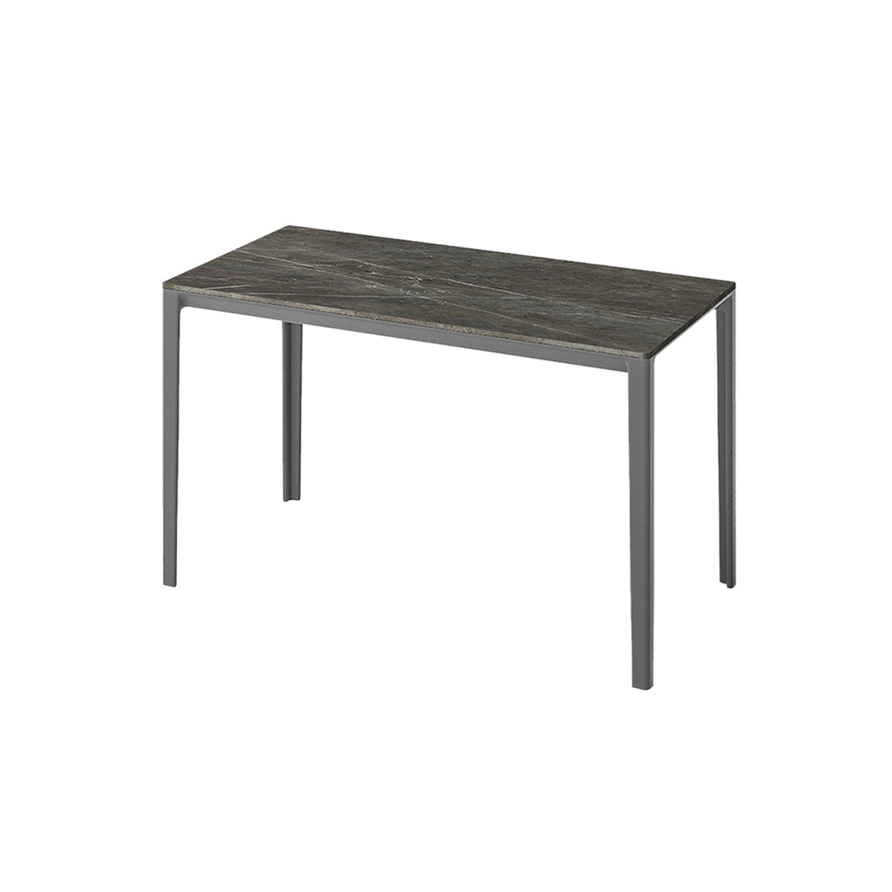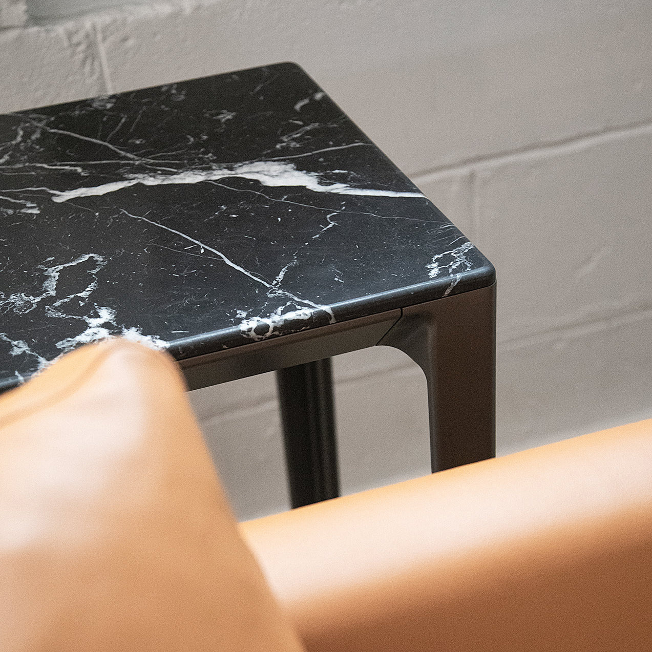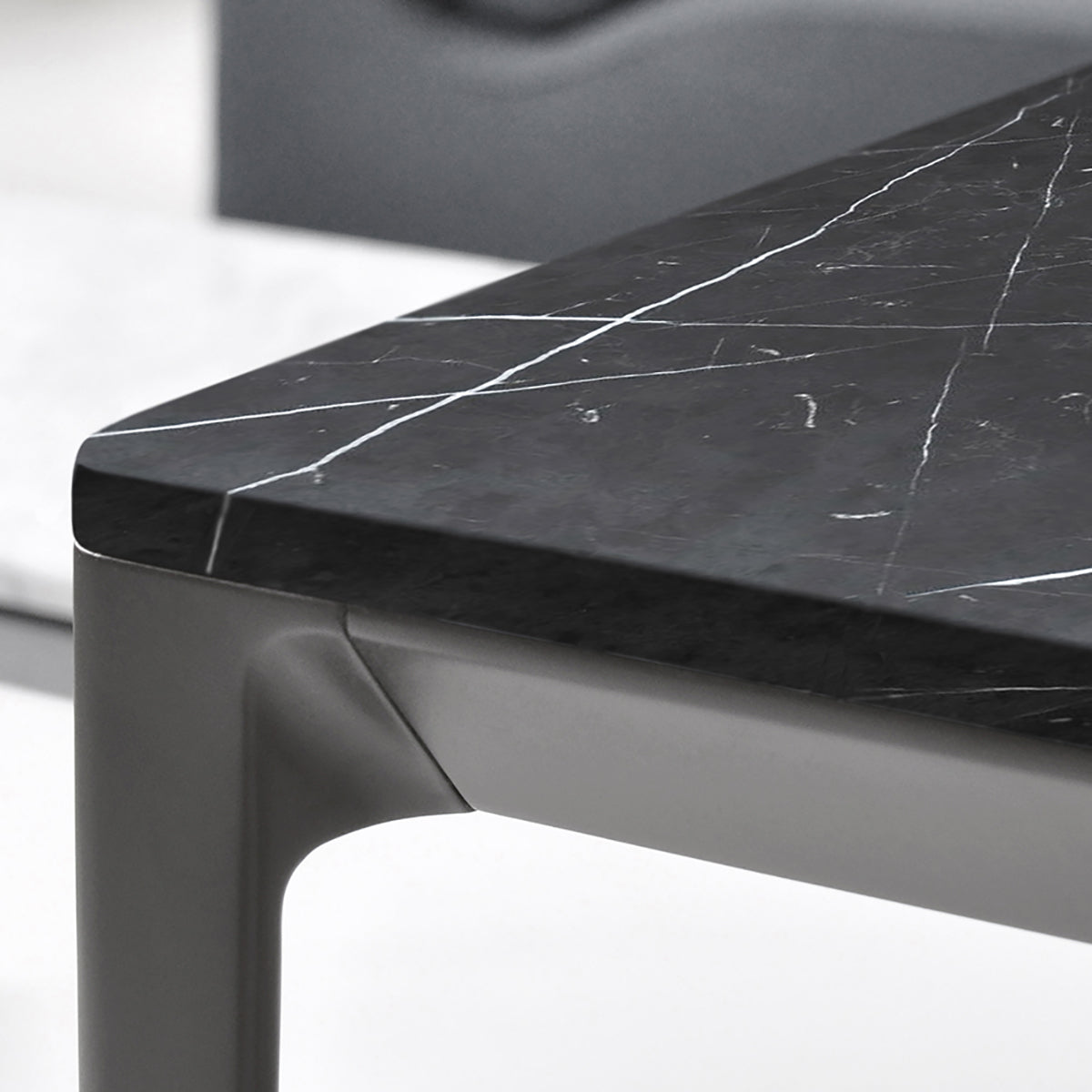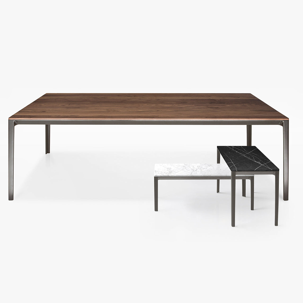 A console that doesn't overpower its surroundings, Able lends a sense of visual lightness to and sleek finesse to a room. Available in 4 sizes, there's one to fit every space. Complementing the beveled-edge tabletop, the curving frame is fashioned in cast aluminum with a subtle graphite finish. Remarkably lightweight but impressively sturdy, the console is available with its top surface in a choice of wood, marble and Polaris laminate.