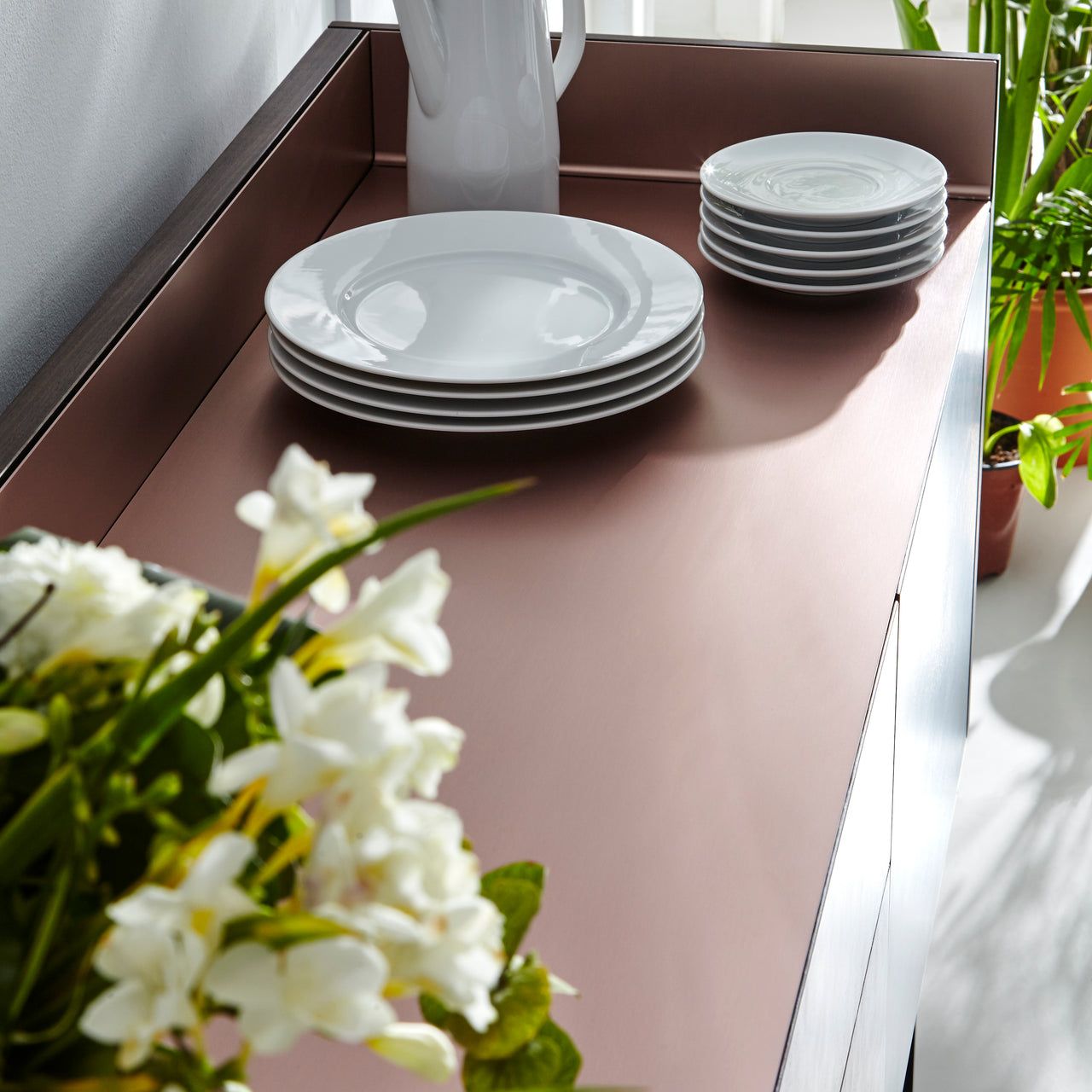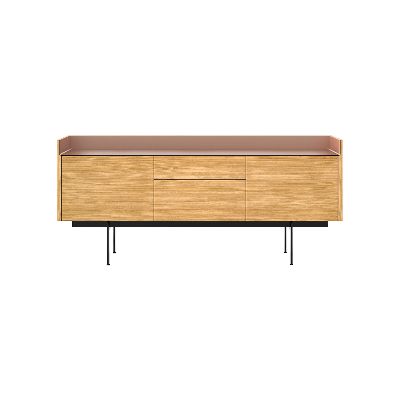 Stockholm STH302 Sideboard: Composition 3 + Super-Matt Oak + Anodized Aluminum Pale Rose + Black