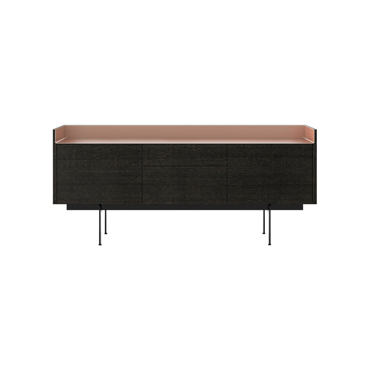 Stockholm STH302 Sideboard: Composition 3 + Ebony Stained Oak + Anodized Aluminum Pale Rose + Black