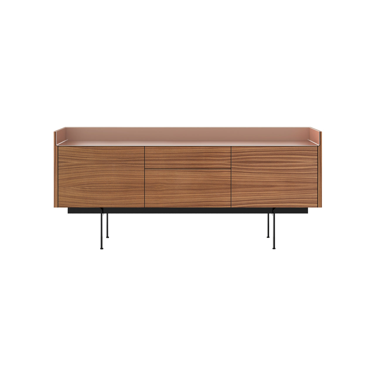 Stockholm STH302 Sideboard: Composition 3 + Super-Matt Walnut + Anodized Aluminum Pale Rose + Black