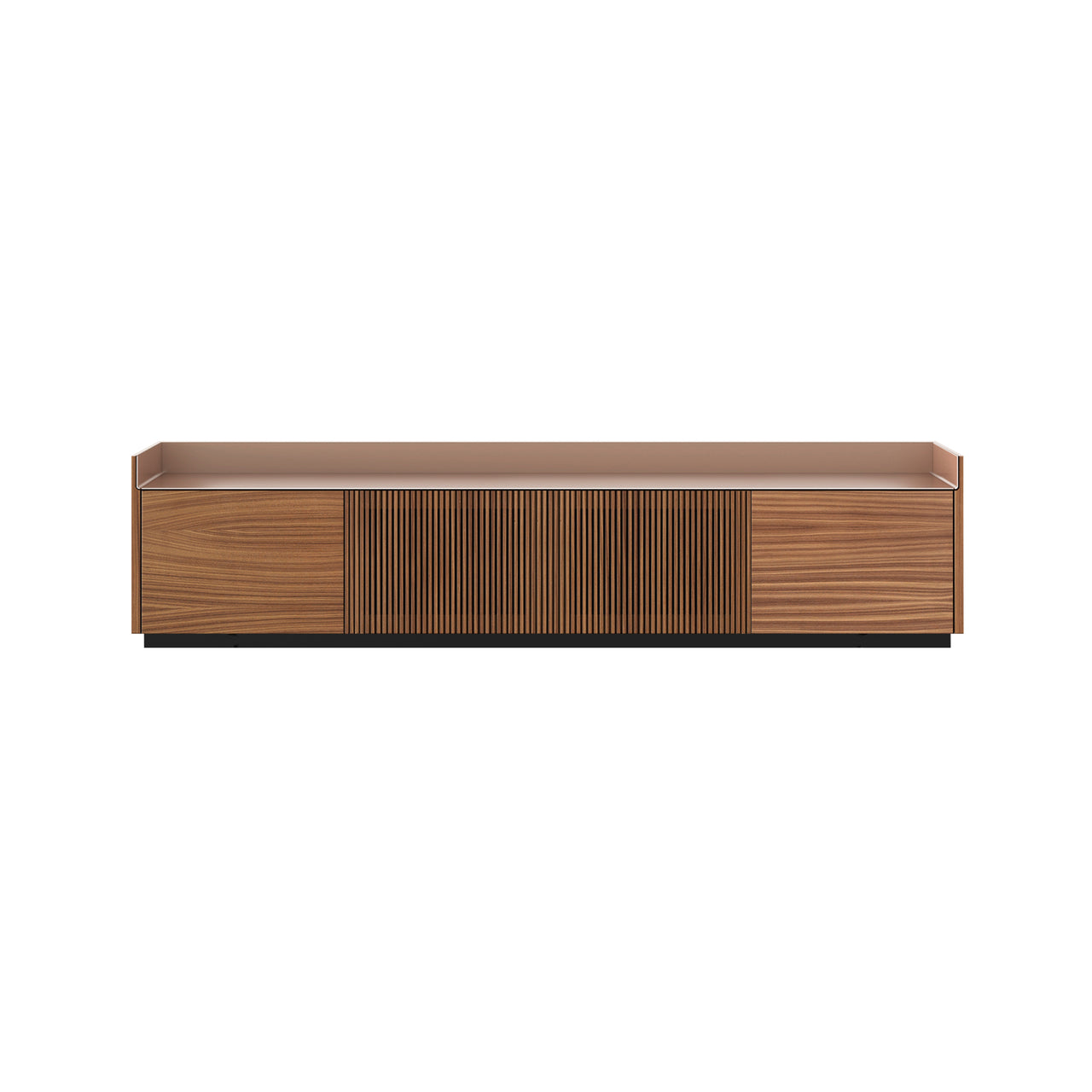 Behind 4 slatted TV doors, this version of Stockholm Technic reveals a number of storage compartments with adjustable shelves as well as cable management and rear plug access. Designer Mario Ruiz’ sleek sideboard offers a range of fine oak and walnut veneer finishes, topped with the series’ lustrous aluminum top surface and situated on a slender metal base.