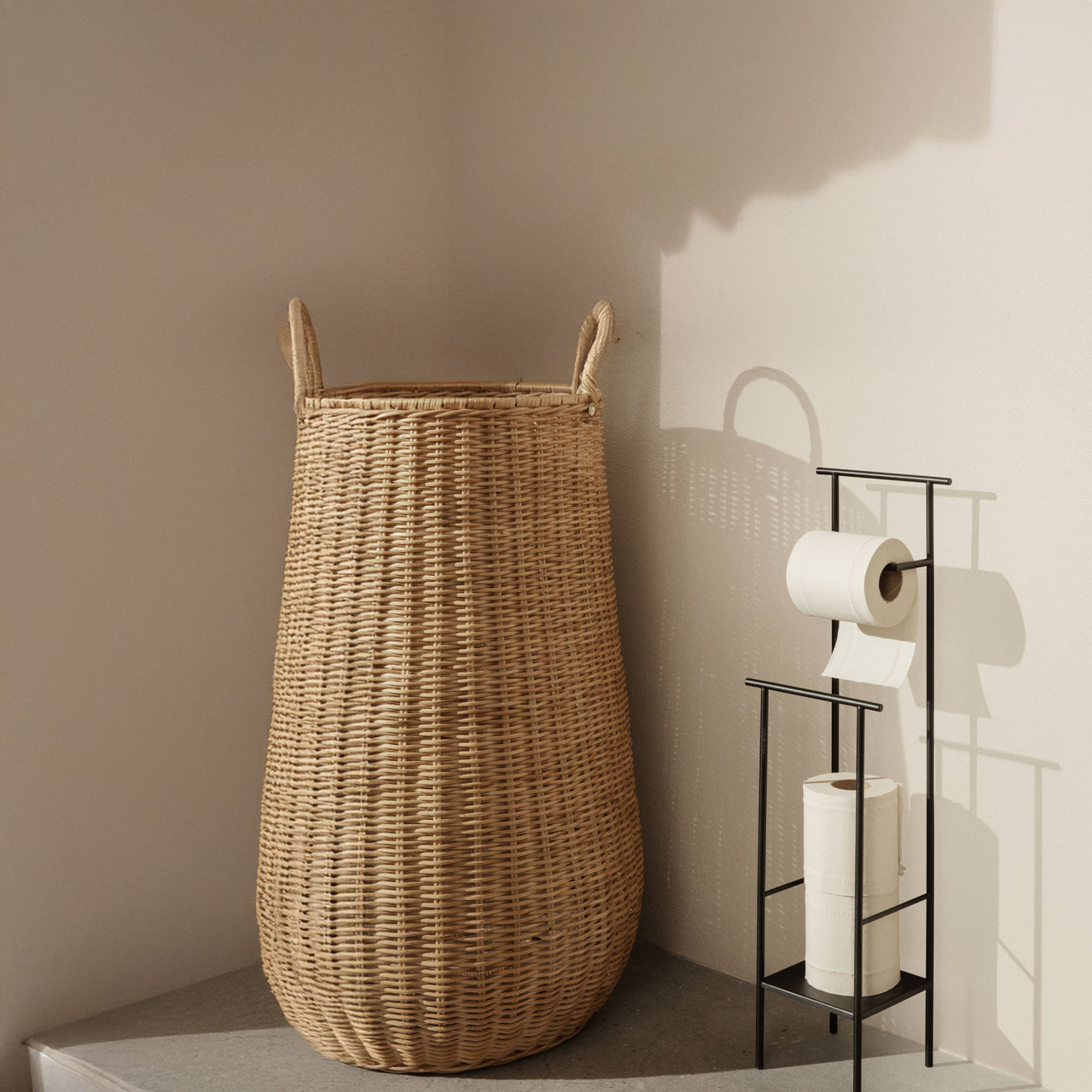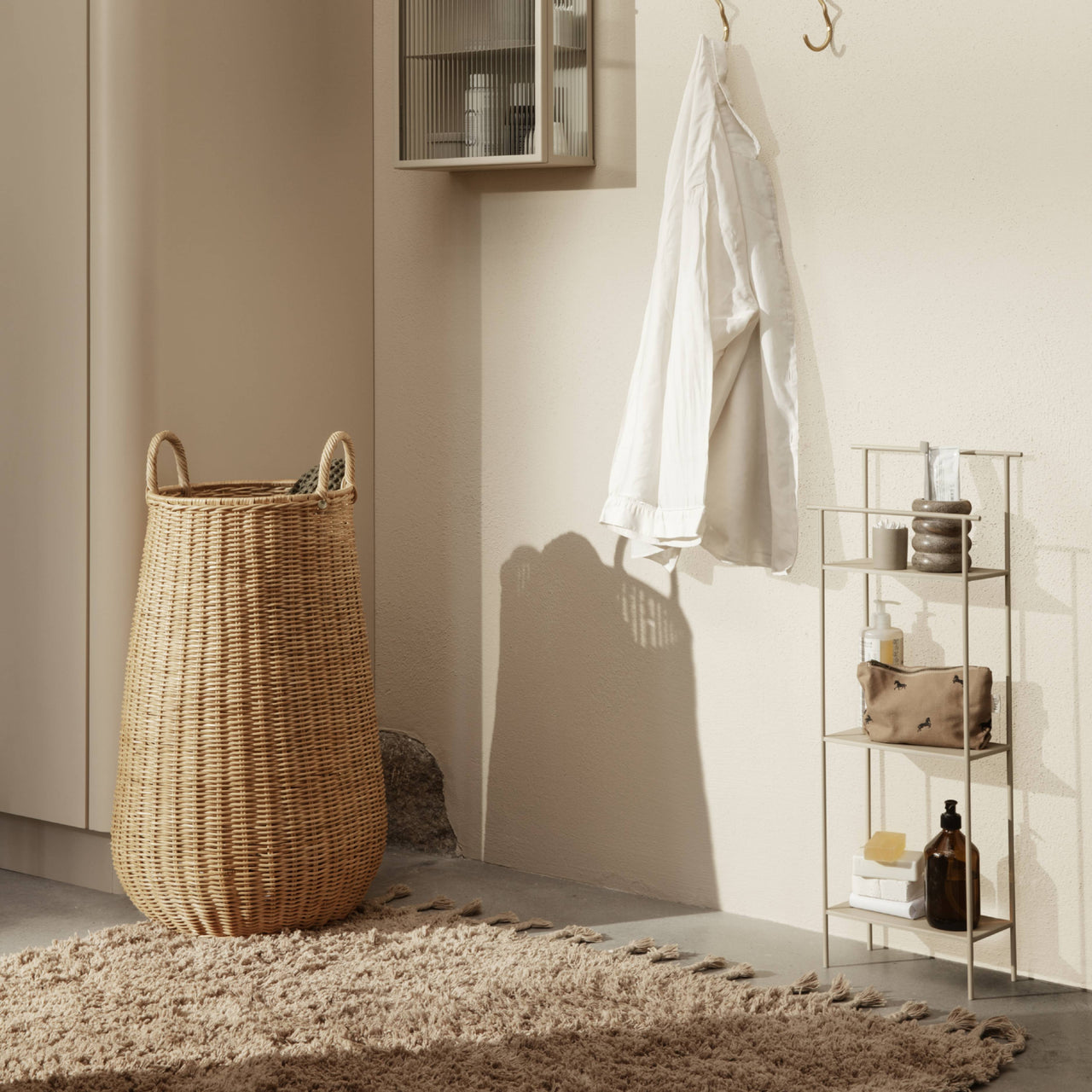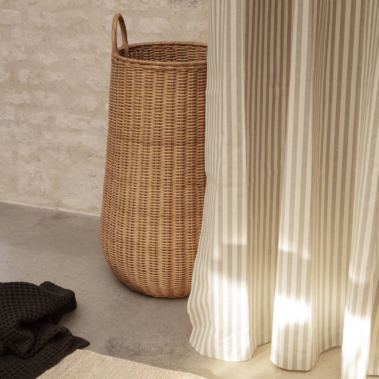 Ferm Living's Braided Laundry Basket offers a spacious solution for storing laundry. Handcrafted from natural rattan, its tall, slender design seamlessly integrates into bathrooms or bedrooms, providing ample space for laundry storage. The basket's natural materials and craftsmanship ensure each piece is unique, adding a touch of artisanal charm to your home.