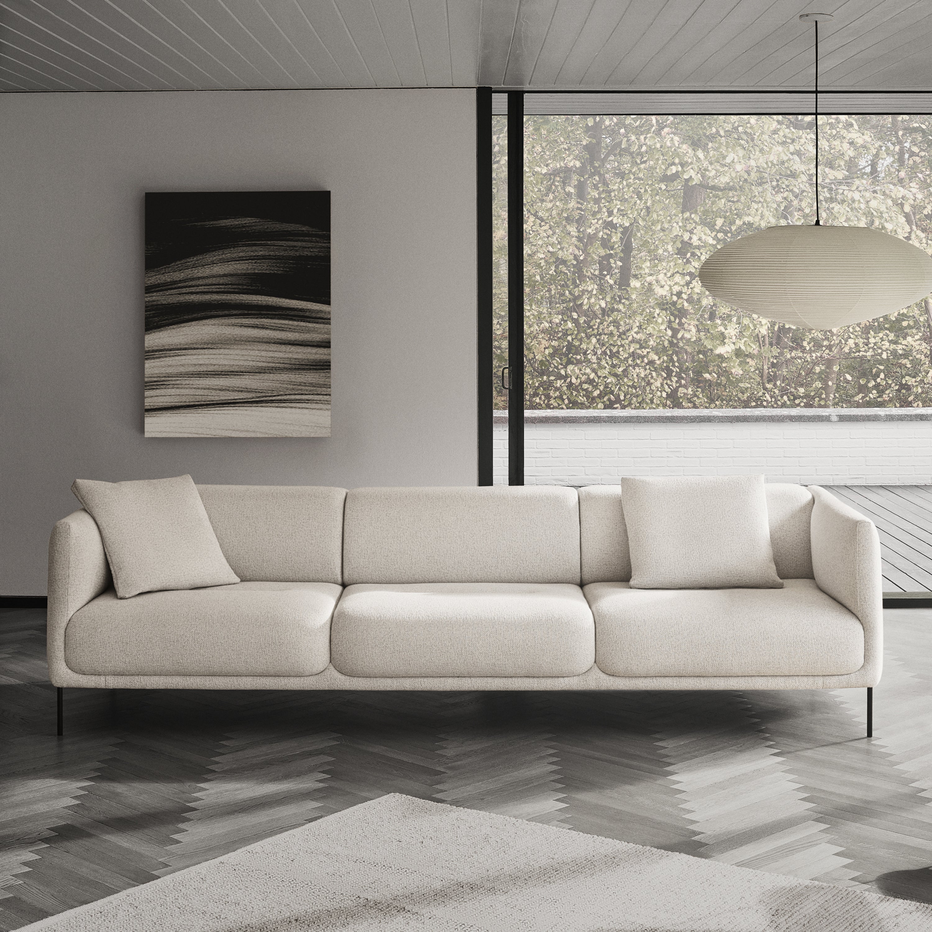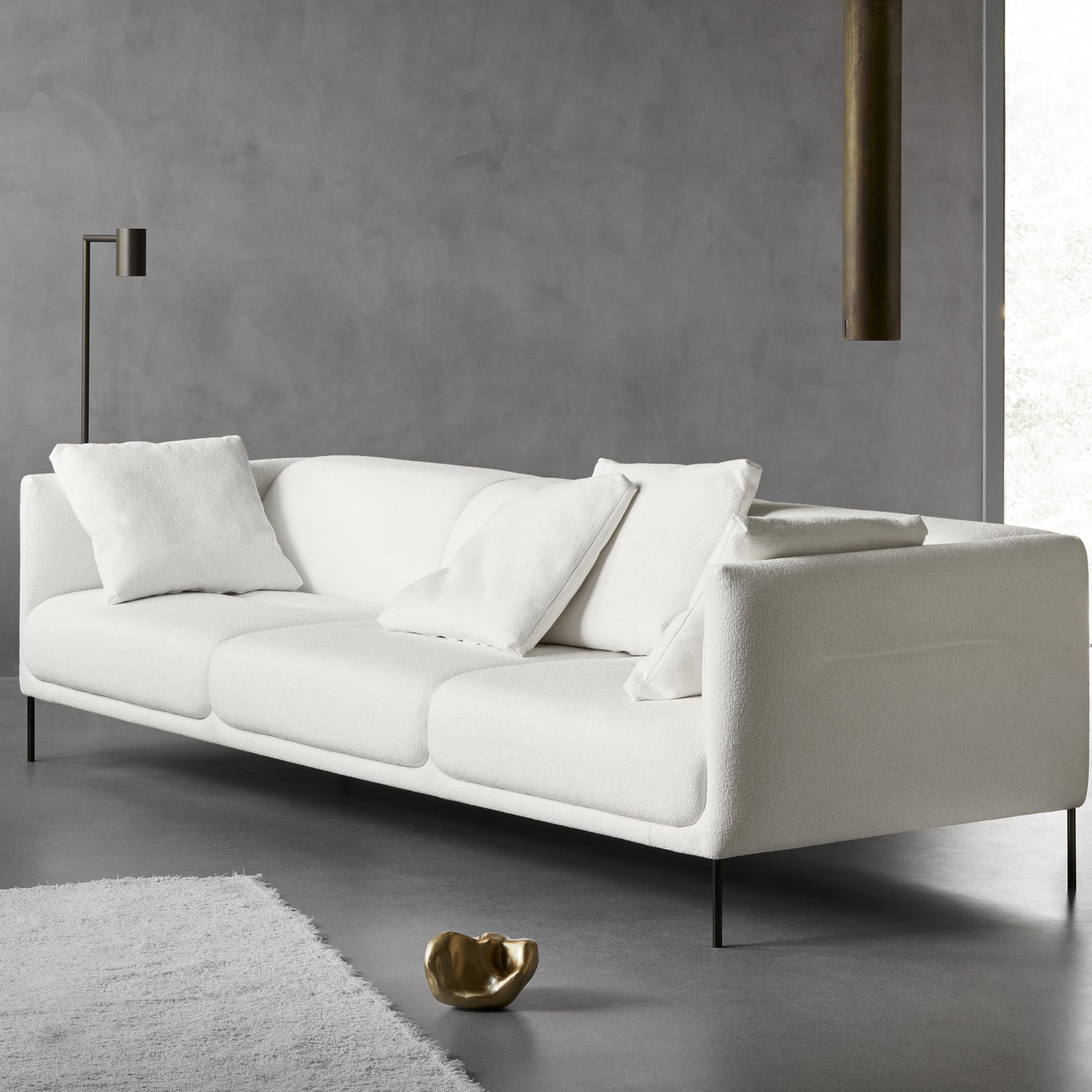With Konami 3 Seater, much like its sister sofas, the sleek lines and subtle armrest curves — named for the Japanese words “ko” and “nami,” meaning “little wave” — lend a sculptural presence from any angle. English designer Damian Williamson essays a streamlined expanse, free of loose cushions or extraneous detail with precisely tailored upholstery in a curated selection of fabrics and realized by Fredericia’s master craftsmen. Structured with a wooden frame supported by a steel base and slim legs in either brushed stainless steel or black powder coat and plumped with cold-cured foam, the sofa ensures comfortable seating, conversing or reclining for hours on end.