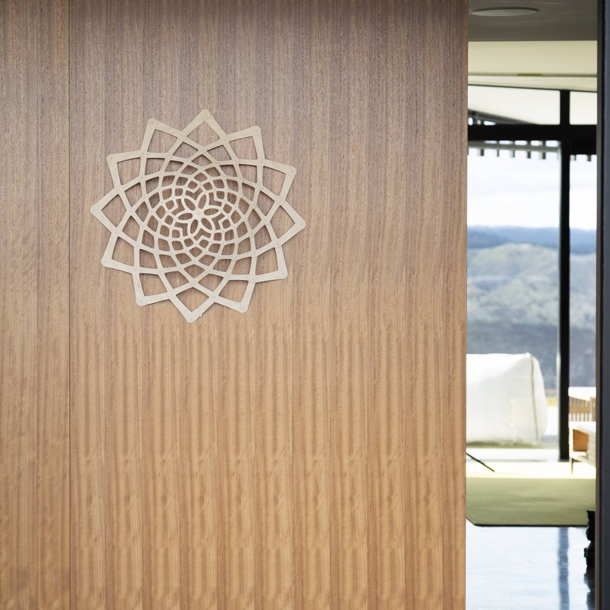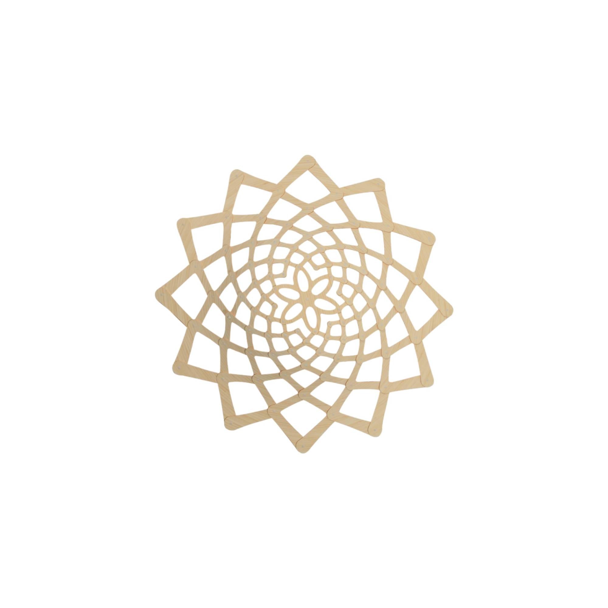 Veteran New Zealand-based designer David Trubridge bases his geometric Sunflower on patterns observed in nature over time. Rendered in responsibly sourced bamboo plywood, the shade can be mounted over an existing sconce to freshen up any interior or become the basis for a sculptural lighting installation on the wall or even the ceiling. Shipped as an easily assembled kitset with about 1/30th of the volume of the assembled light, it also minimizes the freighting's environmental footprint. Shade only. Light not included.