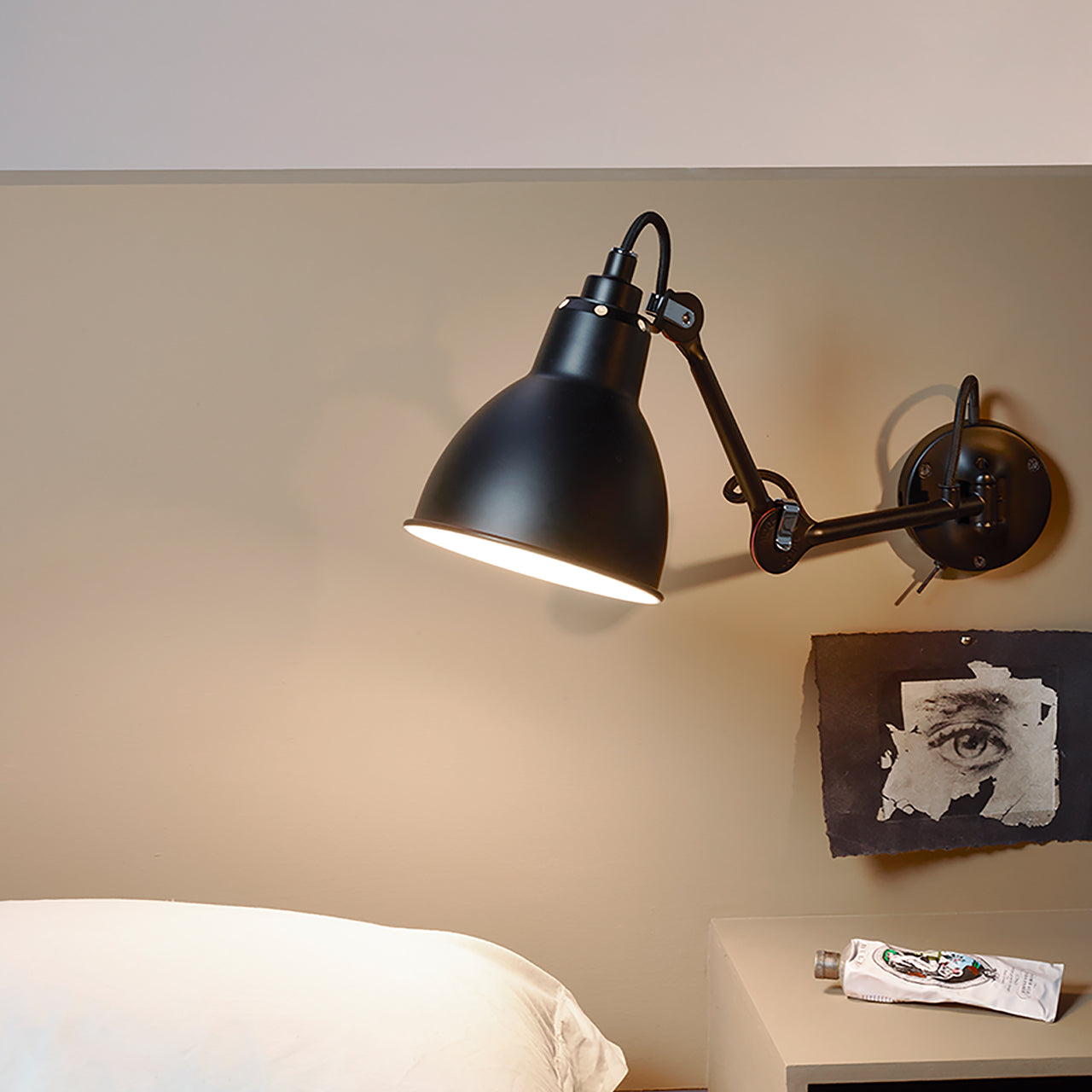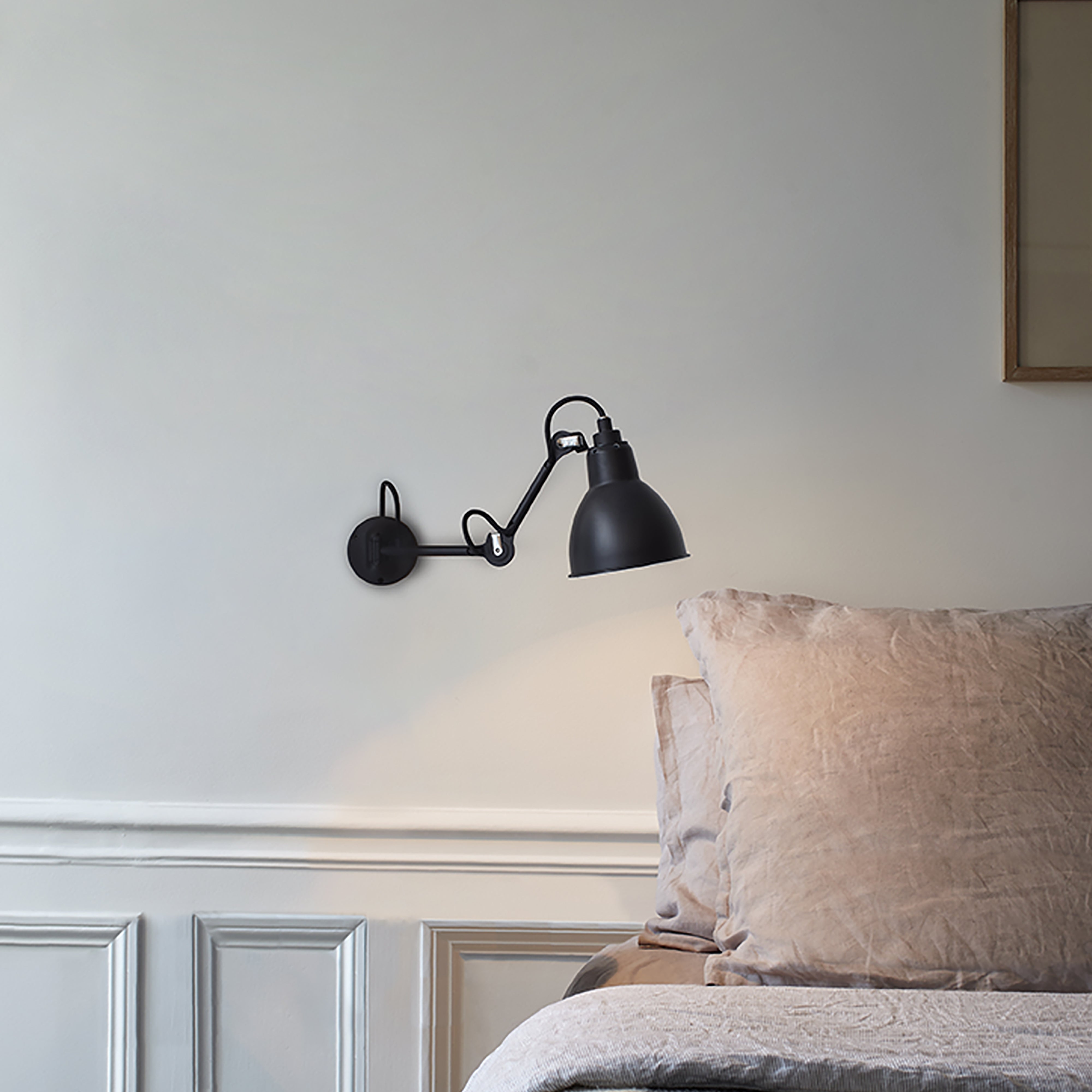 Lampe Gras N° 204 Wall Lamp: Small - 6.7" + Black + With Switch