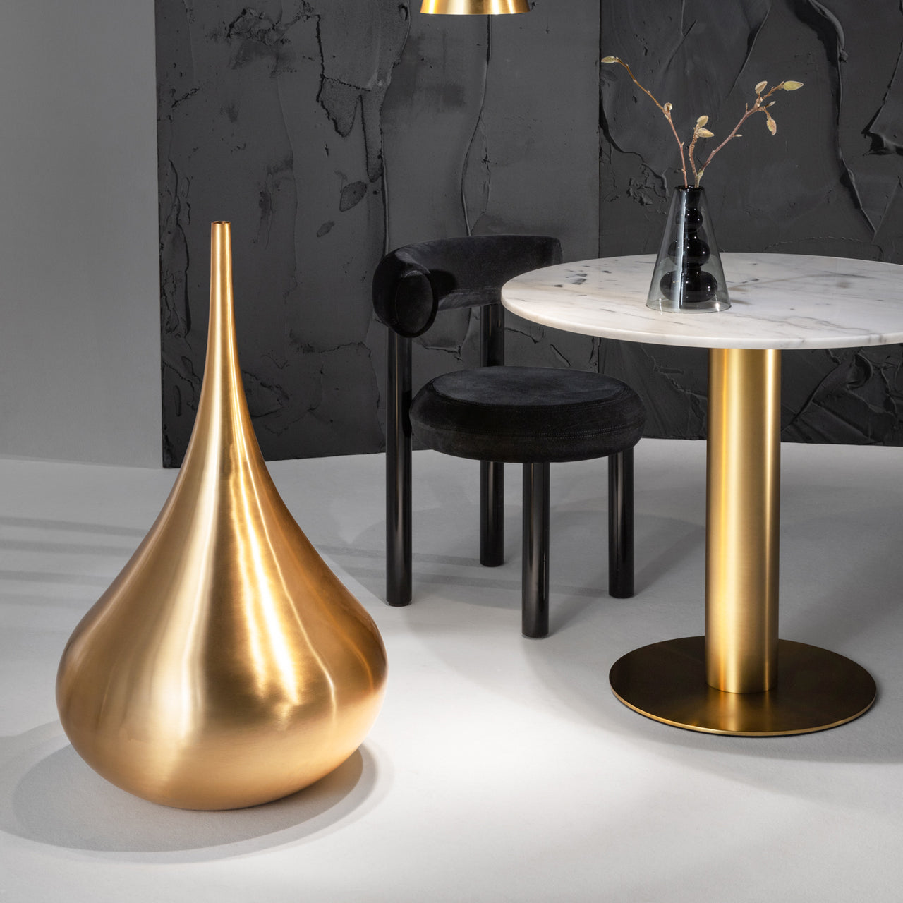 From a trio of Beat brass floor vessels, Drop is individually spun and welded in separate parts to create a final form. Like Tom Dixon’s signature lighting range of the same name, it’s a modern take on traditional design. Each piece is inspired by the sculptural simplicity of brass cooking pots and water jugs on the subcontinent.