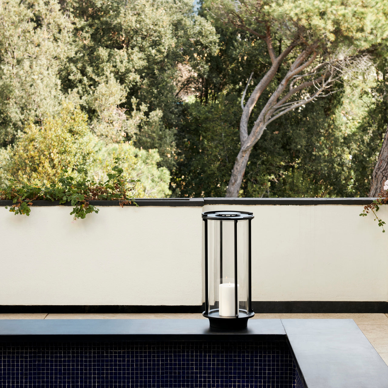 The Collect Hurricane SC83, designed by Space Copenhagen, is a minimalist lantern that blends function with atmospheric design. Part of the Collect series, this piece is crafted with a combination of metal and glass. The SC83 is available in matte black, adding subtle sophistication to both indoor and outdoor spaces. This lantern is designed to house a candle, softly illuminating its surroundings.