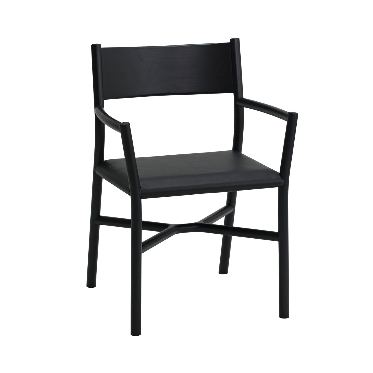 The Ariake Armchair, part of the Ariake chair family and designed by Gabriel Tan, features a gently curved backrest, slender legs, and a crossed support structure. Its thoughtful design balances handwork with precise machining for a refined finish. It is available in oak, smoked oak, sumi ash (black), white oak, and indigo ash.