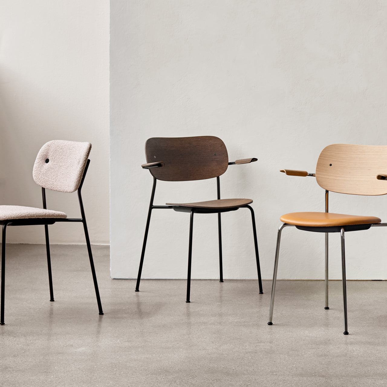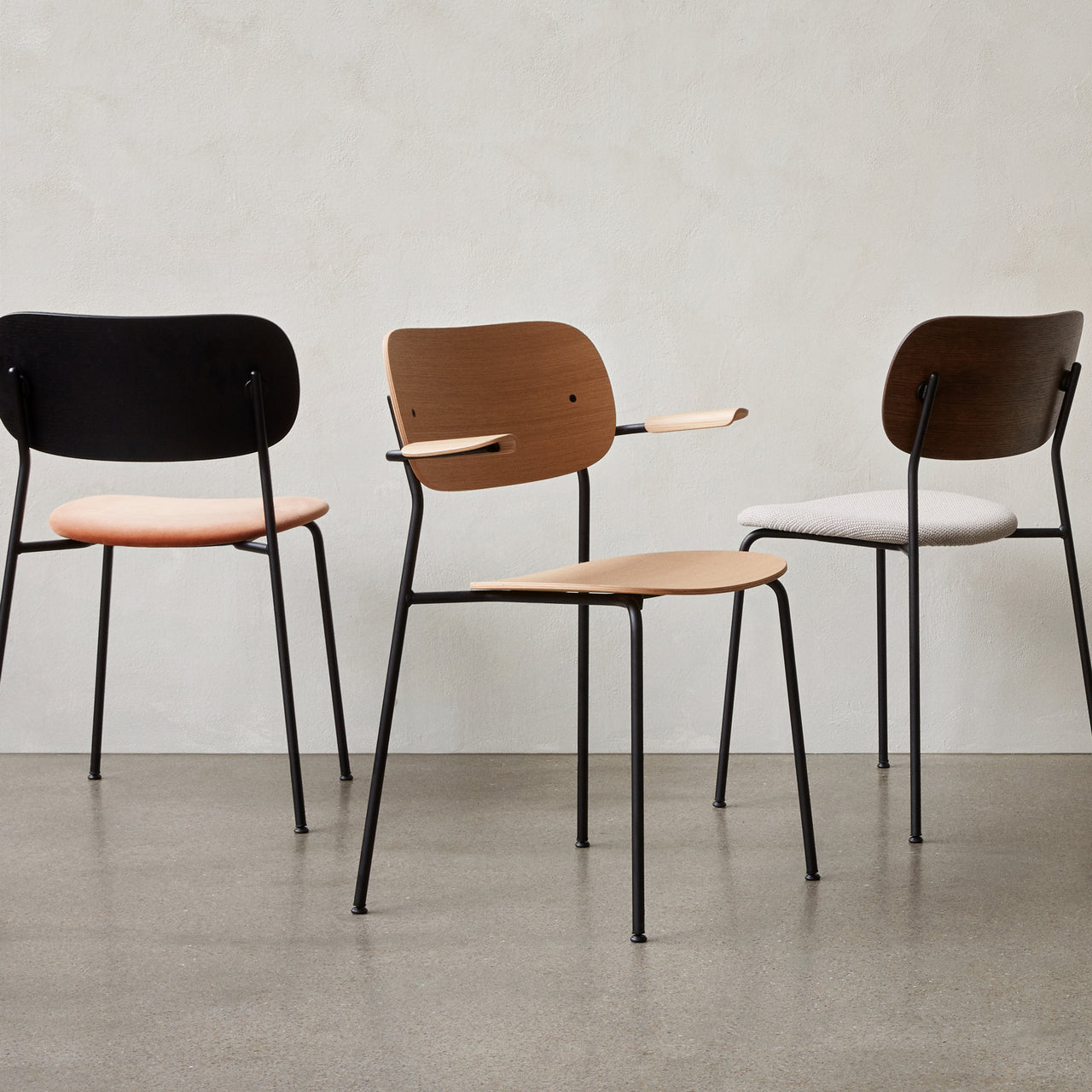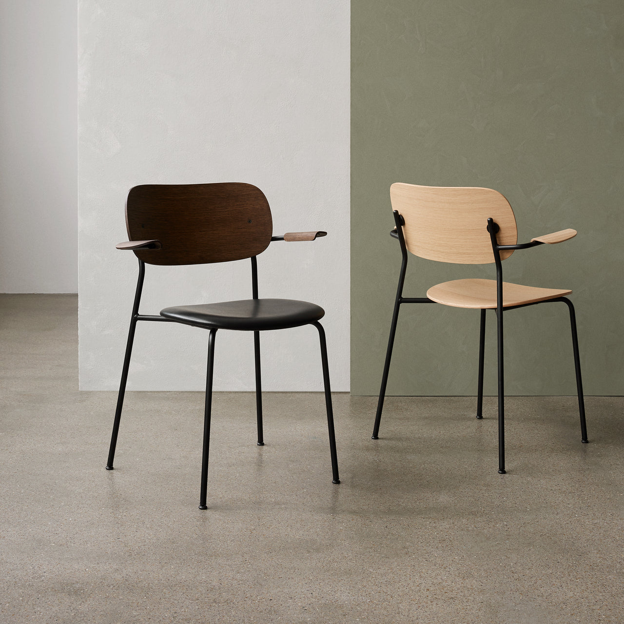 The addition of armrests upgrades the Co comfort factor in the oak veneer seating that sprang from a collaboration between London's shared-workplace pioneers The Office Group and Norm Architects. Lightweight but demonstrably sturdy, the chair's wide wood back allows for freedom of movement and it is comfortably angled for lumbar support.