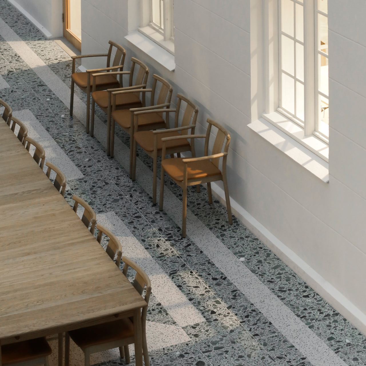 First designed by designers Skogstad & Wærnes for the historic Oslo Stock Exchange and named after the Roman god of trade, Merkur is an updated take on the archetypal dining chair. In versions both with and without armrests, this upholstered, solid-oak seating marries traditional craftsmanship and a timeless form.