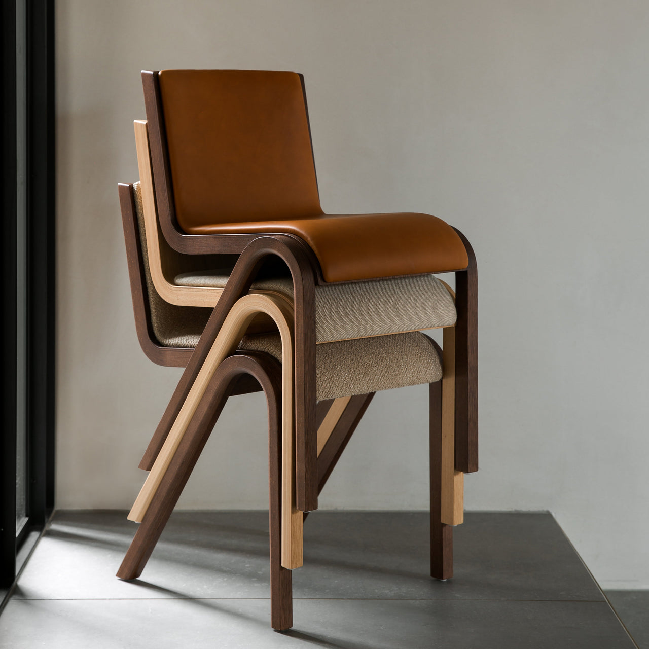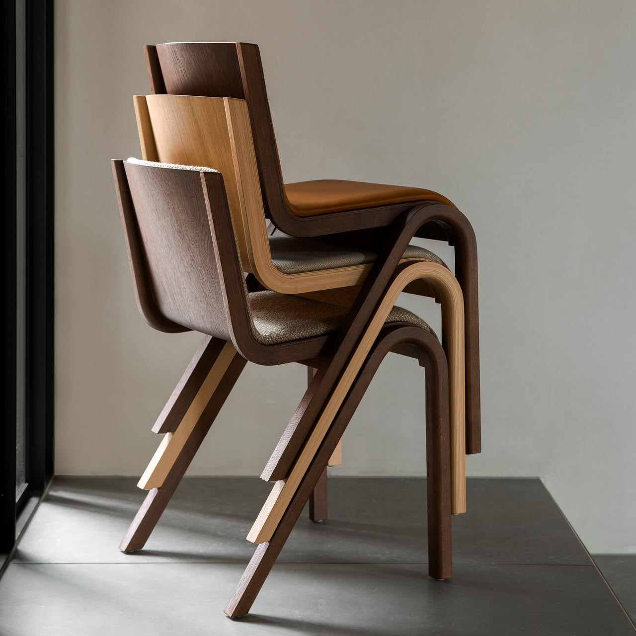 Front-facing upholstery adds a custom dimension to Audo's curvy cantilevered chair that seems like it's suspended on air. Playing with the possibilities of form-pressing technique, Ready is crafted in FSC-certified oak veneer as conceived by Copenhagen designers Matias Møllenbach and Nick Rasmussen who teamed up on the versatile live-work seating that is also handily stackable for storage.