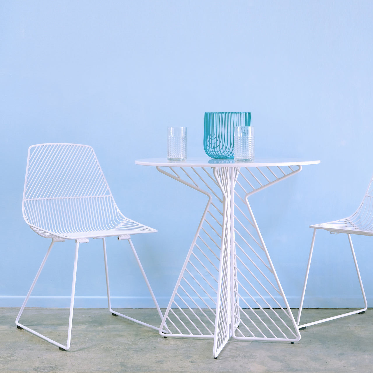 Around the Bend is a bright and happy place to be when speaking of the cool iron wire furniture from Los Angeles' own Bend Goods. In true Southern Cali style, these corrosion-resistant pieces with their pop of powder-coat color can easily meander from indoors to outside. Sculptor, designer and entrepreneur Gaurav Nanda perfected the signature process he calls "bending"—shaping and spot welding the wire by hand—to achieve intricate patterns in Bend's furniture, lighting and accessories.