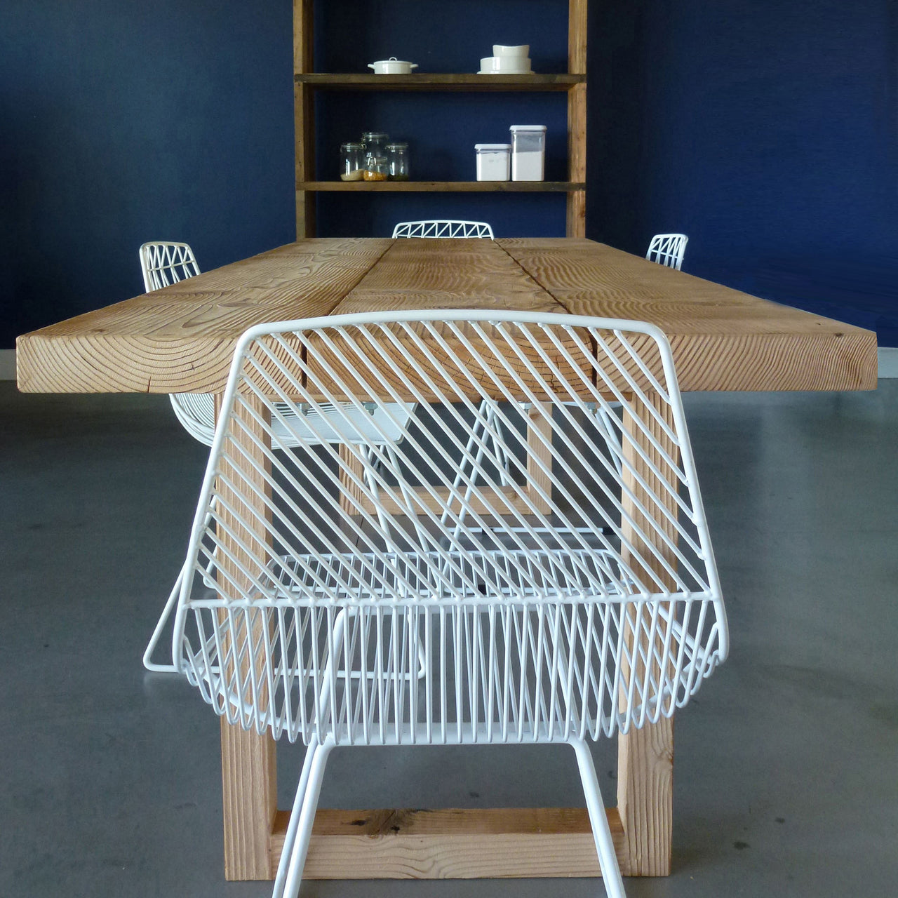 Michigan native Gaurav, formerly a designer for General Motors, values performance just as much as polish. The structural strength of each piece of furniture is contract grade, while the ergonomics and the spacing of the wires assure comfort and utility. Environmental impact is also a concern, and he envisions each piece as something built to last a lifetime, fabricated from the plentiful resource iron and sustainable woods. Though Gaurav's work draws on the legacy of modernist objects in wire, he wants "to offer something different, something edgier."