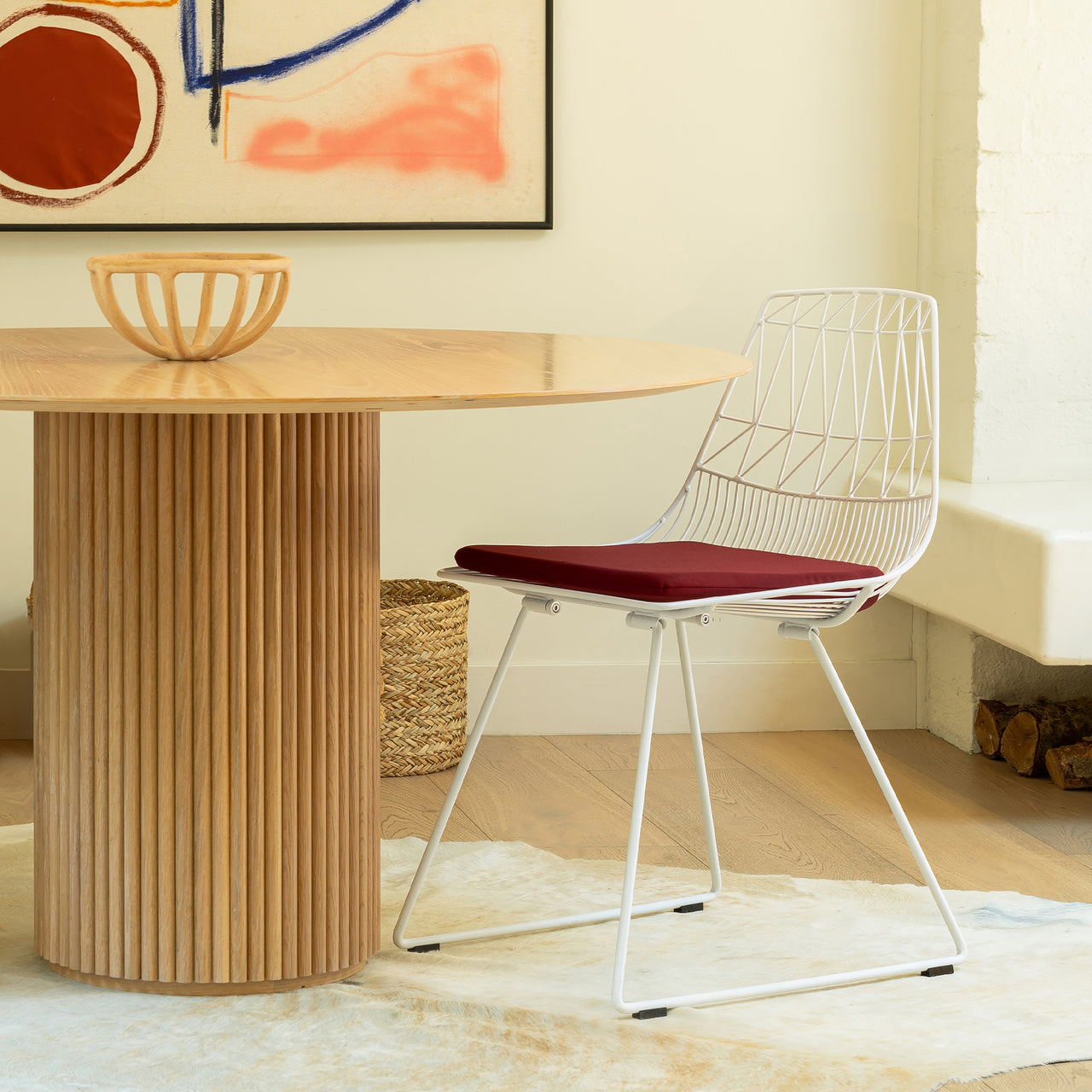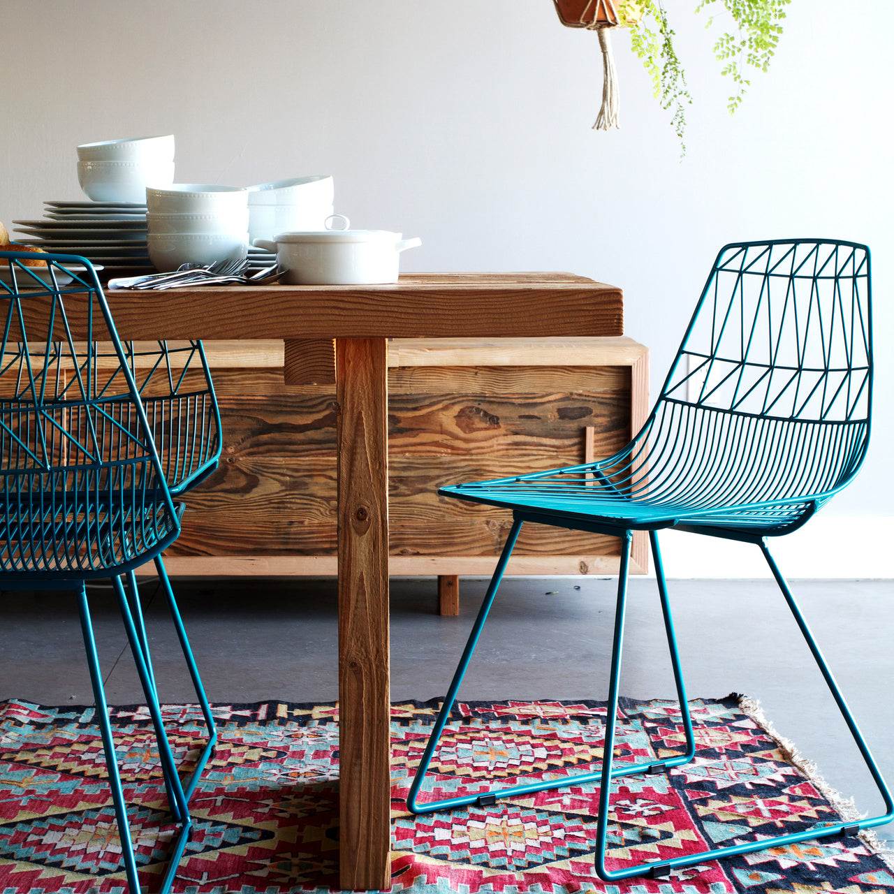 Do you love Lucy? If you're more of an Ethel, designer Gaurav Nanda has a version for you, too (as do we here on this site!). These dining chairs are part of the Bend collection by the Los Angeles-based Gaurav, who's managed to make wire chairs that are actually comfortable to sit in for a long while. Each piece is machine-molded and undergoes upwards of 400 handmade spot-welds—a process Gaurav refers to as "bending." Each bend is carefully arranged to ensure structural strength. The angles of the back, the curves of the seat and the closeness of the wires are placed a quarter inch apart for comfort and utility. Gaurav grew up in the Detroit suburbs and even spent part of his design career at General Motors. For this collection, he draws pattern inspiration from his childhood: the intricate macramé his mother made; string art Spirograph drawing sets. (He was also a part of the design and conception of Clocky with his sister Gauri.) What's more, the collection is made of an iron that can be repeatedly recycled, and all pieces are sandblasted, then pre-treated with anti-rust zinc primer and powder coated for extended life right in Gaurav's L.A. studio.