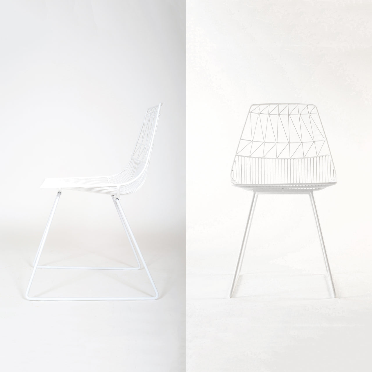 Of his brand Los-Angeles-based company Bend, founder Gaurav Nanda says he wanted "to offer something different, something edgier, a lot more intricate and comfortable" in the realm of wire furniture than the usually-admired but heritage Bertoia designs for Knoll. For inspiration Gaurav looked to an unlikely combination of sources: his own stint as an automobile sculptor/designer for General Motors on the one hand and an appreciation of 1970s-influenced crafts, including string art and the knotted patterns of macramé plant holders made by his mother, on the other.