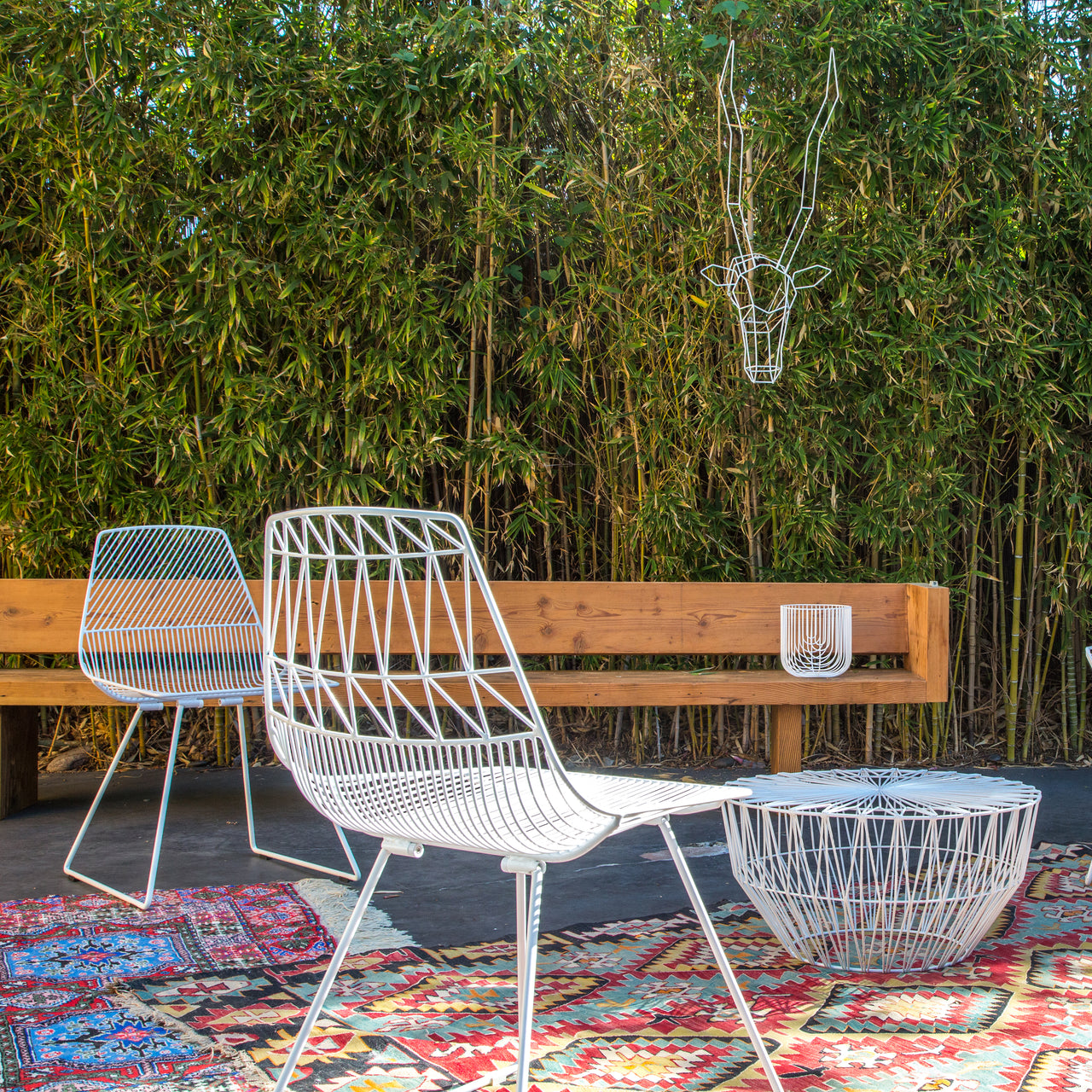 Around the Bend is a bright and happy place to be when speaking of the cool iron wire furniture from Los Angeles' own Bend Goods. In true Southern Cali style, these corrosion-resistant pieces with their pop of powder-coat color can easily meander from indoors to outside. Sculptor, designer and entrepreneur Gaurav Nanda perfected the signature process he calls "bending"—shaping and spot welding the wire by hand—to achieve intricate patterns in Bend's furniture, lighting and accessories.