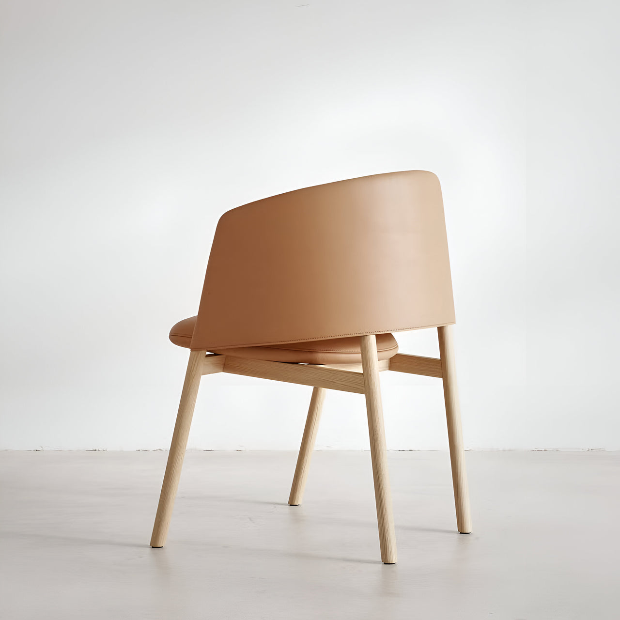The Collar Dining Chair provides a comfortable seating experience with a distinctive backrest inspired by a shirt collar. It features a flexible polyurethane body supported by a sturdy metal frame. The base is available in 2 oak finishes, offering options to match various settings.