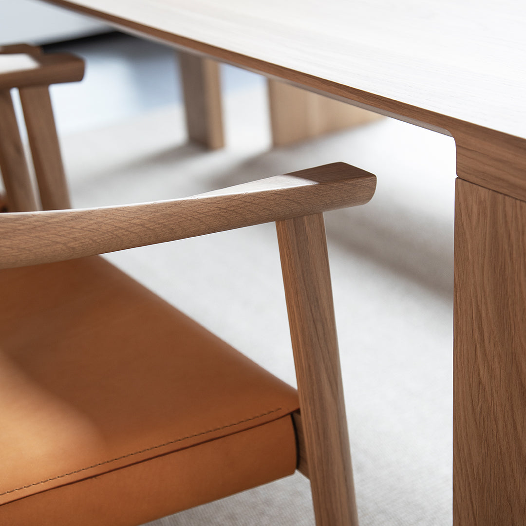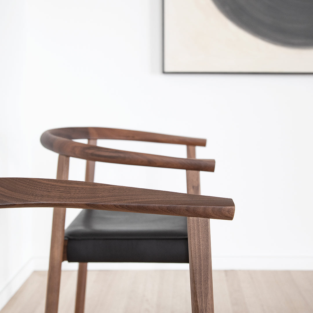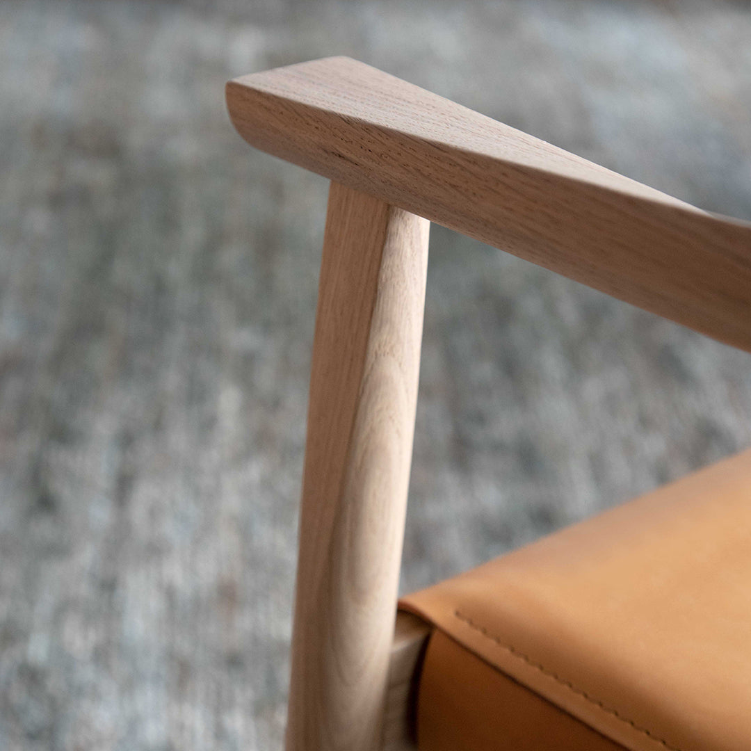 Nodding to both traditional Danish and Japanese influences, this armchair exhibits a continuous back curve that connects to the legs with traditional mortise and tenon joins. In solid oak or walnut with a removable saddle-leather seat, Tokyo’s wood finishes are an advanced water-based polyurethane that reveals the natural grain while being both durable and invitingly smooth to touch.