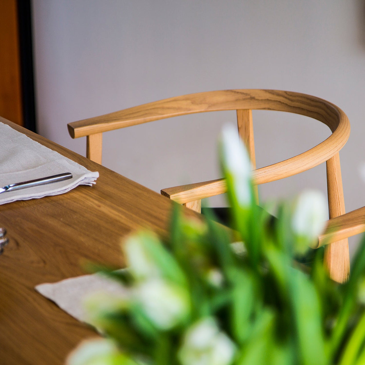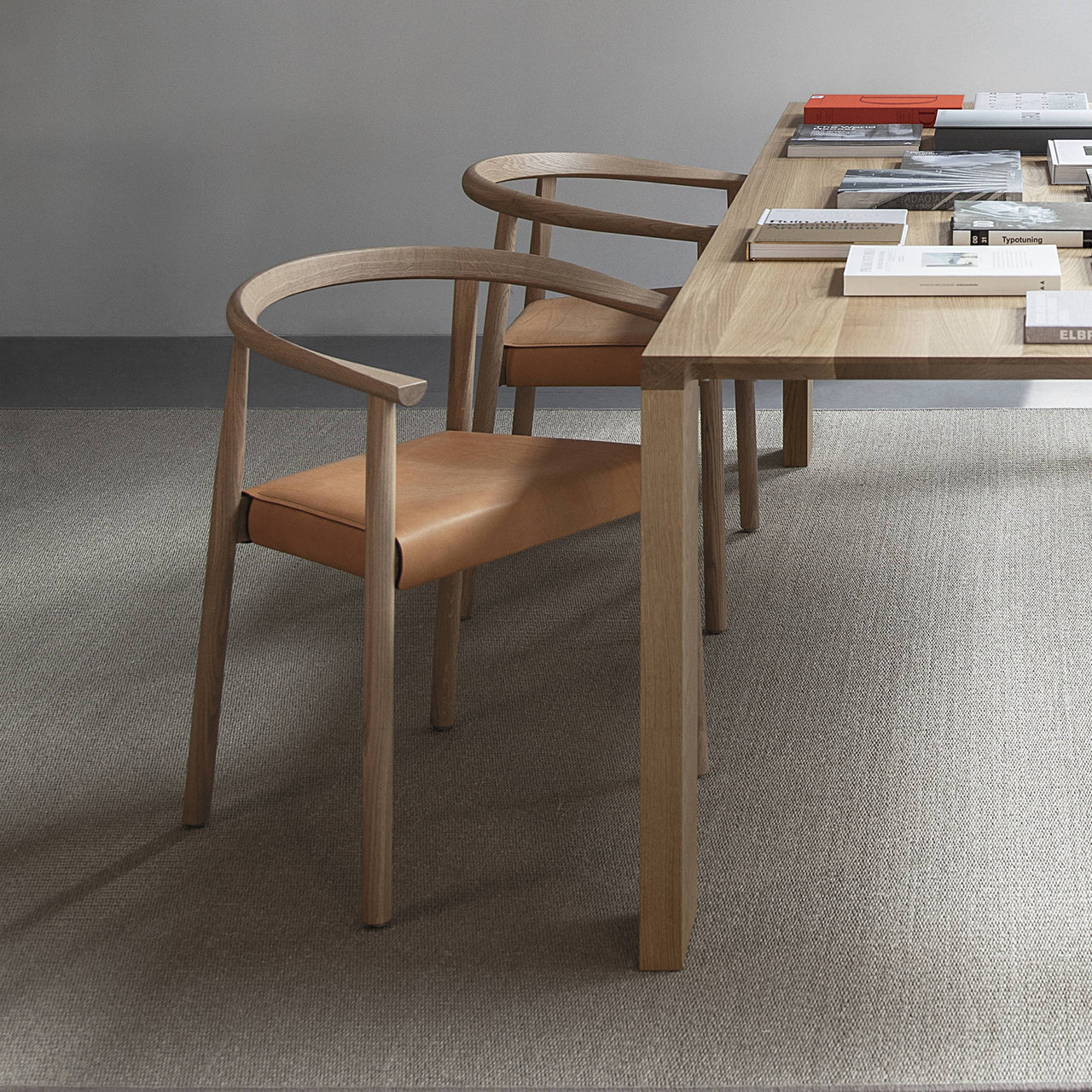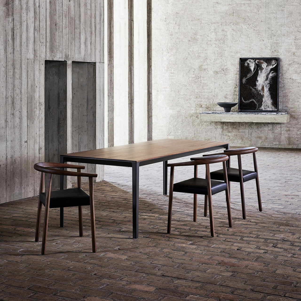Nodding to both traditional Danish and Japanese influences, this armchair exhibits a continuous back curve that connects to the legs with traditional mortise and tenon joins. In solid oak or walnut with a removable saddle-leather seat, Tokyo’s wood finishes are an advanced water-based polyurethane that reveals the natural grain while being both durable and invitingly smooth to touch.