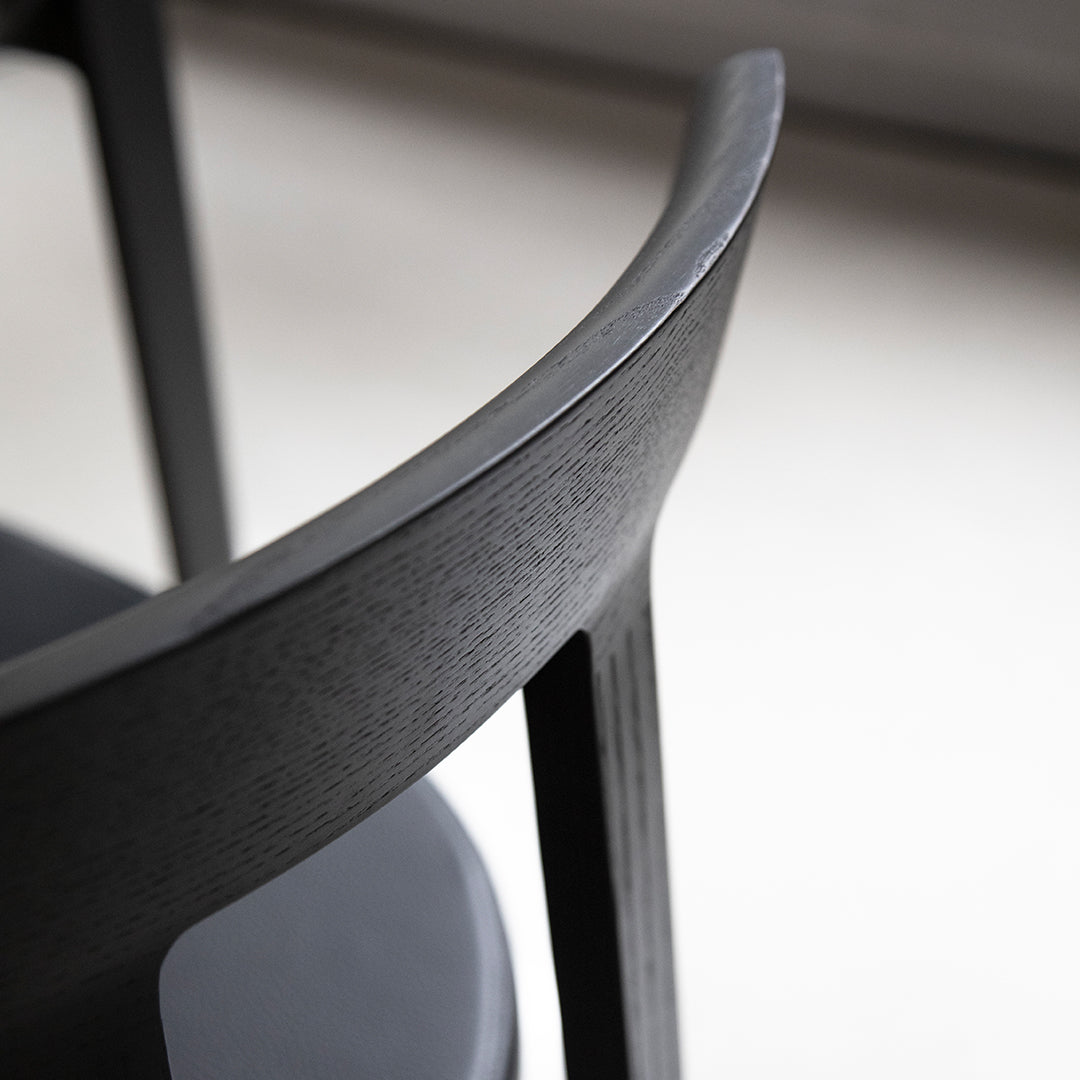 Deftly sophisticated, Torii features a small arched backrest that alludes to the entrances of the same name at Shinto shrines in Japan. Also characterized by its closely spaced back legs and broad seat, the chair's harmonious lines are achieved through careful craftsmanship using traditional joinery. With its inherent comfort and sturdiness, it's an inspired choice for both residential and commercial placement.