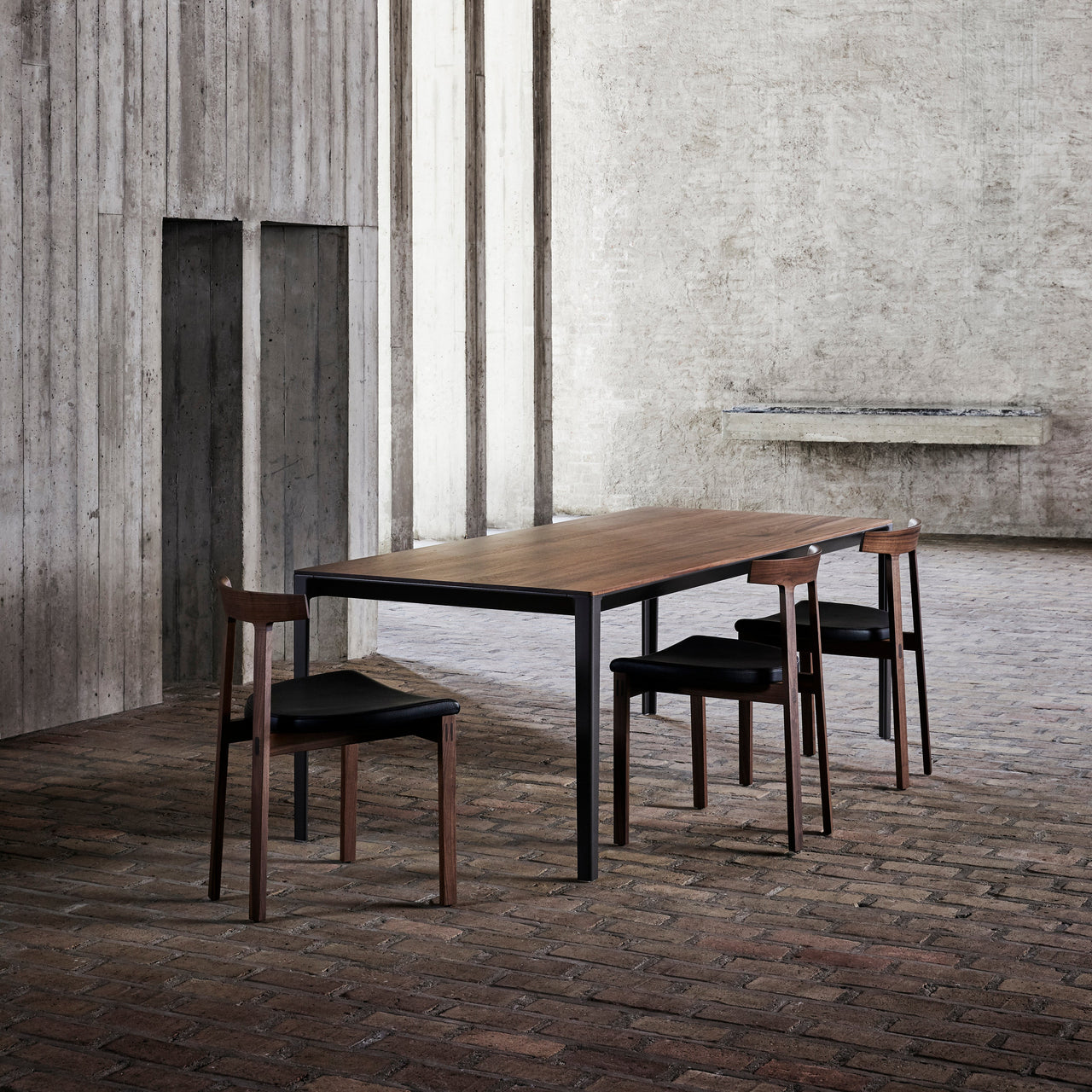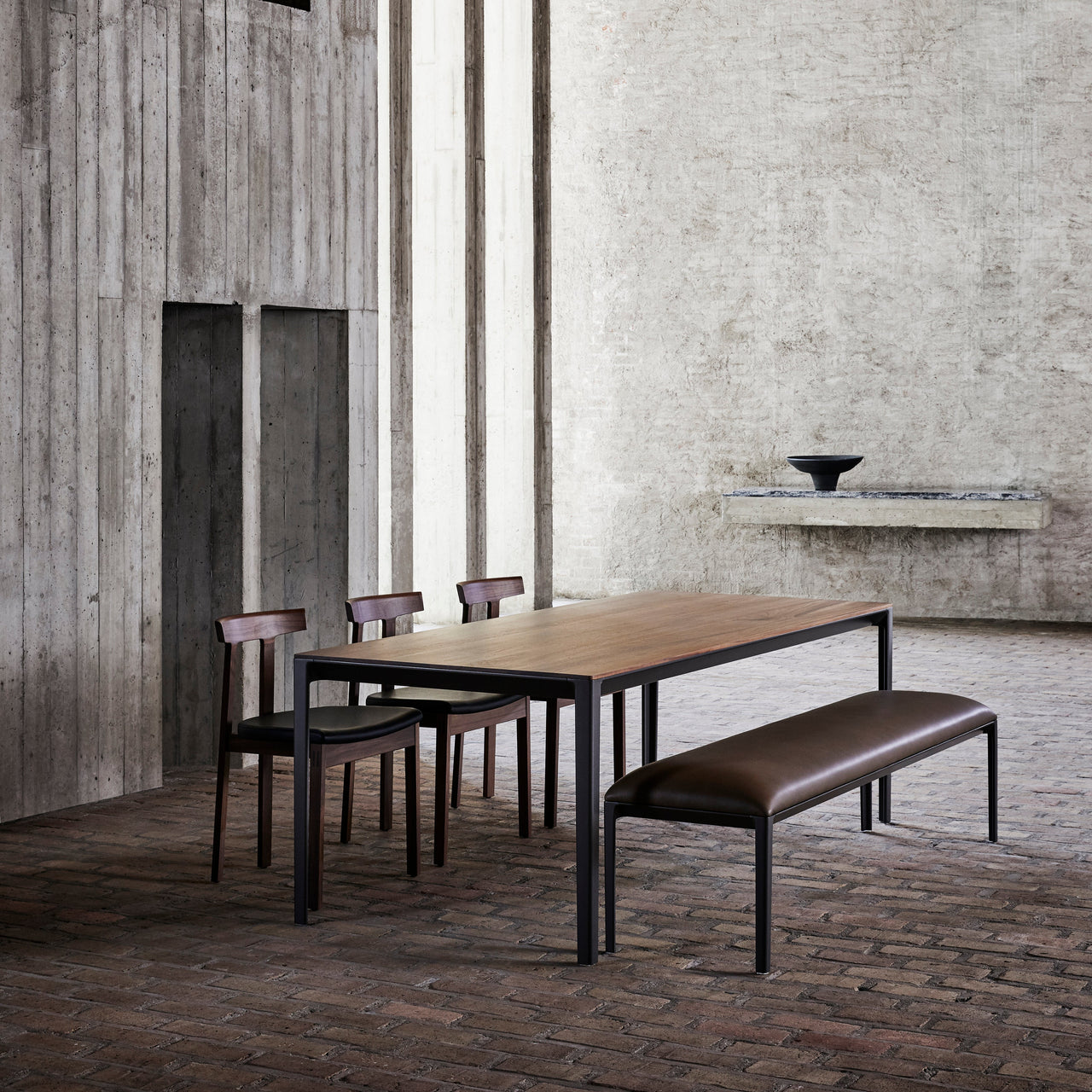 With a choice of leather or fabric seat, the upholstered Torii variant adds additional refinement to its harmonious presence. Recognized by its closely spaced back legs, broad seat and small arched backrest that references Japanese temple entrances, the minimal silhouette is rooted in carefully crafted traditional wood joinery. Both remarkably sturdy and soothingly comfortable, Torii is suitable for both residential and commercial environs.