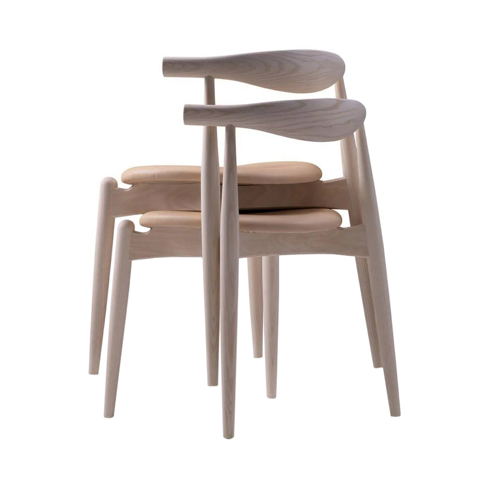 Regarded as a modern classic, Hans J. Wegner’s 1956 stackable chair gets a new interpretation in a range of beech finishes with a seat clad in leather or a textile. Only introduced by Carl Hansen & Son in 2005, its signature steam-bent backrest is crafted from a single piece of solid wood to lend lower back and elbow support and afford varied sitting positions.