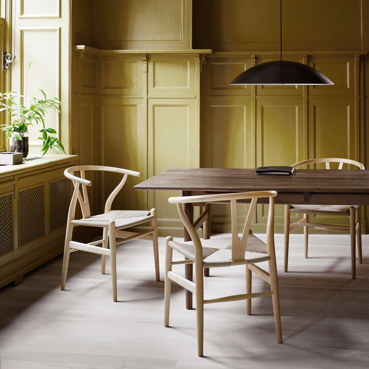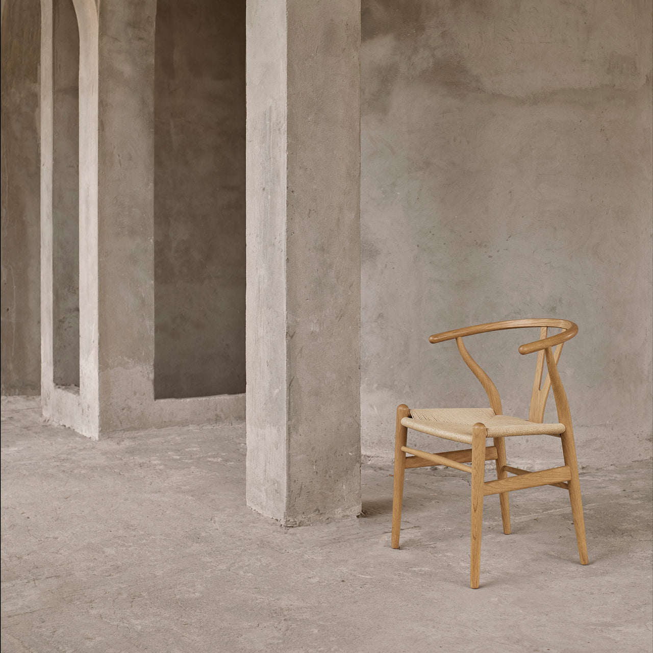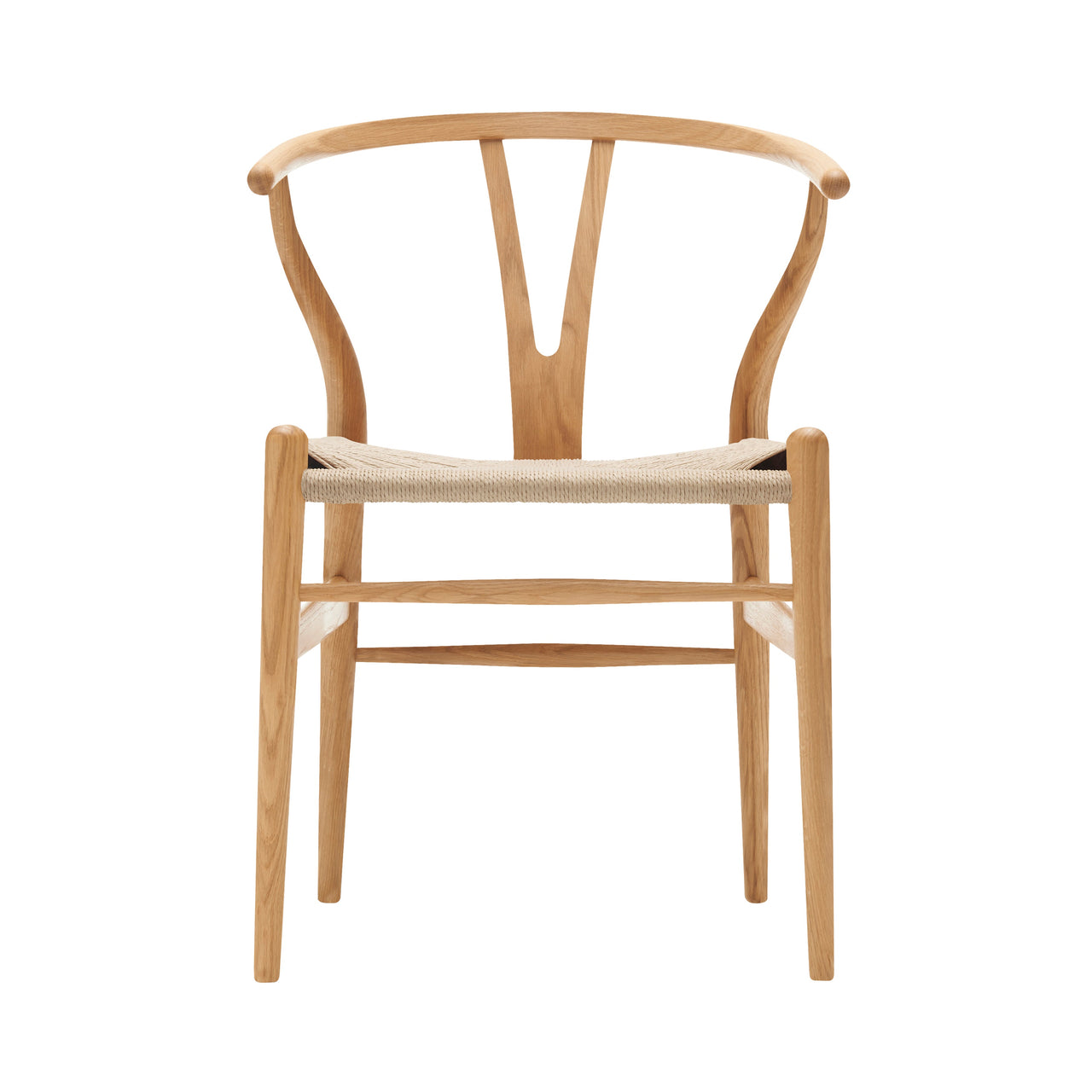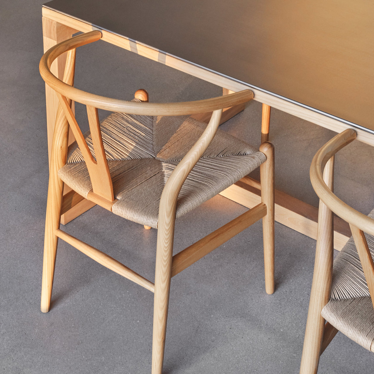 The essence of Danish Modern, Wishbone Chair was Hans J. Wegner's very first design for Carl Hansen & Søn, in continuous production since it debuted in 1950. With its iconic steam-bent profile, Wegner developed the characteristic Y-shaped back that assures its fabled comfort and elegant form. More than 100 steps are needed in making each chair — the hand-woven seat alone takes a skilled craftsman about an hour with 120 meters of paper cord — assuring its impressive durability and enduring style.