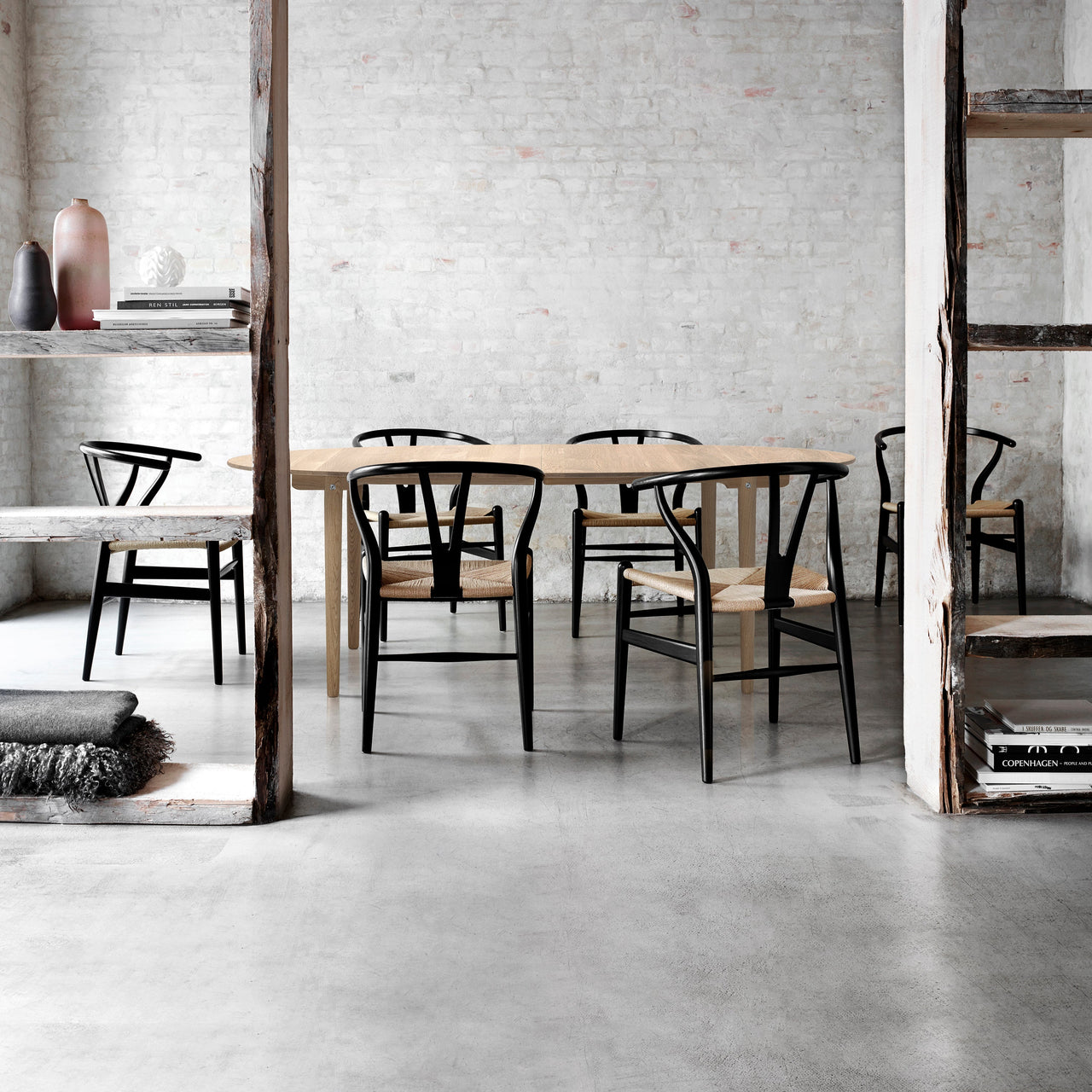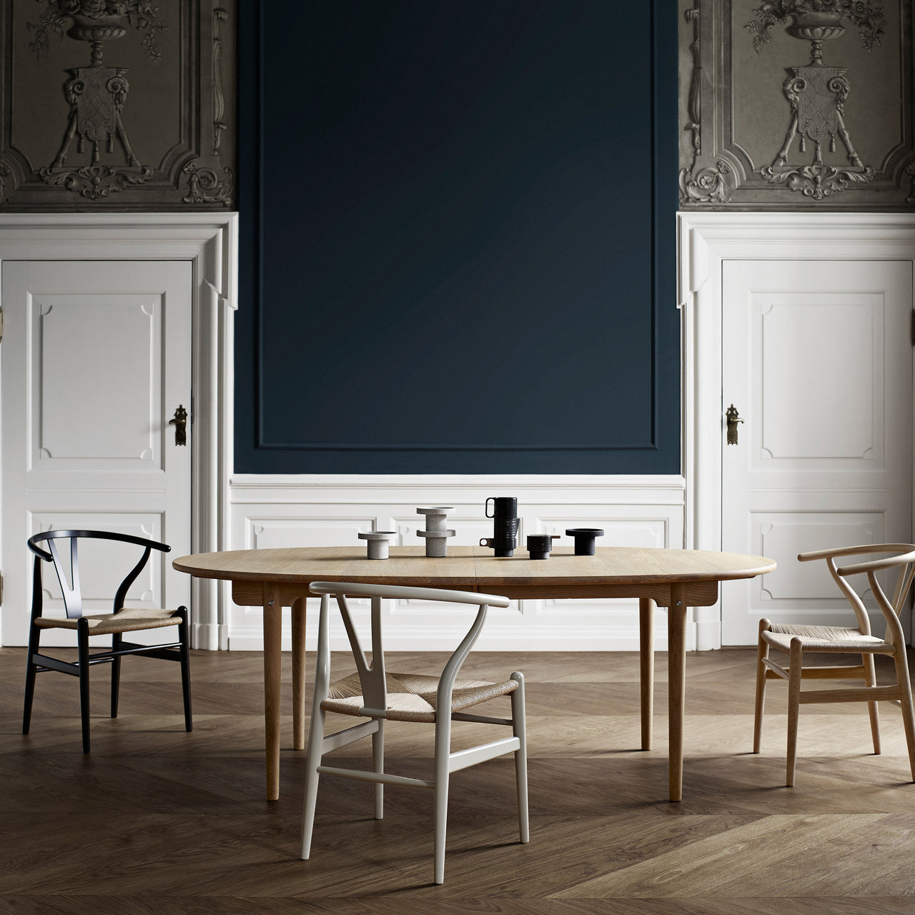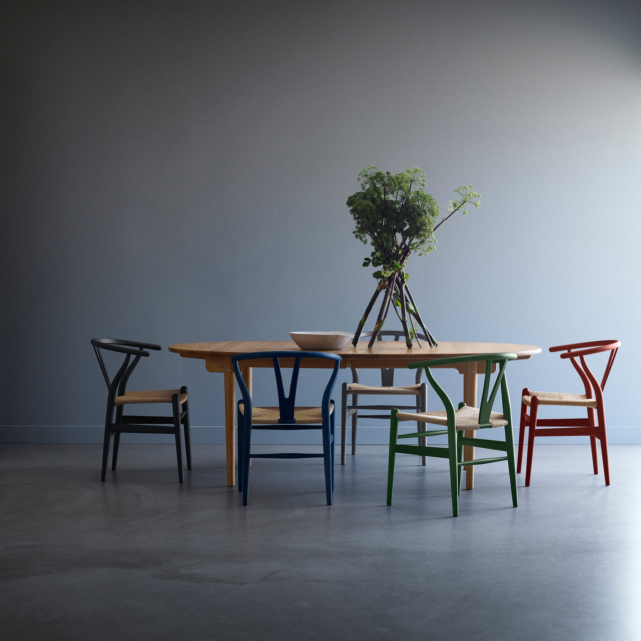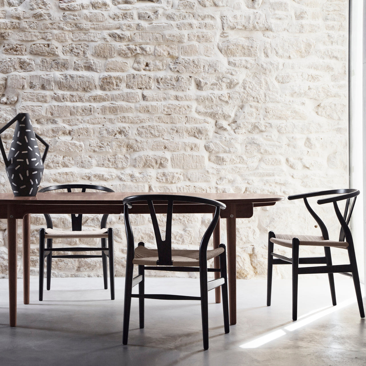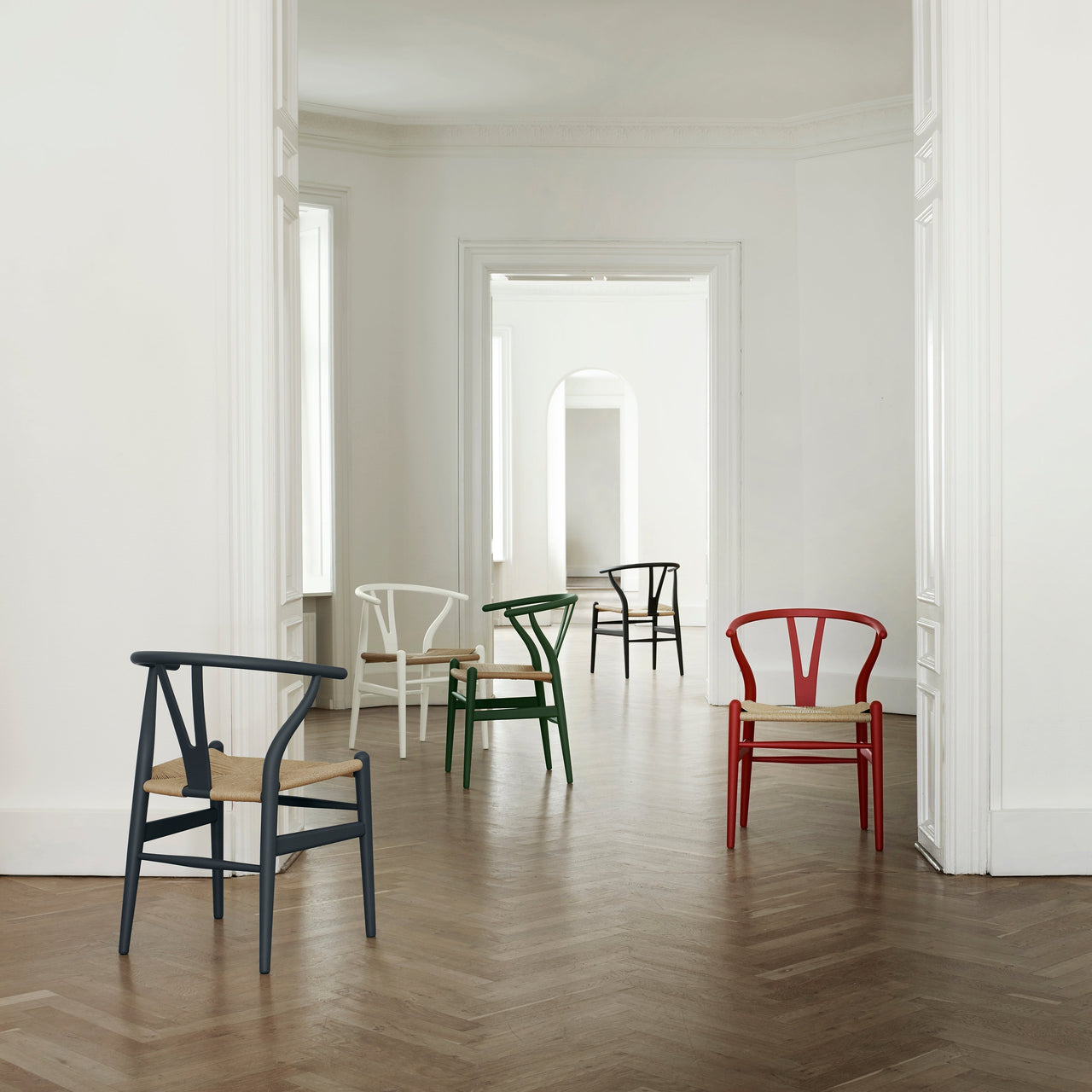 The essence of Danish Modern, Wishbone Chair was Hans J. Wegner's very first design for Carl Hansen & Søn, in continuous production since it debuted in 1950. With its iconic steam-bent profile, Wegner developed the characteristic Y-shaped back that assures its fabled comfort and elegant form. More than 100 steps are needed in making each chair — the hand-woven seat alone takes a skilled craftsman about an hour with 120 meters of paper cord — assuring its impressive durability and enduring style.
