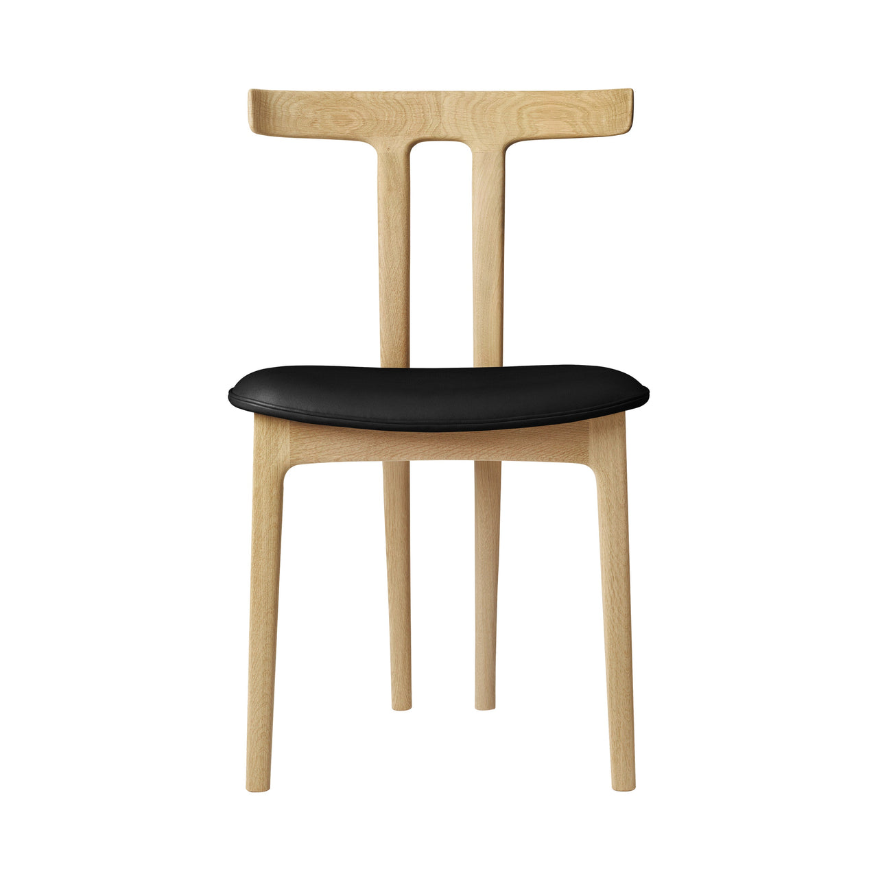Danish designer Ole Wanscher’s deep respect for materials and fine craftsmanship coalesce in his 1958 T-Chair. Carl Hansen & Søn's redo slightly adjusts the seating's height to provide optimum ergonomics for today’s design enthusiasts who have grown taller. With the characteristic T-shaped back and tightly placed rear legs giving the chair a 3-legged look, OW58 is crafted in solid oak or walnut with a wide, upholstered seat that provides excellent comfort, making it ideal for dining use.>