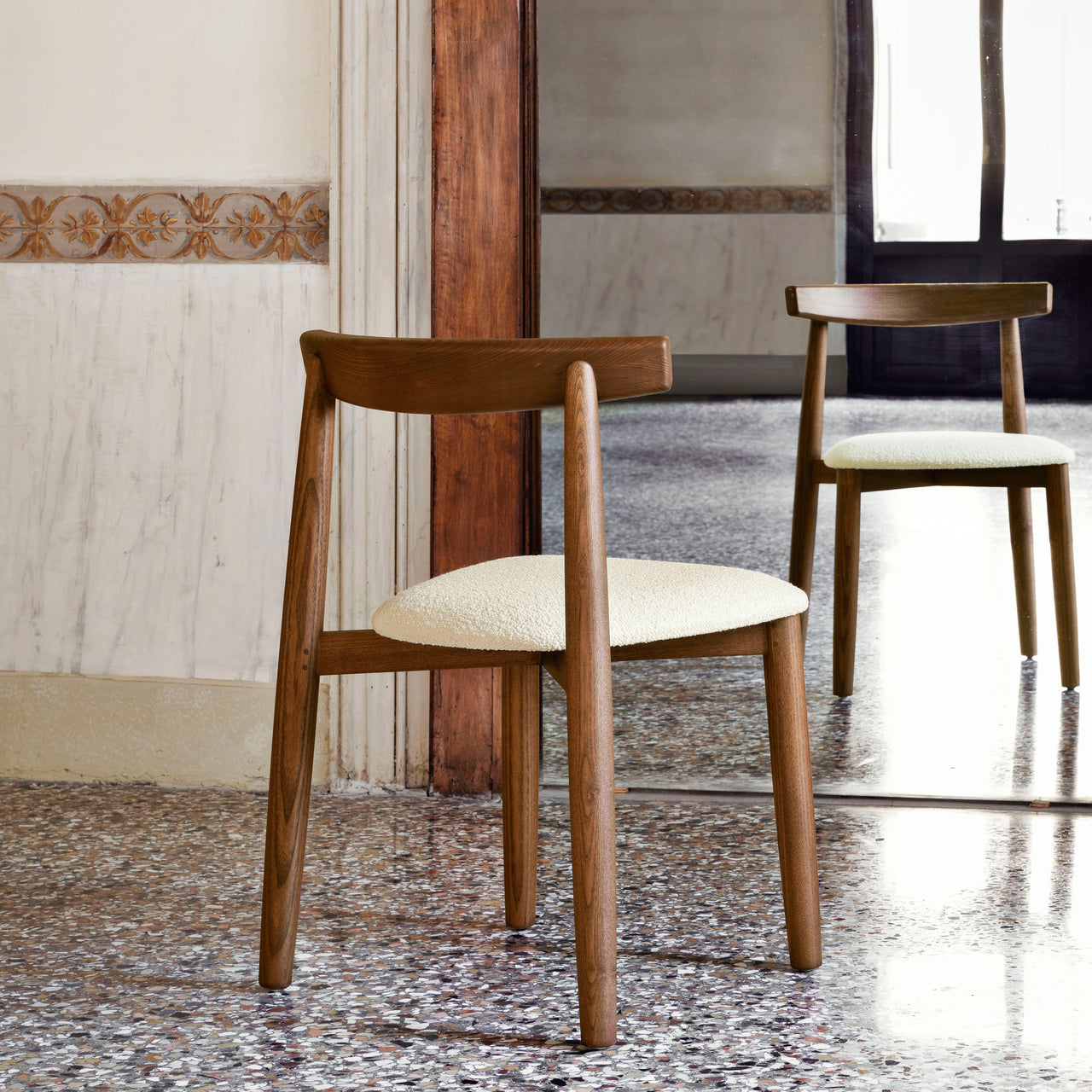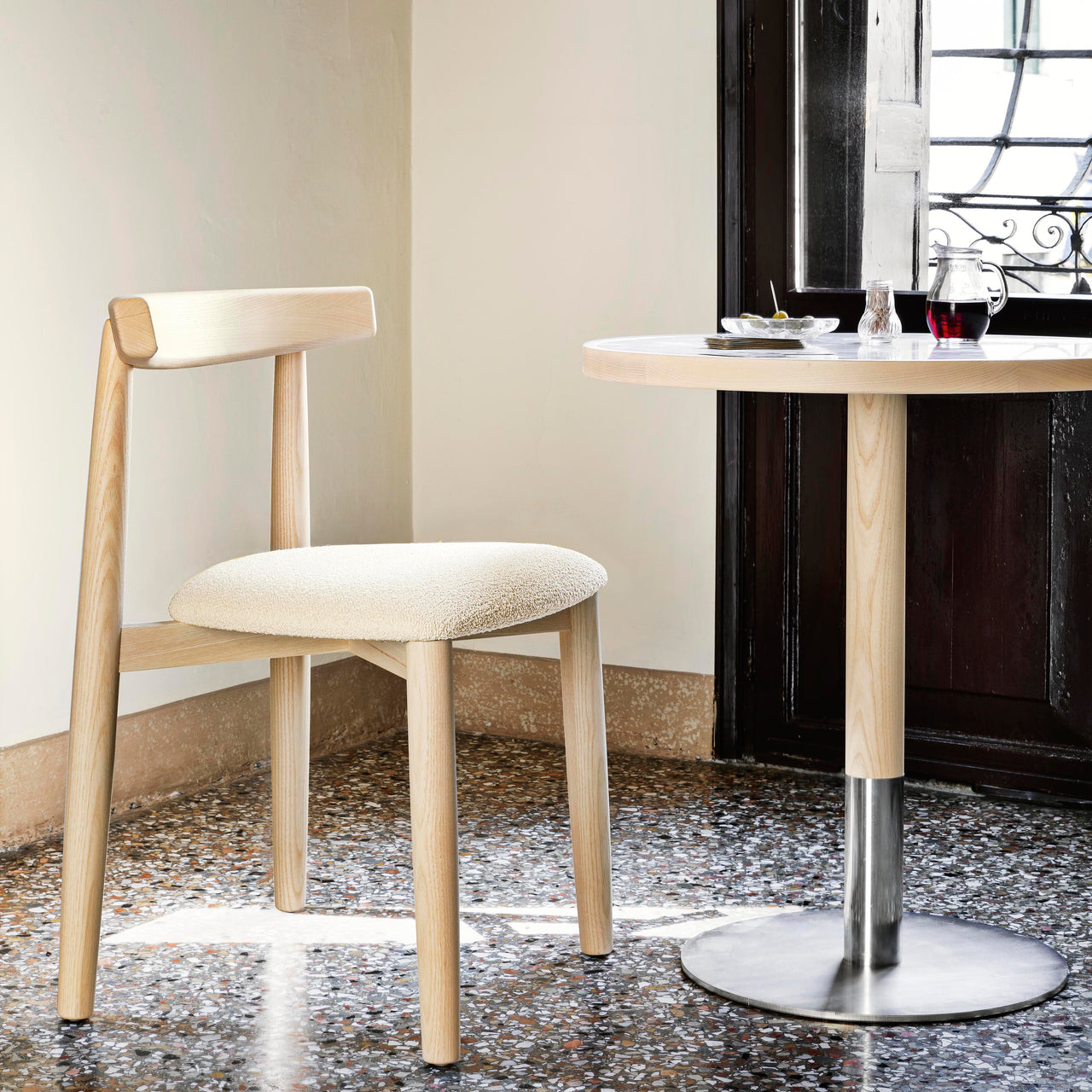 This version of Claretta is a bit of a scene-stealer with its decidedly chic, burlier proportions. Florian Schmidt€™s mod take on a bistro classic also offers an expanded range of luxe fabrics for the custom upholstered seat. Still handily stackable and faultless crafted in a range of wood finishes, the chair also boasts a comfortably roomy seat and curved backrest.