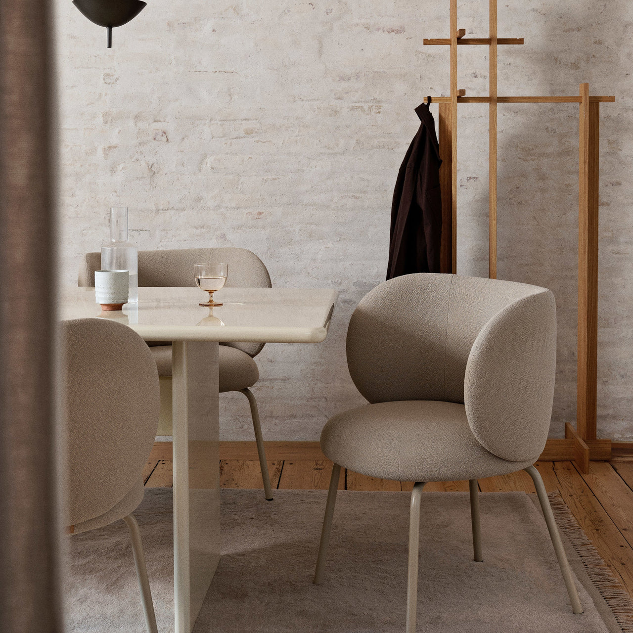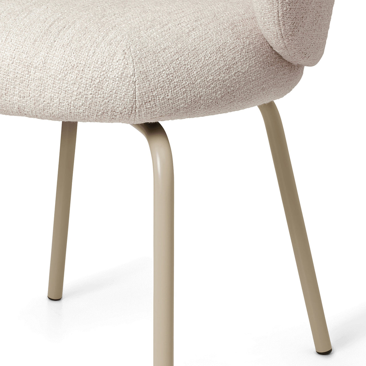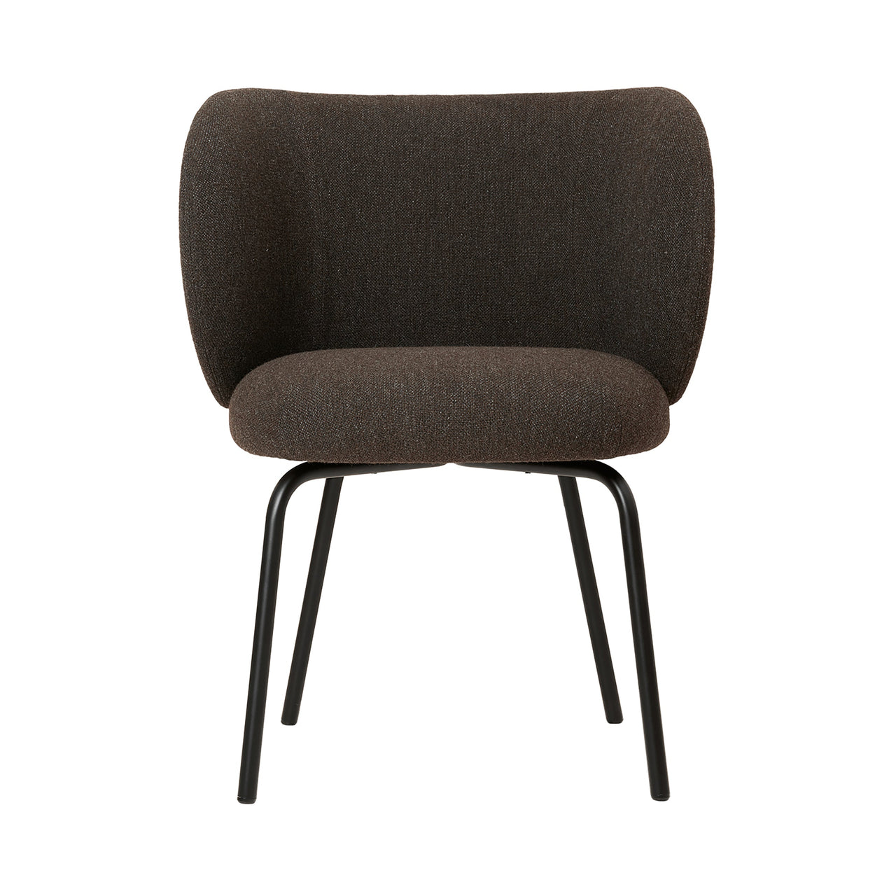 The Rico Dining Chair features a curved backrest and seat with plush upholstery, providing a comfortable and supportive seat perfect for long meals or gatherings. Upholstered in a curated range of high-performance fabrics, the chair is supported by four tubular steel legs in black or cashmere. Ideal for dining and workspaces alike.