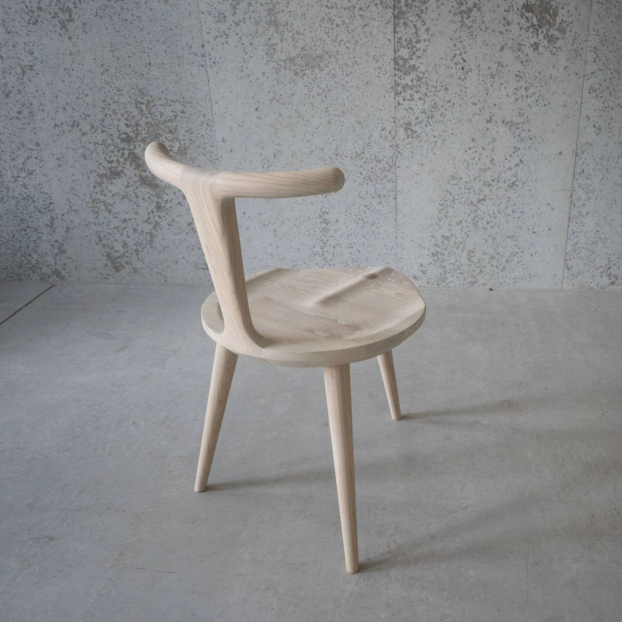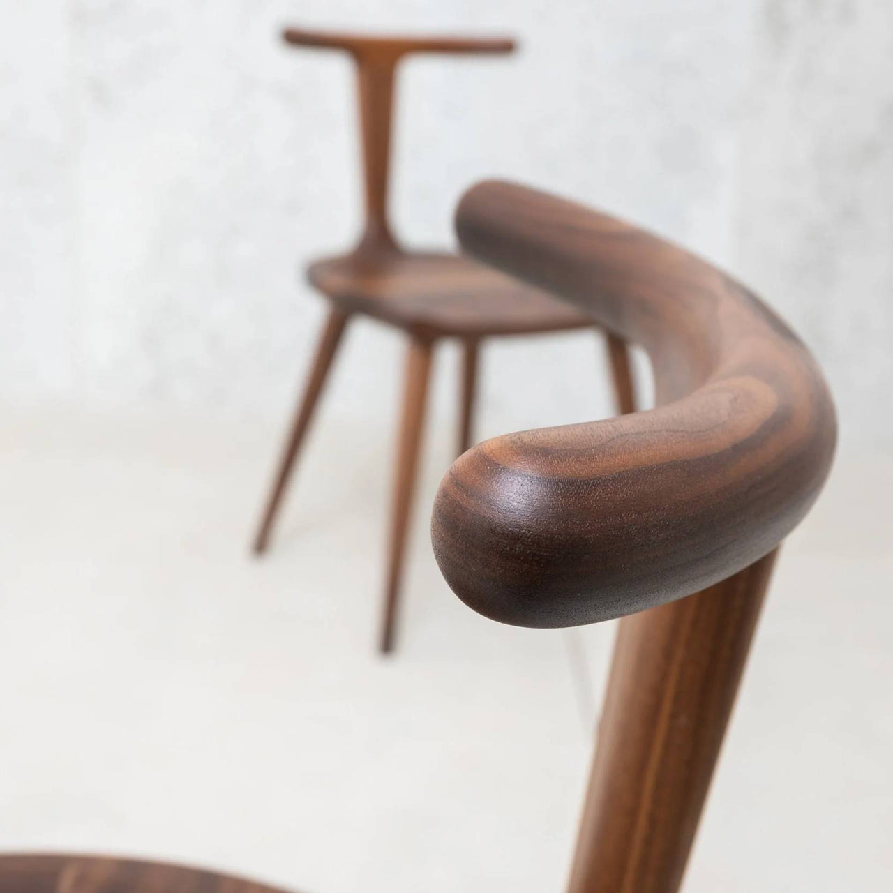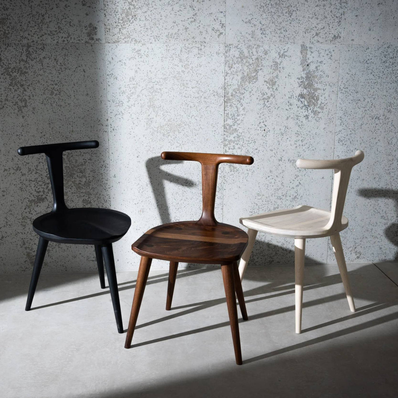 A beautifully crafted piece, featuring hand-shaped tubular curves and classic wedged-tenon leg joinery, it serves as a versatile addition to any space, whether as a dining chair, occasional chair, or bedroom valet chair. Available in Walnut, White Ash, and Charcoal Ash, the chair can also be paired with optional leather seat pads in various colors for added comfort.